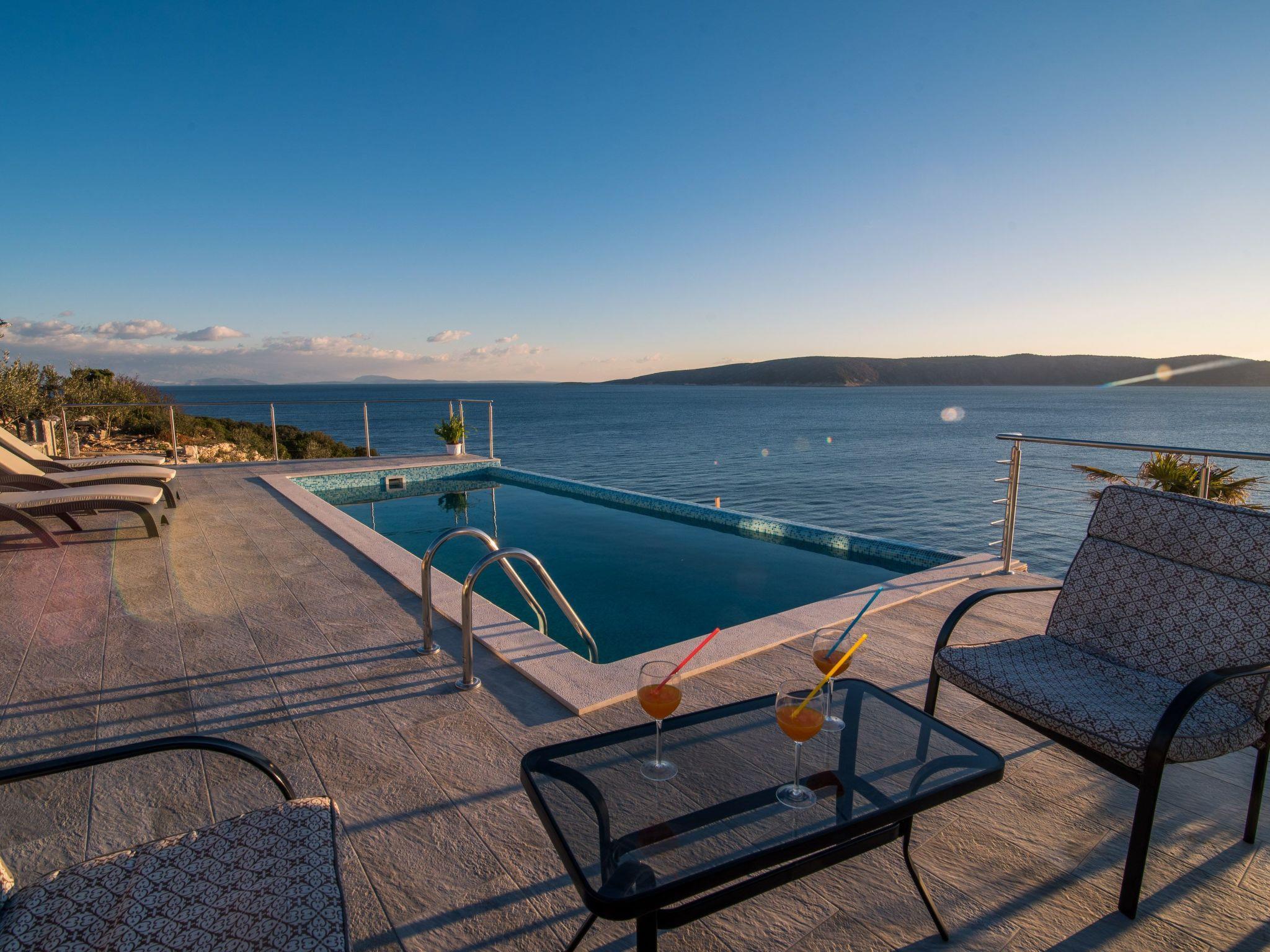 Unique villa, just 70 meters from the sea, with infinity pool and amagnificent view, in the unspoiled nature, surrounded by olive trees on a plot of 16.000 sqm. There are no neighbours and the white road (3 kilometers) is leading to the Villa.