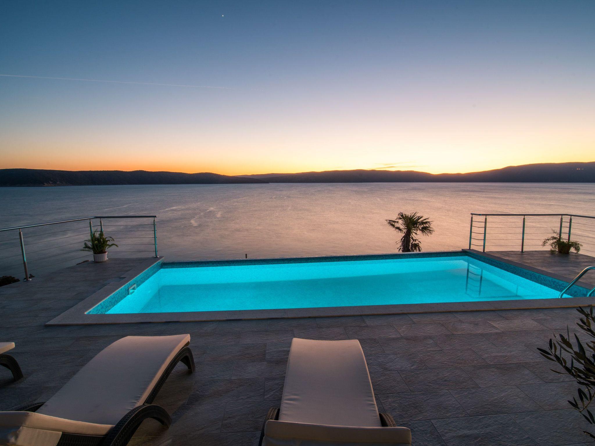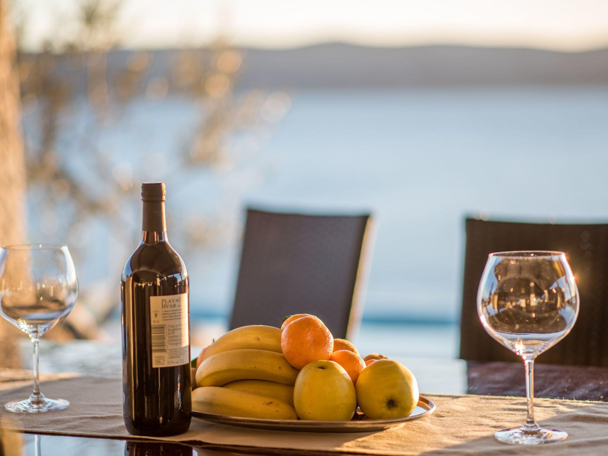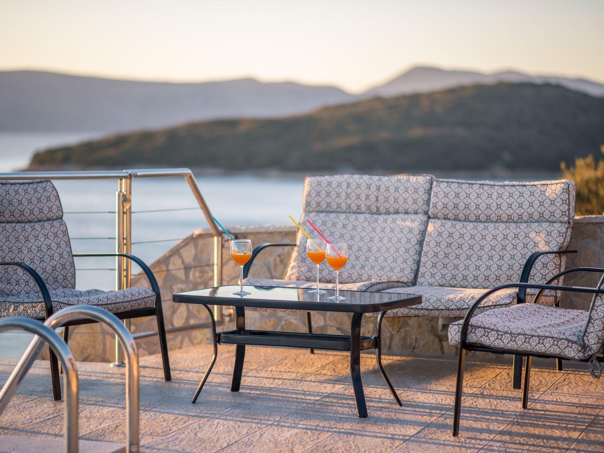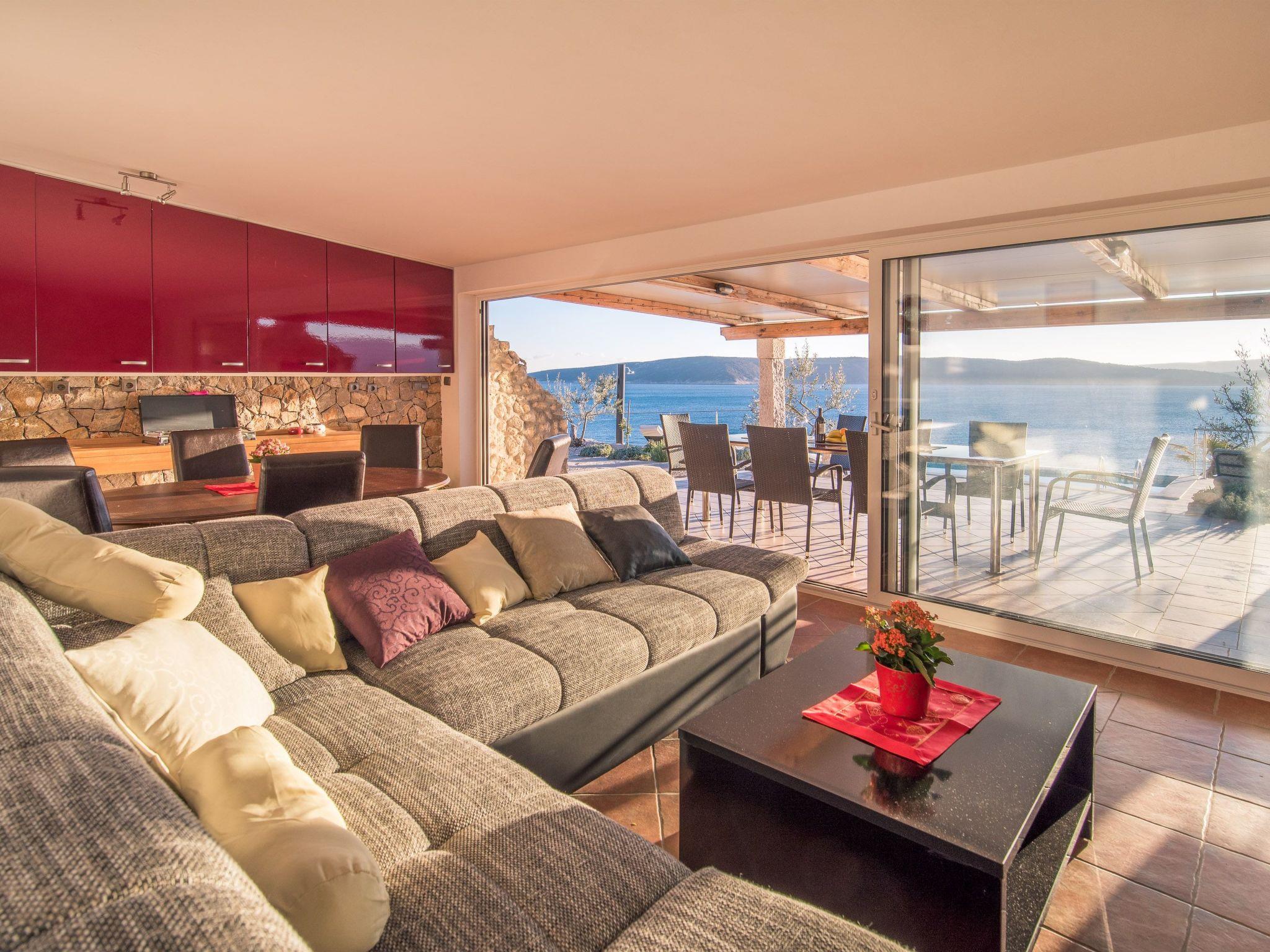 The living room opens to a large terrace where there are sofas, barbecue and an infinity pool and opened fabulous view in which you will surely enjoy. All around is a lot of olive trees and Mediterranean plants. Next to the pool is a terrace with a the stairs leading directly to the sea. Villa has 2 bedrooms, each with double bed, bathroom and outdoor shower. Two more people can sleep on the sofa bed in the living room so that it provides accommodation for a total of 6 people. The kitchen is equipped with modern furniture and contains a stove, washing machine, refrigerator, toaster and coffee machine.