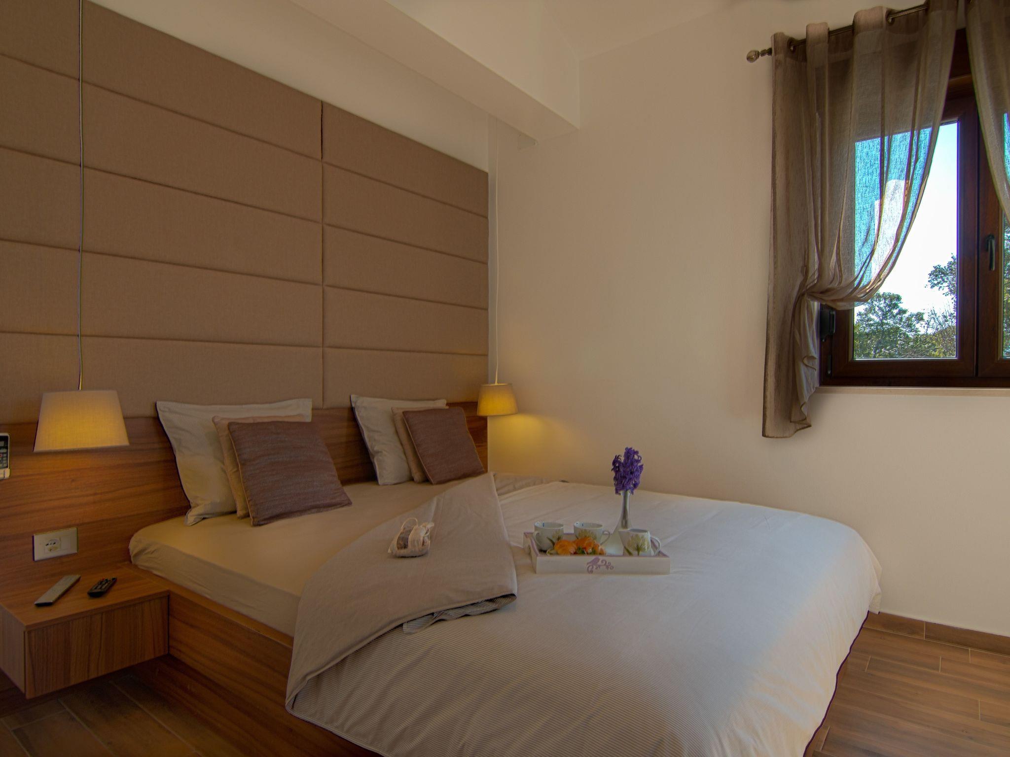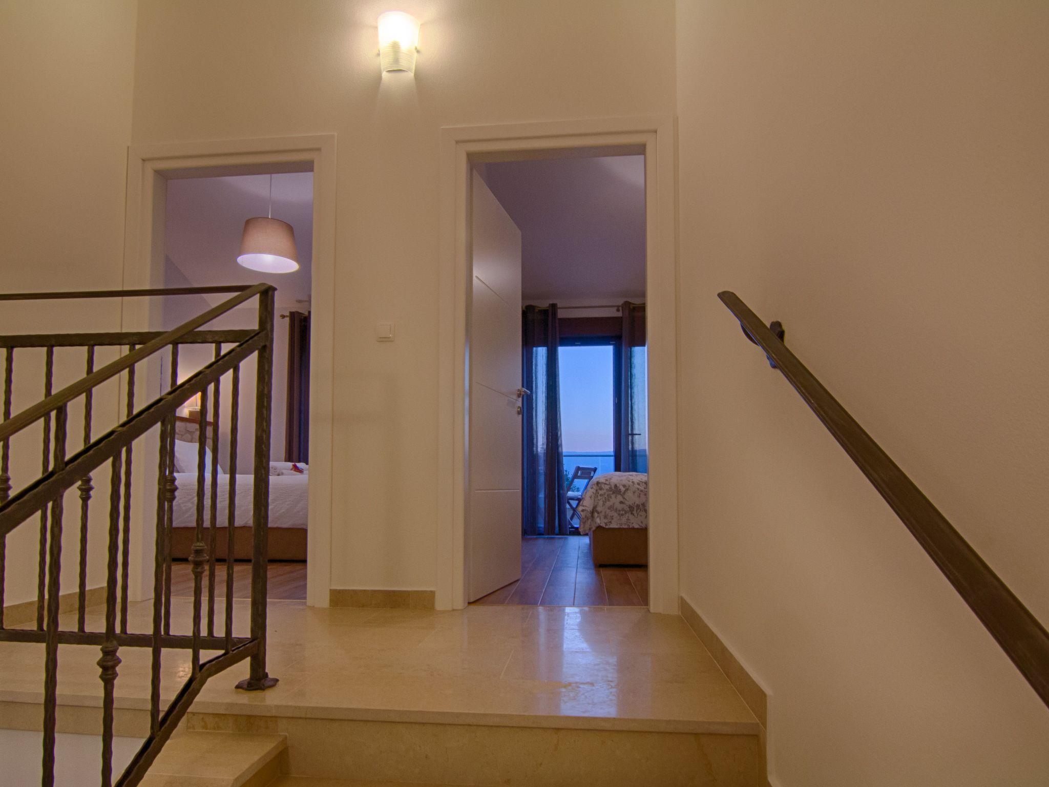 On the upper floor of the villa are three spacious bedrooms with double beds, each with private bathroom. The rooms also offer space for two extra beds so that the house can accommodate up to 8 people in total. The terrace offers a breathtaking view of the sea; The villa is fully air conditioned and has free Wi-Fi.