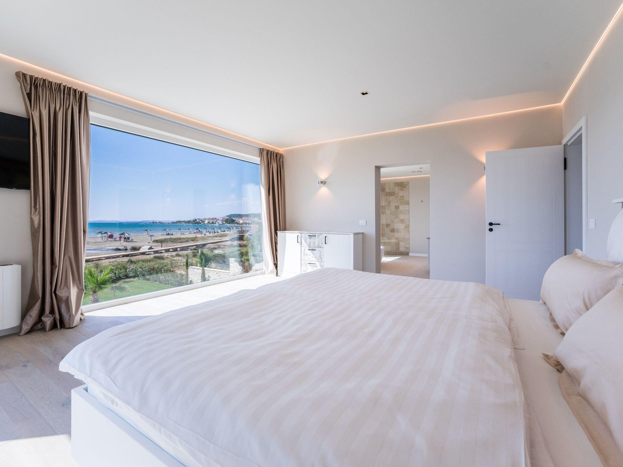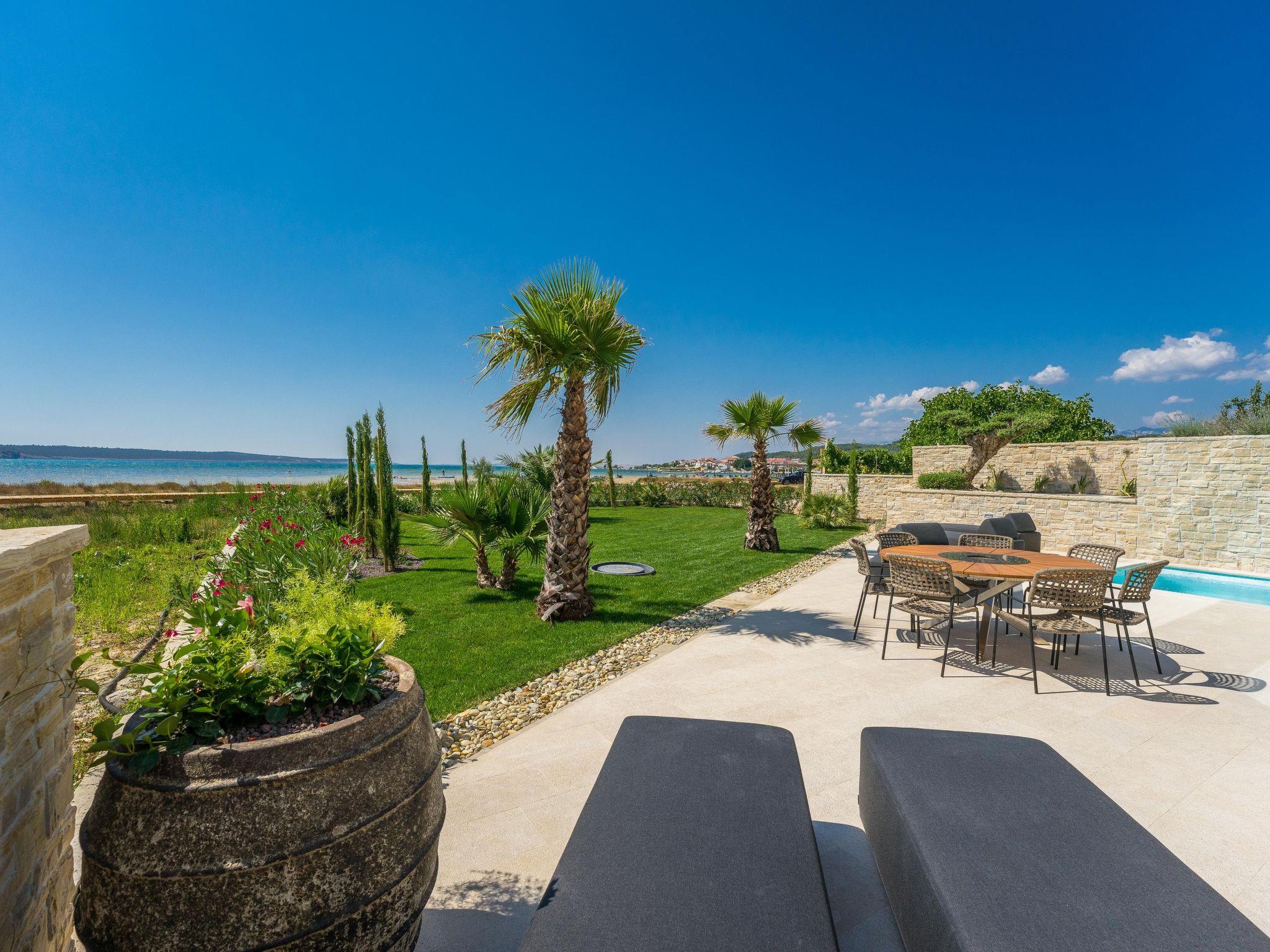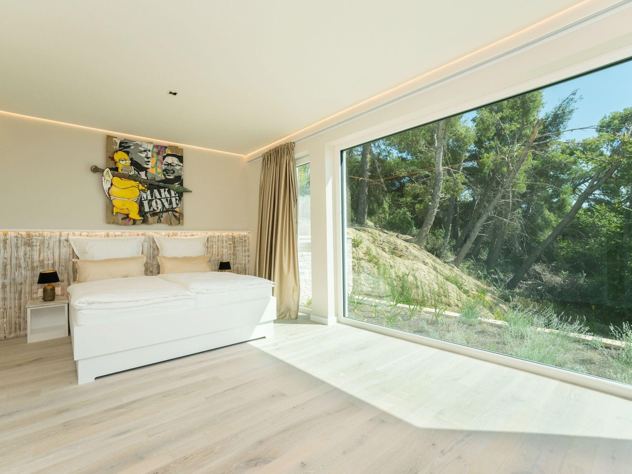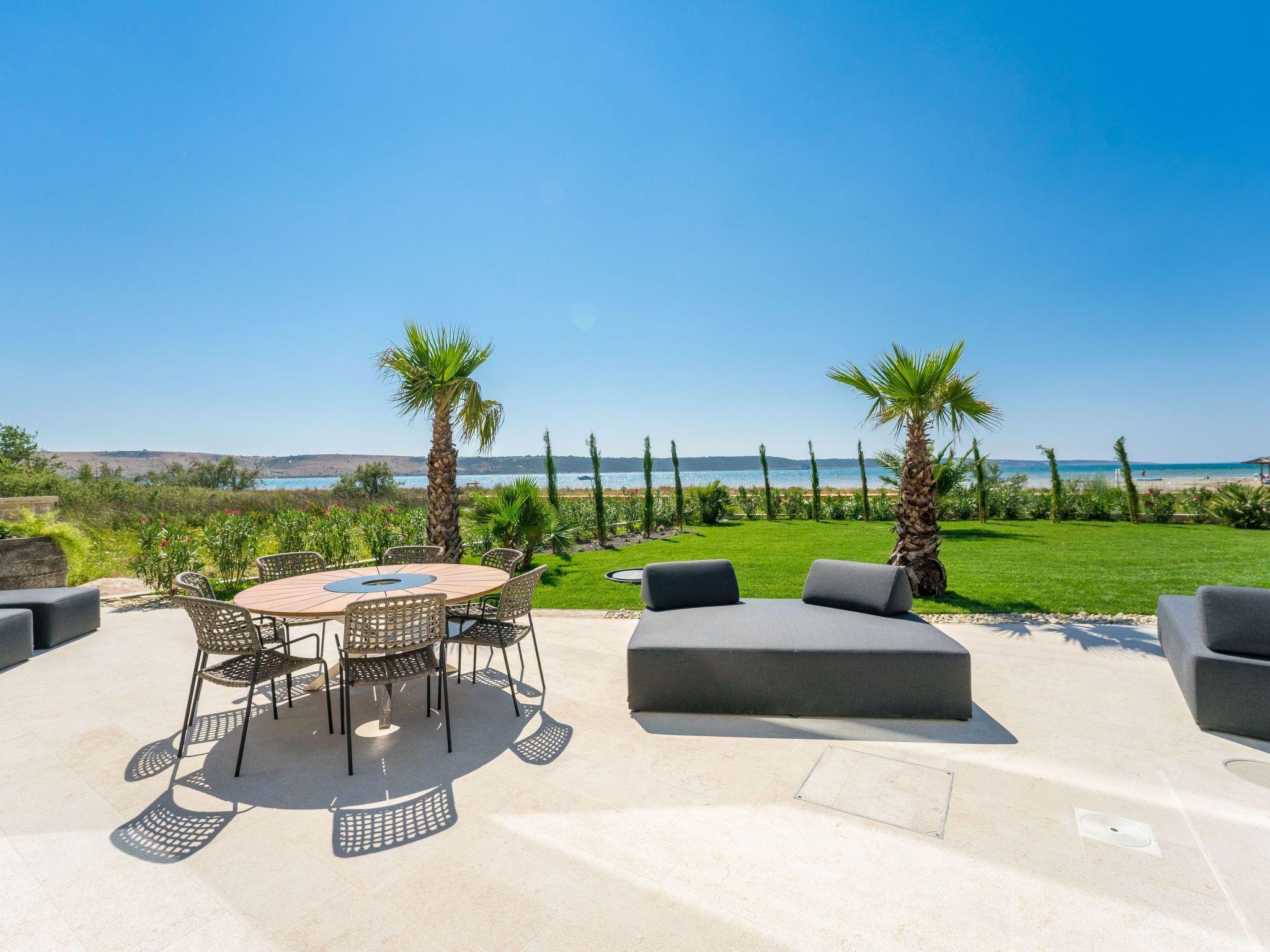 On the first floor, in addition to a wellness area with sauna, whirlpool, outdoor shower and luxurious lounge furniture, there is also an outdoor kitchen with a dining area for 10 people; from there (9 metres high) you have a unique view of the Velebit Mountains and the sea. A Bluetooth sound system adds to the holiday atmosphere.