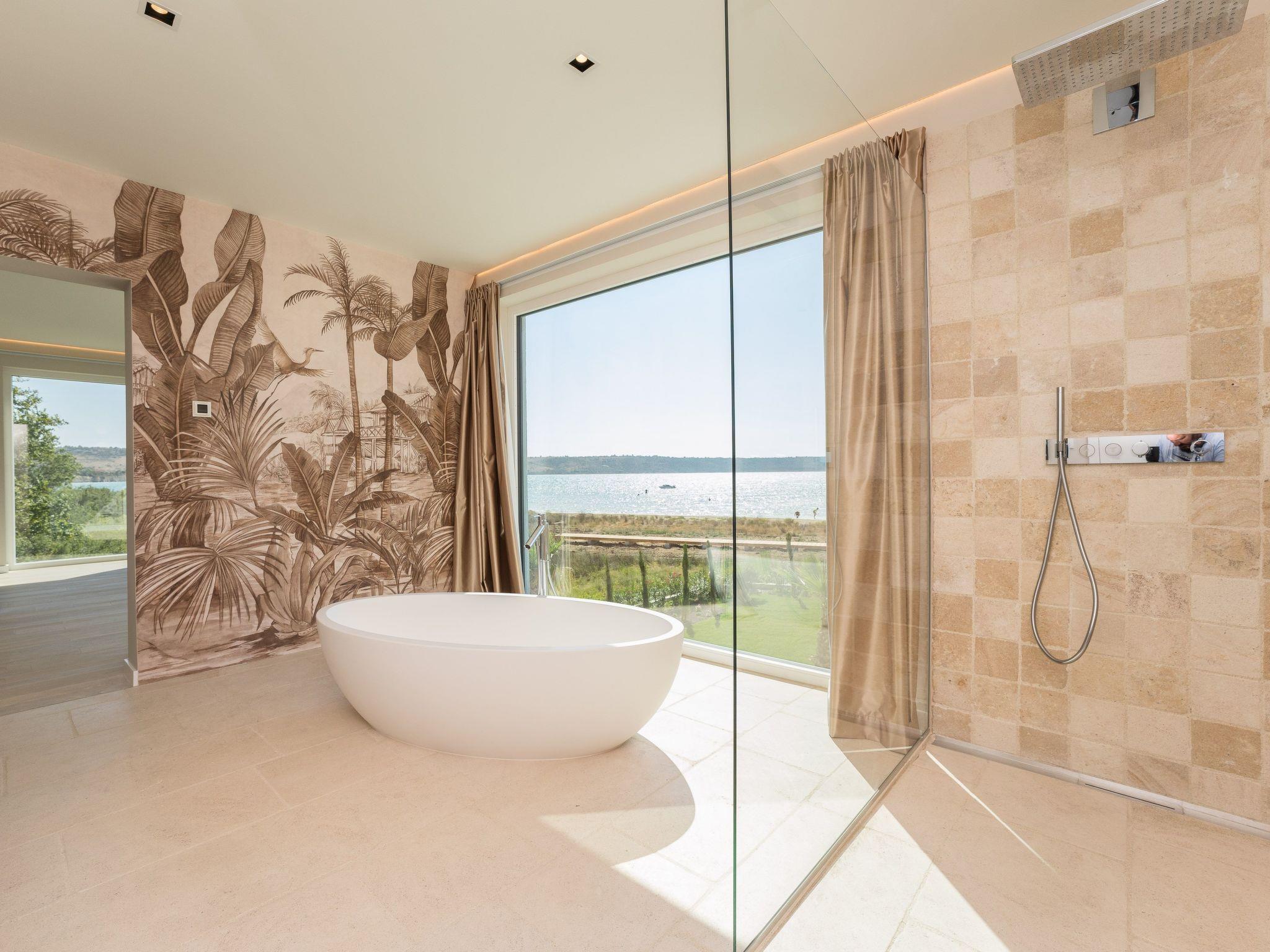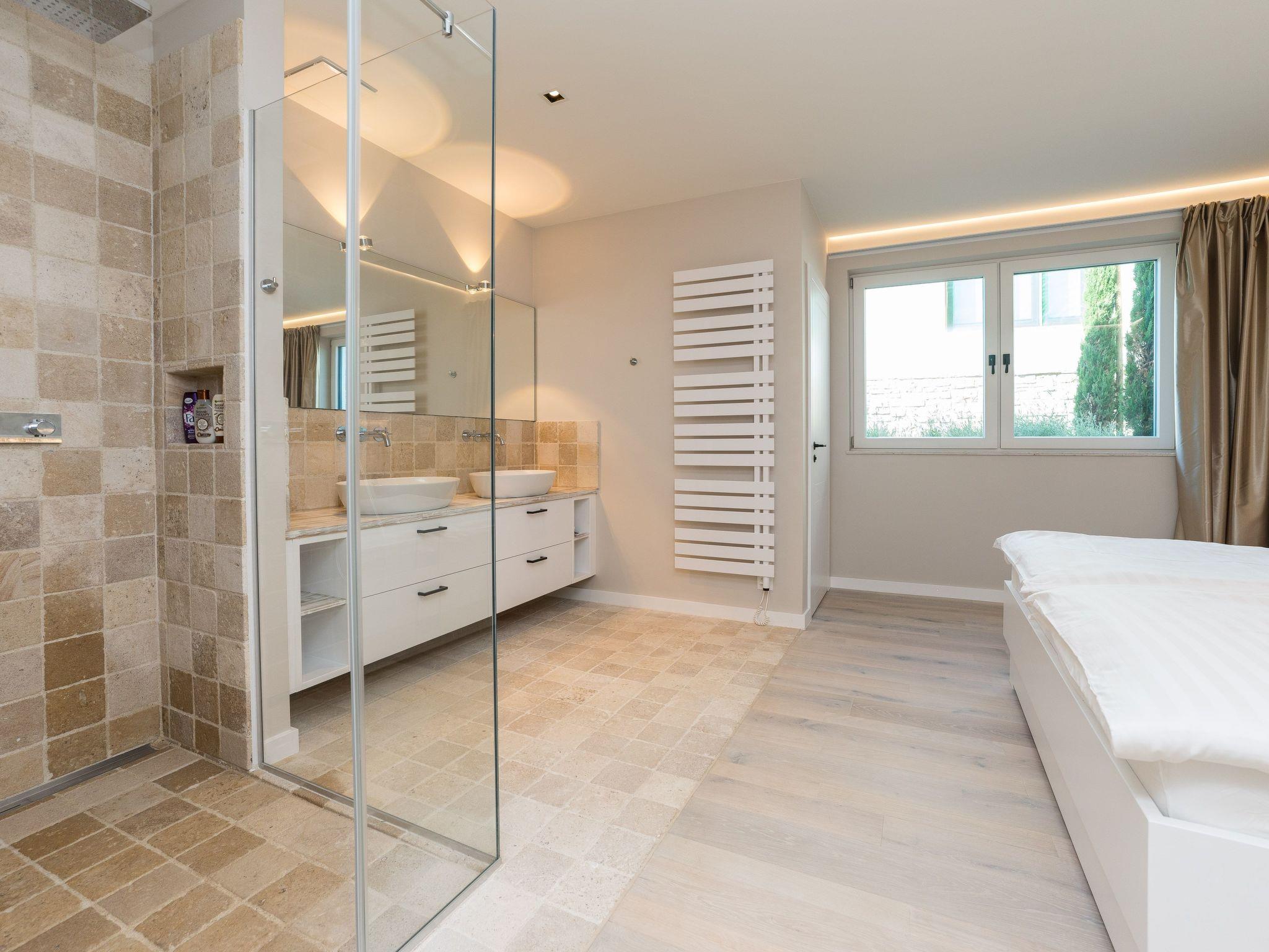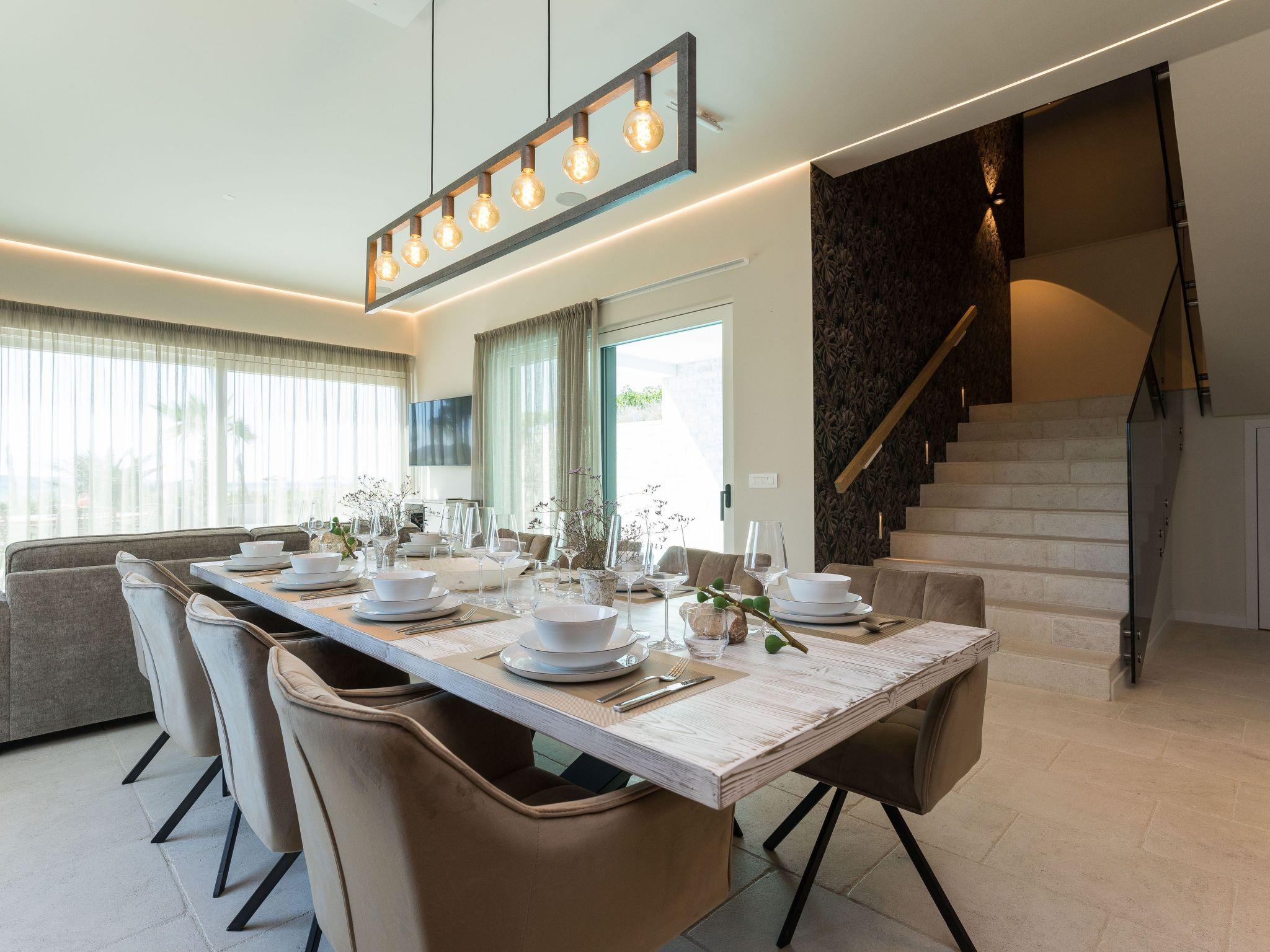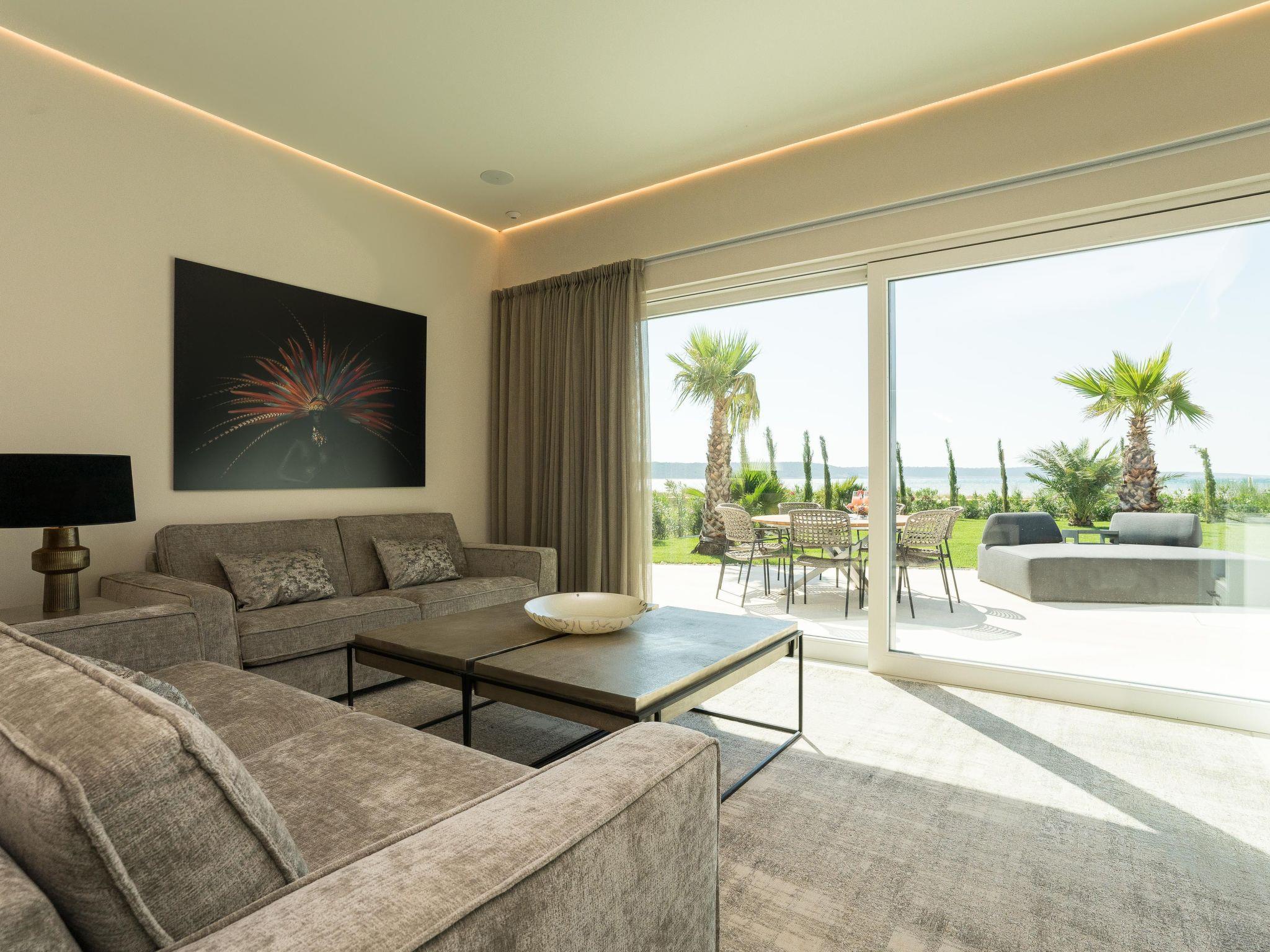 On the first floor, in addition to a wellness area with sauna, whirlpool, outdoor shower and luxurious lounge furniture, there is also an outdoor kitchen with a dining area for 10 people; from there (9 metres high) you have a unique view of the Velebit Mountains and the sea. A Bluetooth sound system adds to the holiday atmosphere.