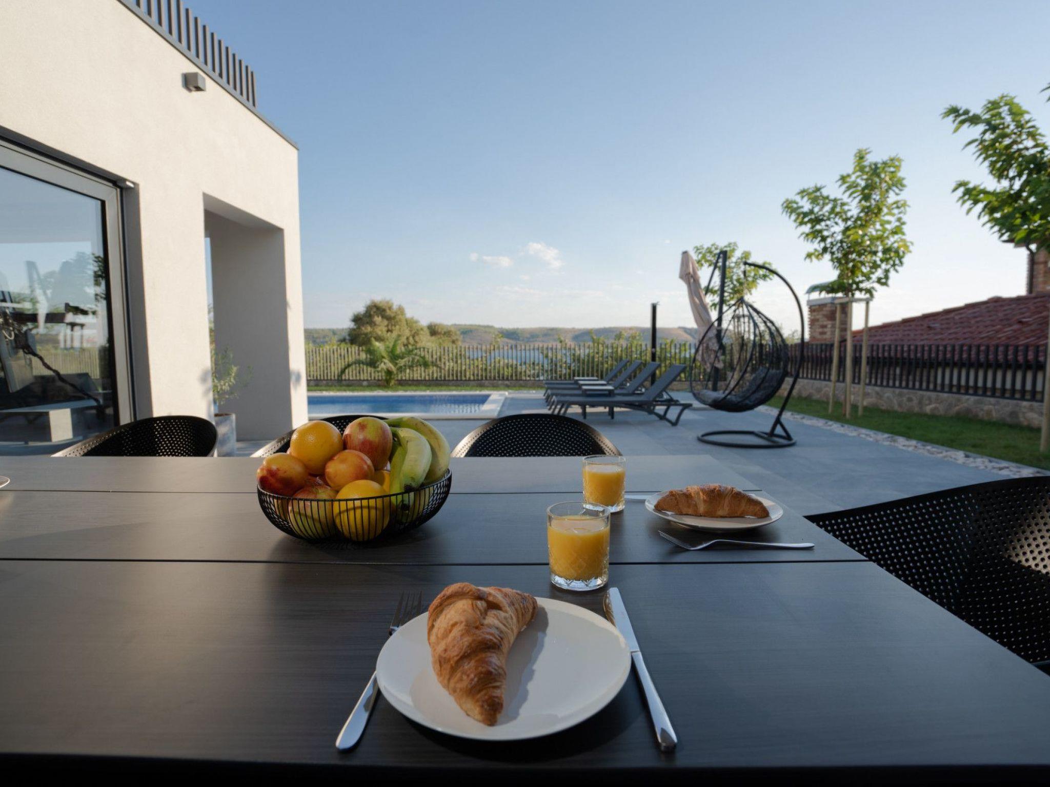 The outside space of Villa Kara Sevda is genuinely designed for relaxing. It has a terrace with comfy outdoor furniture, a 40m2 heated saltwater pool, sun loungers, a covered outdoor kitchen, barbeque, and a dining area. The property also has a lawn that is great for kids to play on, as well as an attentively maintained garden and 50-year-old olive, fig, and palm trees.