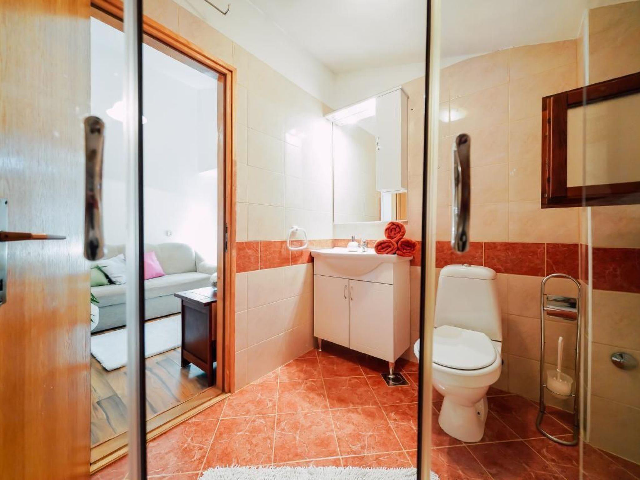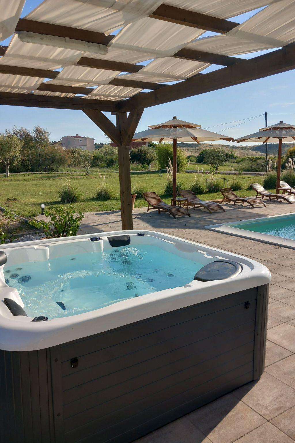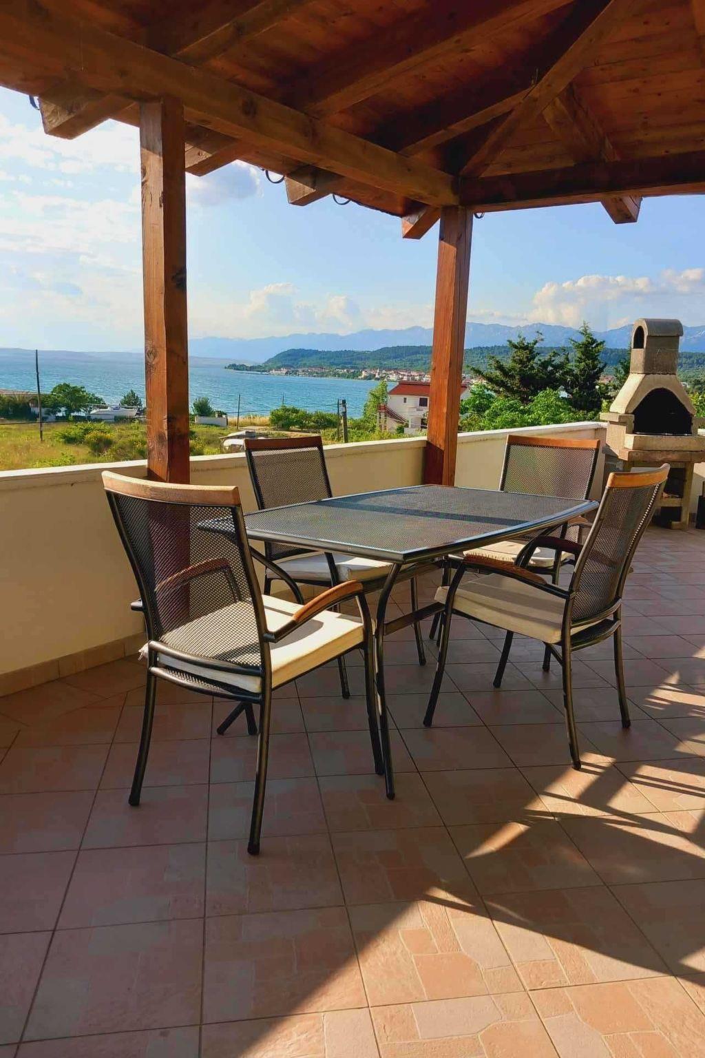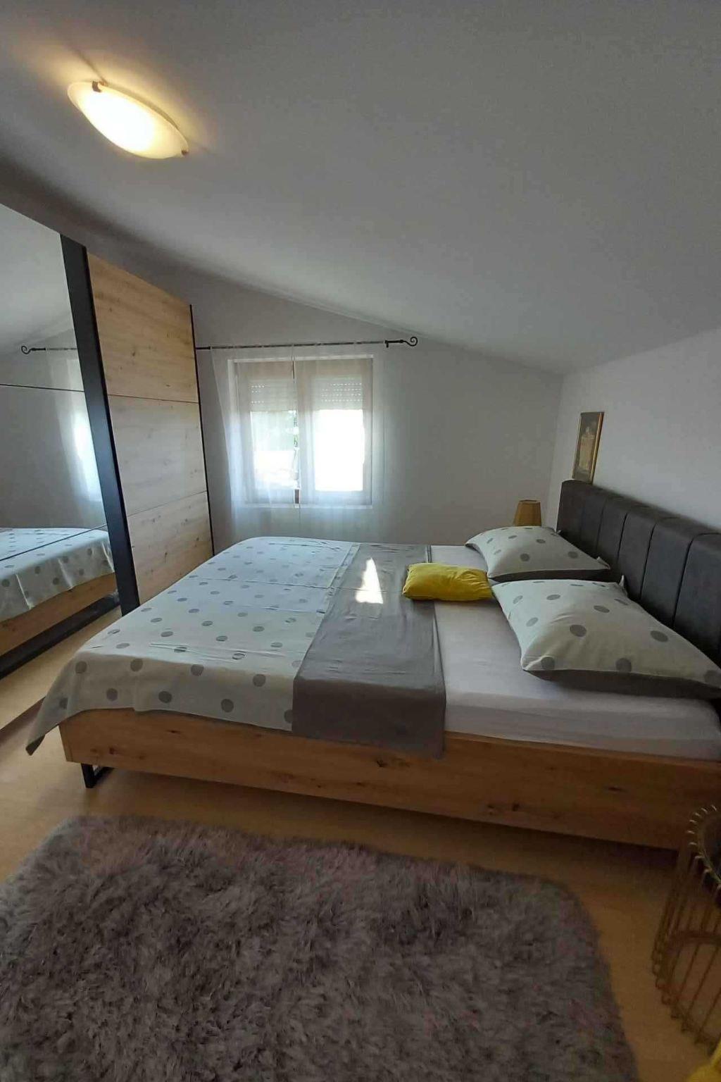 This family run apartment is ideal for 4 persons but it can accomodate up to 5 persons. Apartment has two bedrooms: one with double bed (160x2), and the other bedroom with double bed (140x2) and 1 single bed. There's a sofa in the living room, kitchen fully equipped with dishwasher, oven, kettle, coffee machine, microwave, fridge with freezer...Apartment is situated on the first floor, it has spacious terrace (30 sqm) with amazing sea view and own grill. Also, apartment has it's own entry. Pool (33 sqm), separated Whirpool (5 persons), and sunbathing place (with loungers and parasols) are shared with one more apartment. Hosts are also living in the house, and ready to help if needed.