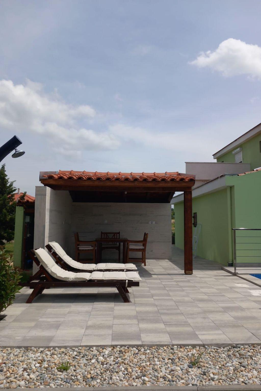 Apartment has one bedroom with double bed (160x2), sofa in the living room possible to extend (140x2), kitchen fully equipped with dishwasher, oven, kettle, coffee machine, microwave, fridge with freezer, and everything you need. It has it's own wi-fi. Washing machine included. Apartment is situated on the ground floor and it has it's own entrance. It has outdoor terrace with an amazing sea view and relaxing space. Pool and sunbathing place are its own. Has a grill too.