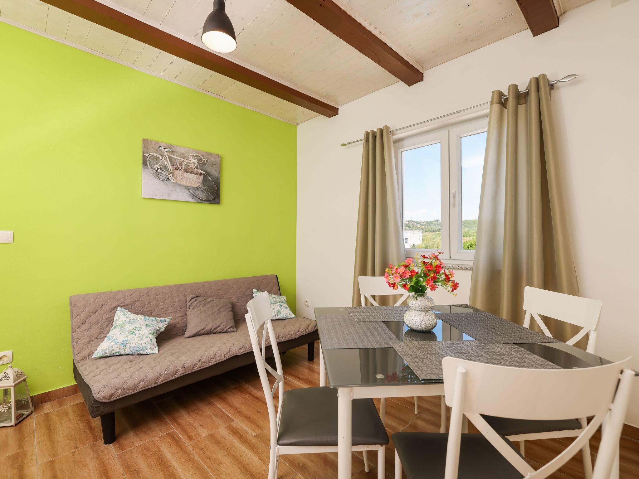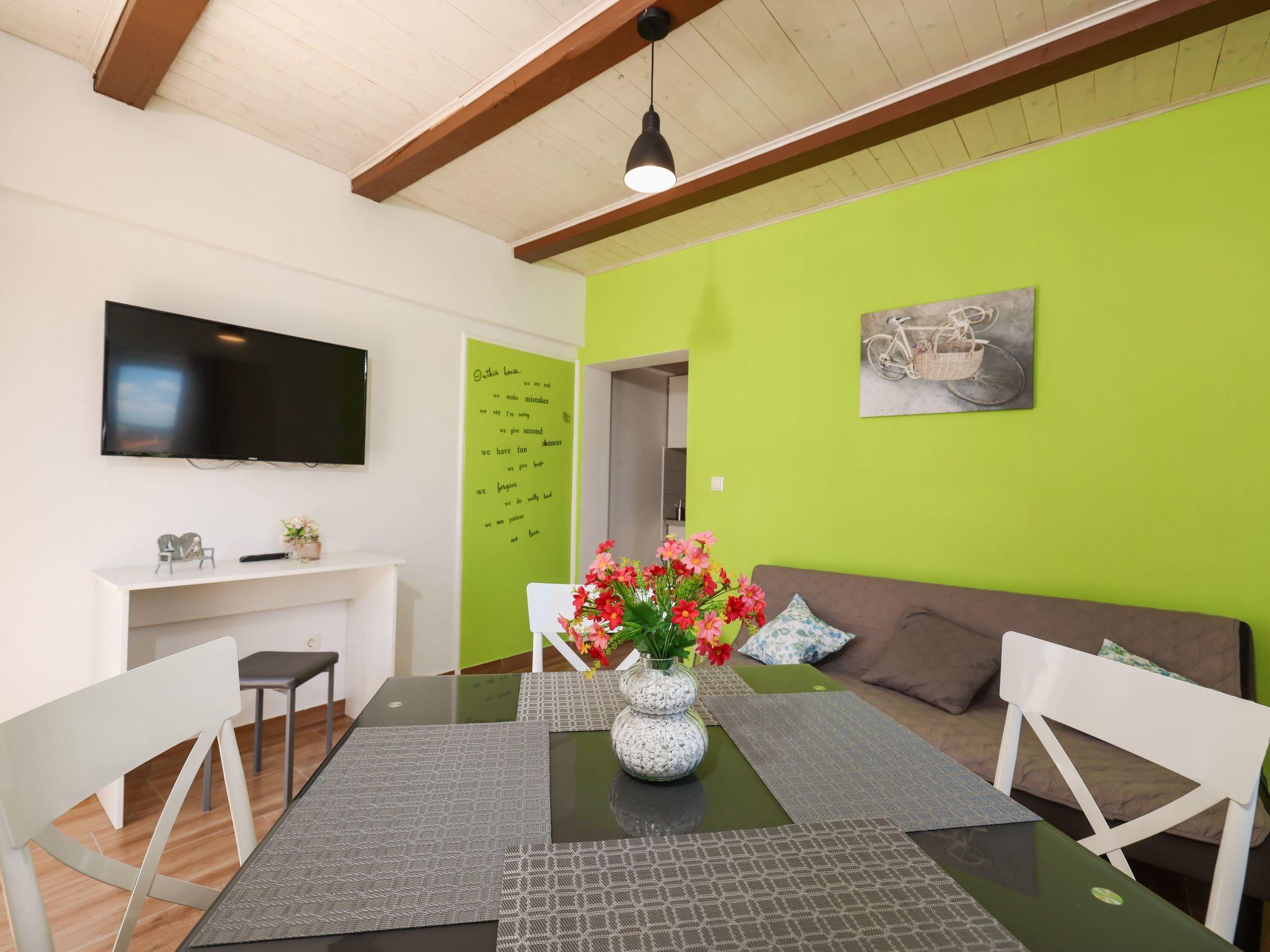 Inside, each apartment is a haven of modern living combined with comfort. This particular apartment, one of the two on the first floor, features an open-plan living/dining area with a fully equipped kitchen unit to cater to your culinary desires. Further enhancing your stay is a cozy bedroom with a double bed, a modern bathroom with a shower, and additional sleeping arrangements in the living area with a sofa bed. Amenities such as air conditioning, a TV, free WiFi, and the inclusion of a baby cot on request ensure a homely experience. The private balcony offers a serene spot to unwind with views that speak directly to the soul.