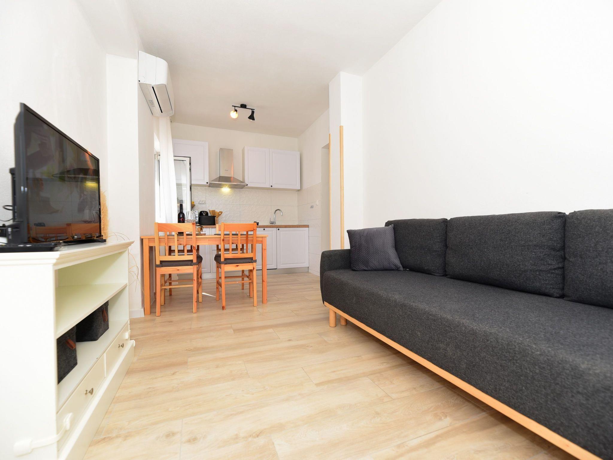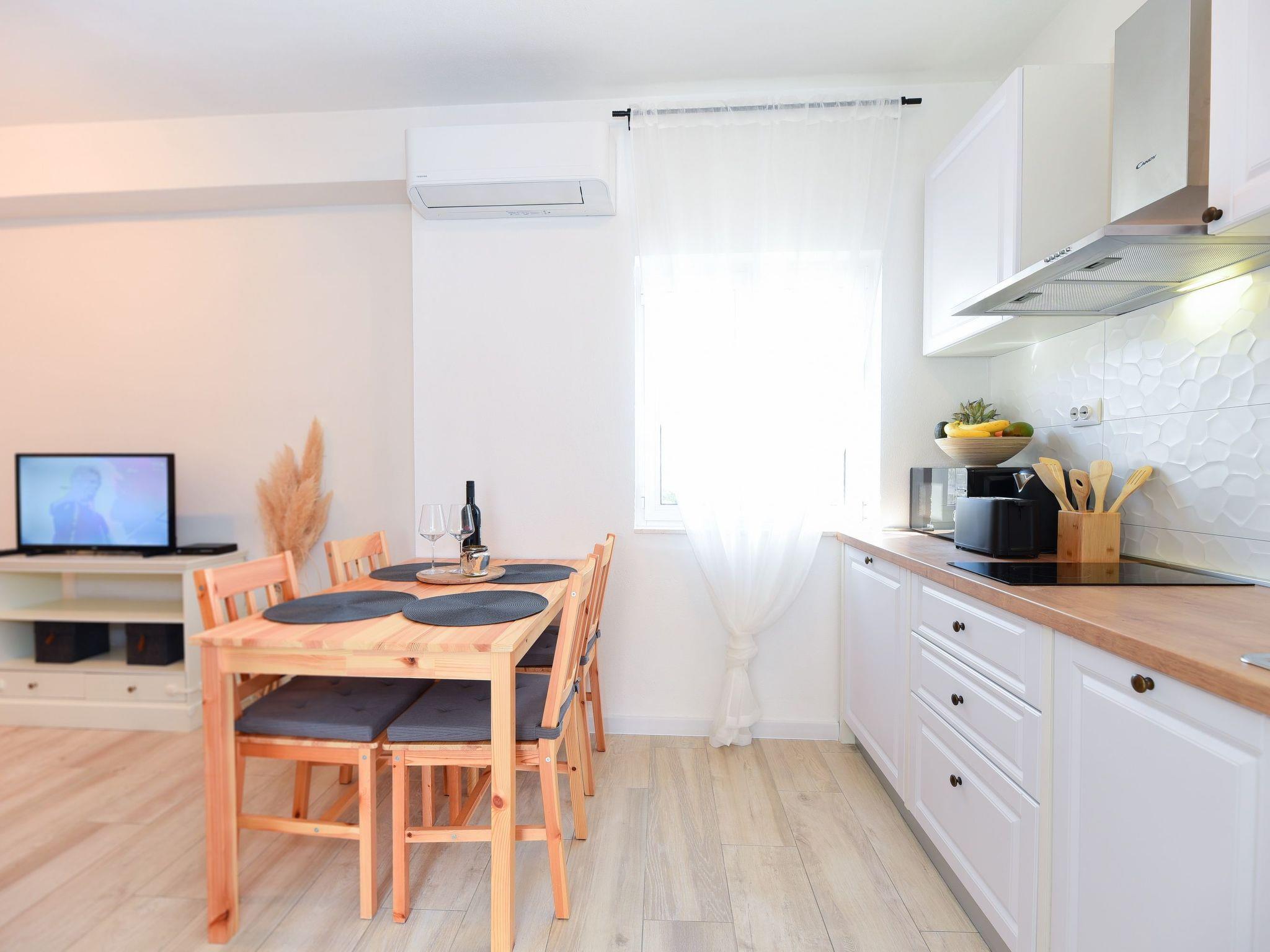 Outside, a terrace invites you to relax under the Dalmatian sky, offering you a private space to enjoy the gentle sea breeze. The presence of a dog-friendly beach only 100 metres away makes this accommodation perfect for those who wish to bring along their four-legged friend, ensuring fun for the whole family. Medium-sized animals are welcome, allowing you to enjoy the company of your faithful companion during your holiday.