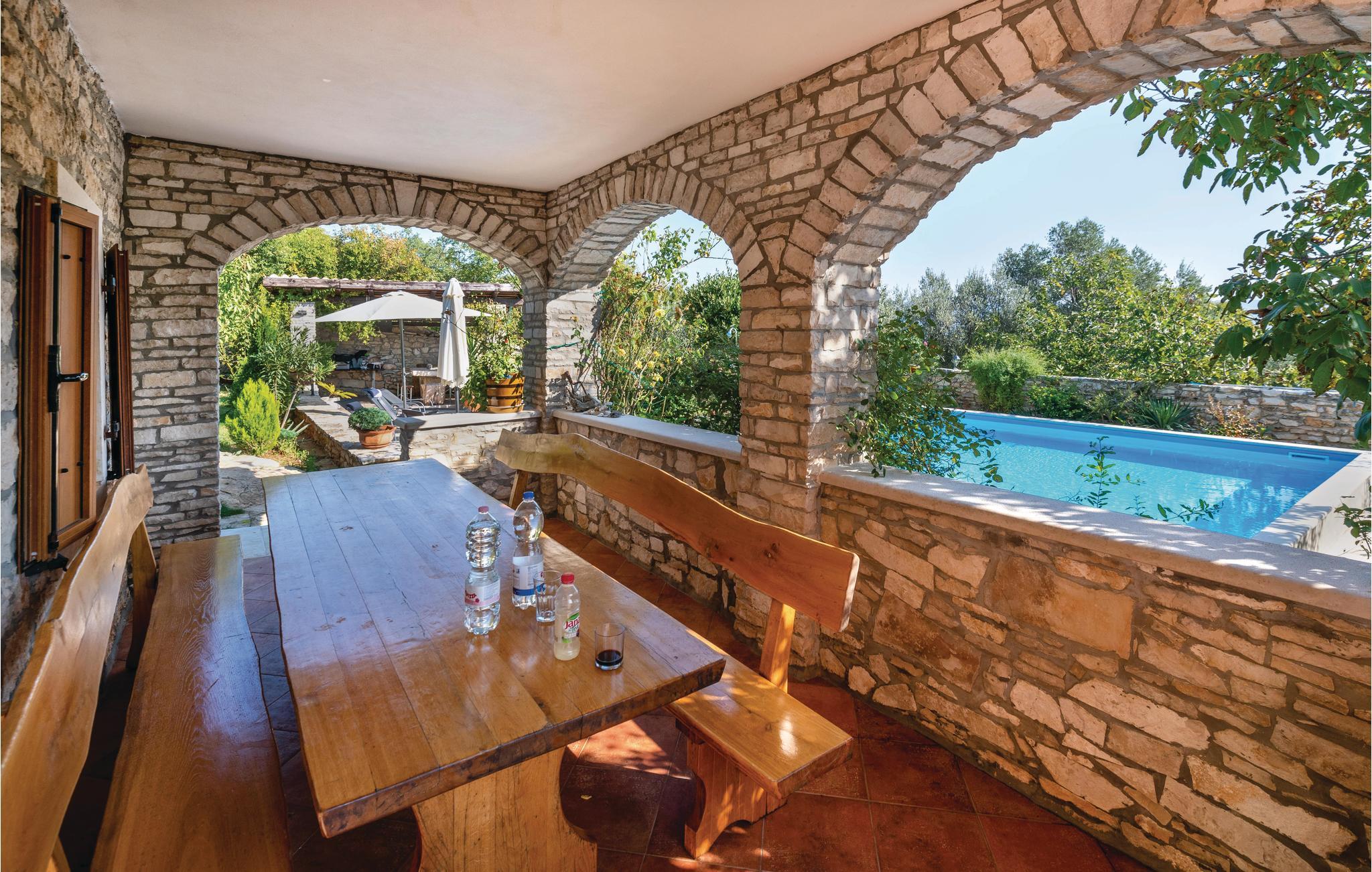 Dette feriehuset i typisk istrisk stil ligger på en høyde over den lille landsbyen Rakalj. Det er spredt over tre etasjer og møblene er koselige. Soverom nr. 1 er et gjennomgangsrom. En trapp fører fra det til loftet. Her, bak en dør, er soverom nr. 4. Fra eiendommen har du en fantastisk utsikt over havet og landskapet. Området er laget for å slappe av fra stresset i hverdagen. Den romslige eiendommen tilbyr alle slags muligheter for å leke. Det har et svømmebasseng hvor du kan forfriske deg i de varme sommerdagene, eller tilbringe hyggelige kveldstimer på den vakre terrassen. Du kan gå fotturer eller sykle i denne regionen.