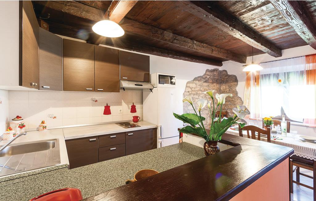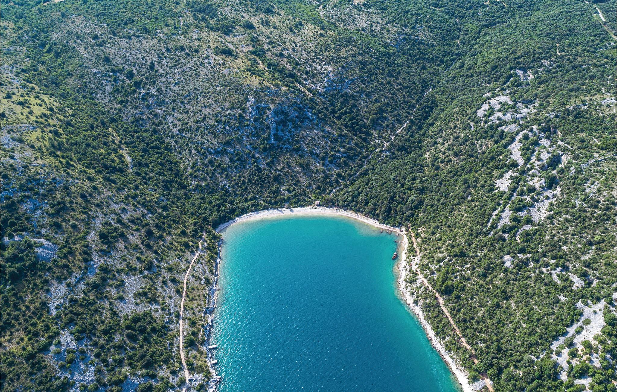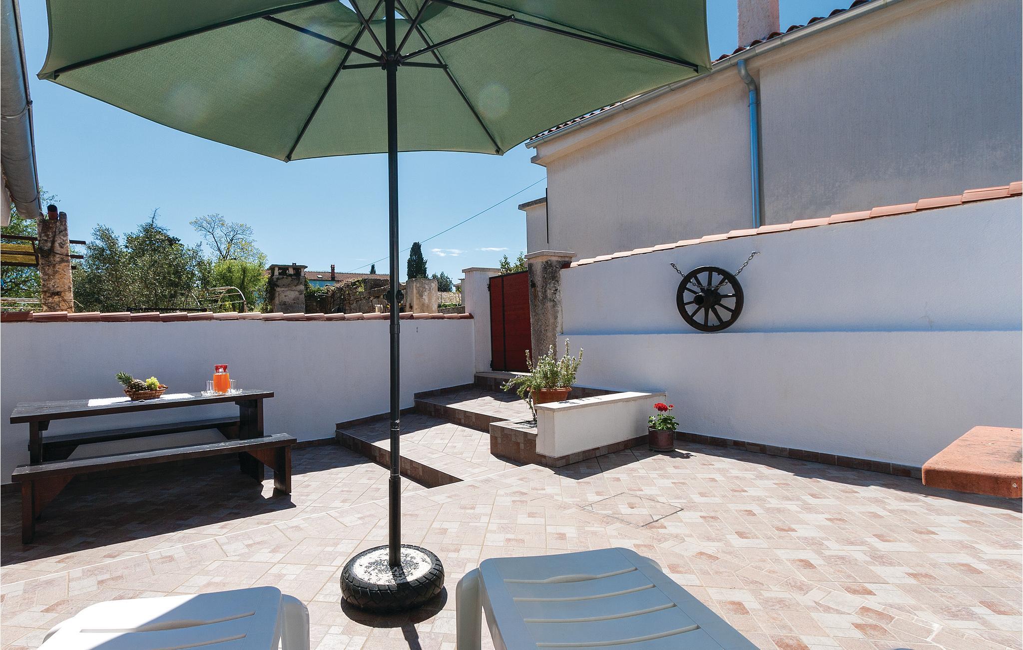 Denne tomannsboligen ligger i et rolig område i landsbyen Krnica. Interiøret er fullstendig innredet i autentisk stil og gir deg muligheten til å tilbringe ferien i et tradisjonelt hus med elementer av dagens levestandard. Stue med kjøkken og bad ligger i første etasje, mens to soverom ligger i andre etasje. På den inngjerdede tomten venter en vakker terrasse hvor du kan nyte grillede spesialiteter. Vakre, skjulte bukter og strender ligger bare noen få kilometer unna. Krnica er et rolig sted på en høyde over havet, omgitt av skog, beitemarker og vingårder. Besøk andre steder i regionen, som Mutvoran, Bla Bay, Rakalj og utkikkspunktet St Agnes med en fantastisk utsikt over Raabukta, byen Labin og Kvarnerøyene.