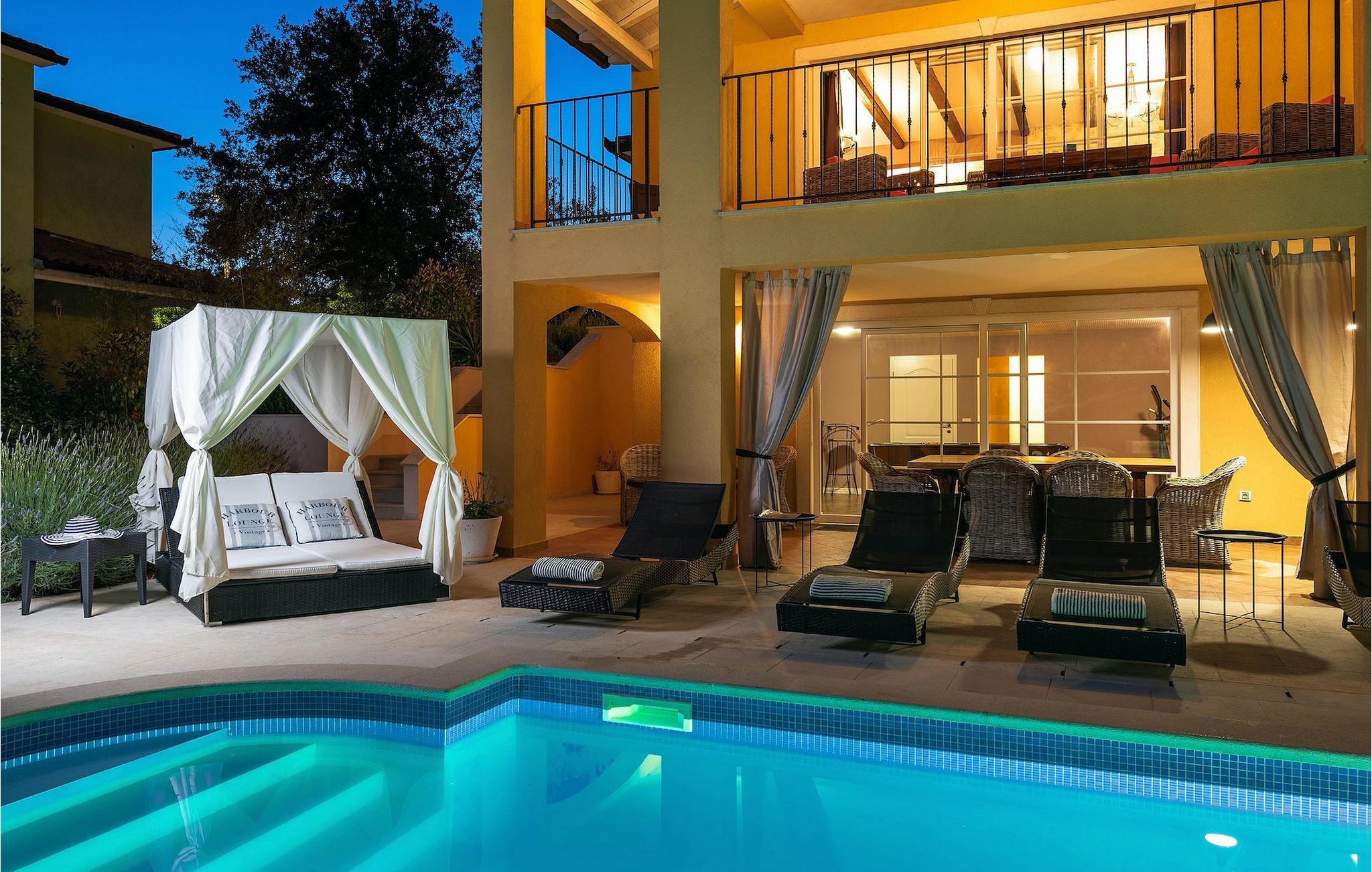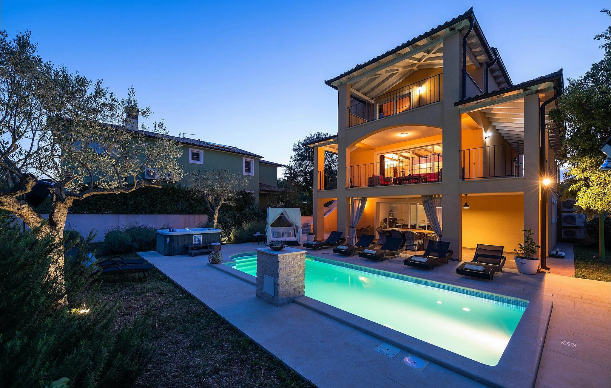 Den vakre Villa Ari tilbyr en ideell ferie for venner eller familier som ønsker å tilbringe den med å nyte det vakre blå Adriaterhavet. Villa Ari har plass til opptil 8+2 personer. Villaen har 4 soverom, 4 bad, en stue og et fullt utstyrt kjøkken med spiseplass. Treningsrom, badstue og boblebad er også tilgjengelig.