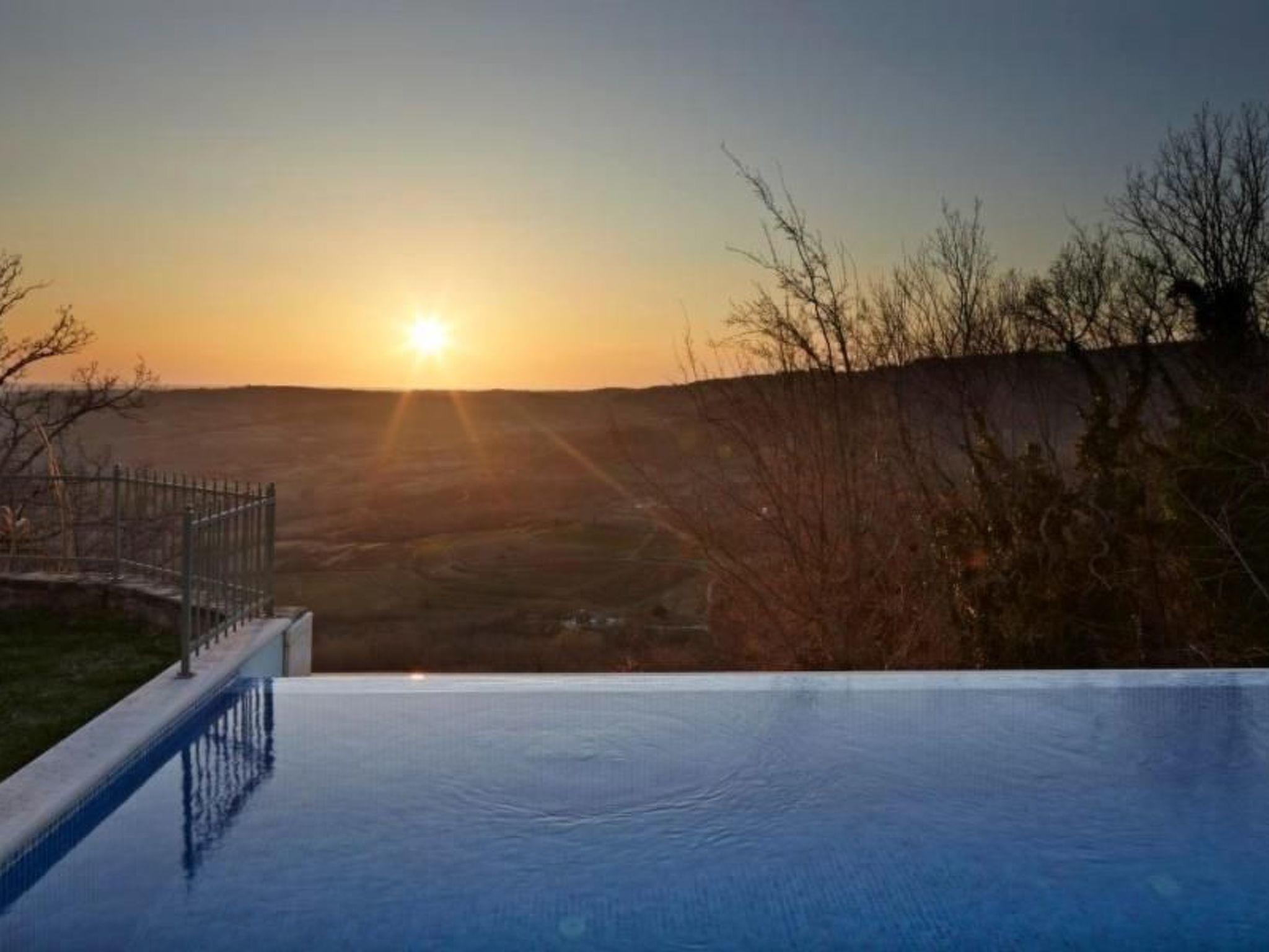 Set amidst Croatia's best wine makers and situated between two medieval towns (Grožnjan and Motovun) famed for their truffle based cuisine and cultural events, Melegran In The Hills is a hilltop family owned villa offering breathtaking views over vineyards, olive groves and a sparkling backdrop of the Adriatic Sea. Only 20 min drive from the coastline, the young owners love using the villa for both getting away from it all and hosting family and friends wanting to combine the rural and seaside in a vacation. The owners have stayed true to traditional Istrian architecture and used their extensive travels to create a luxurious, eclectic interior combined with a very homely feel, all designed to the highest standards. The villa is located in the village of Biloslavi, 5km from Groznjan. The property boasts in excess of 270m2 and is set over 3 floors. It comprises 4 luxury bedrooms with individual bathrooms, as well as a living room with fireplace, dining room / kitchen with fire place, wine cellar, and separate TV/library gallery. The master bedroom stretches over 60m2 and also includes a fireplace. All fixtures and fittings throughout the house are state of the art. We are a young Croatian/Australian family, living in Notting Hill, London, and are very passionate about travel! We enjoy staying in unique and beautiful places around the world and love accommodation that embraces stylish comfort. We hope that our villa will attract like-minded guests and offer them a memorable holiday in Croatia.Short descriptionOther : Non-smoking houseShort description 1Number of kitchens : 1SurroundingNearby sports facilities : Bike tours, Mountainbiking, Riding possibilitiesRental Facilities : Bicycle rental serviceGarden and outdoorGarden facilities : Garden furniture provided, GrillOn-site leisure facilities : Outdoor swimming pool exclusive use, Swimming poolService benefitsService facilities (may incur additional costs) : Transfer service (airport etc)
