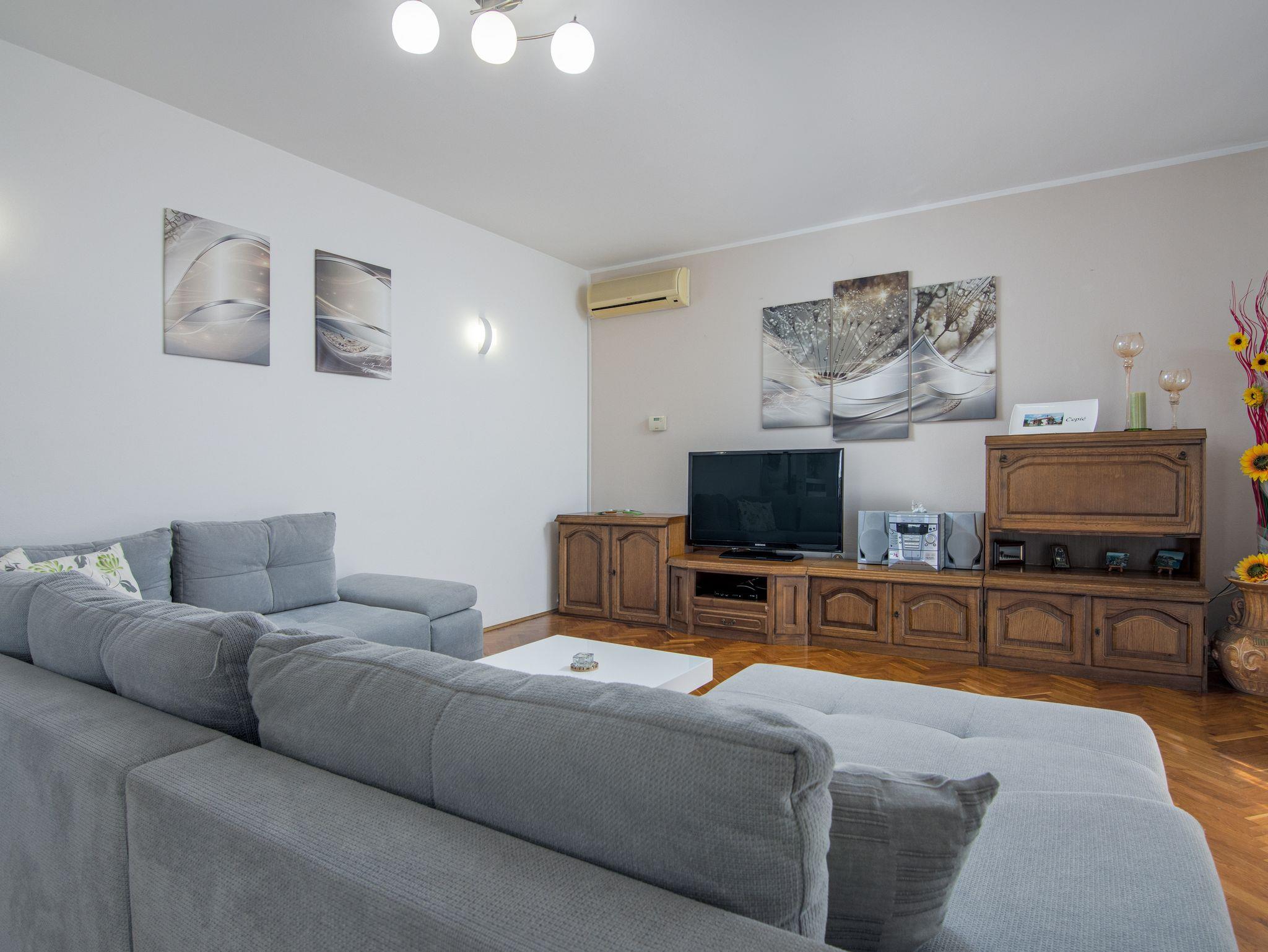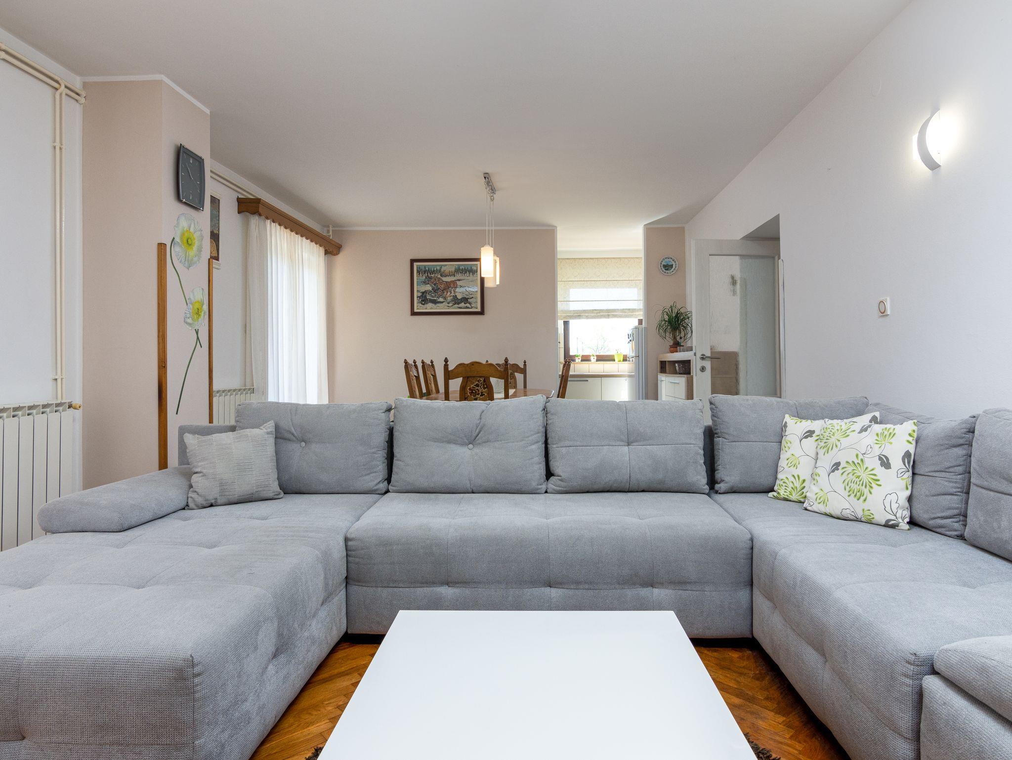 Ferienwohnung bietet Platz für 6 Gäste. Die Betten sind in Schlafzimmern, die es 3 gibt, und in Wohnzimmer, innerhalb einer Gesamtfläche von 80m2, angeordnet. Die Gäste haben eine eigene Terrasse zur Verfügung, auf der sie in warmen Sommernächten genießen können. Für vollen Genuss und Entspannung gibt es einen privaten Grill für Gäste dieser Unterkunft. Während ihres Aufenthalts können sich Gäste im privaten Schwimmbad entspannen. IM PREIS INBEGRIFFEN: Kurtaxe, Endreinigung, Klimatisierung, Zentralheizung, Pool, Parkplatz, Internet, Kinderbett, Föhn, Sonnenschirm, Liegestühle. Die Verfügbarkeit zusätzlicher Dienstleistungen in Ihrem reservierten Termin und die Preise derselben (falls nicht aufgeführt) müssen im Voraus überprüft werden. Zusätzliche Dienstleistungen die in der Zahlungsaufforderung nicht aufgeführt sind werden direkt beim Vermieter bezahlt, angenommen der Gast nutzt auch diese.