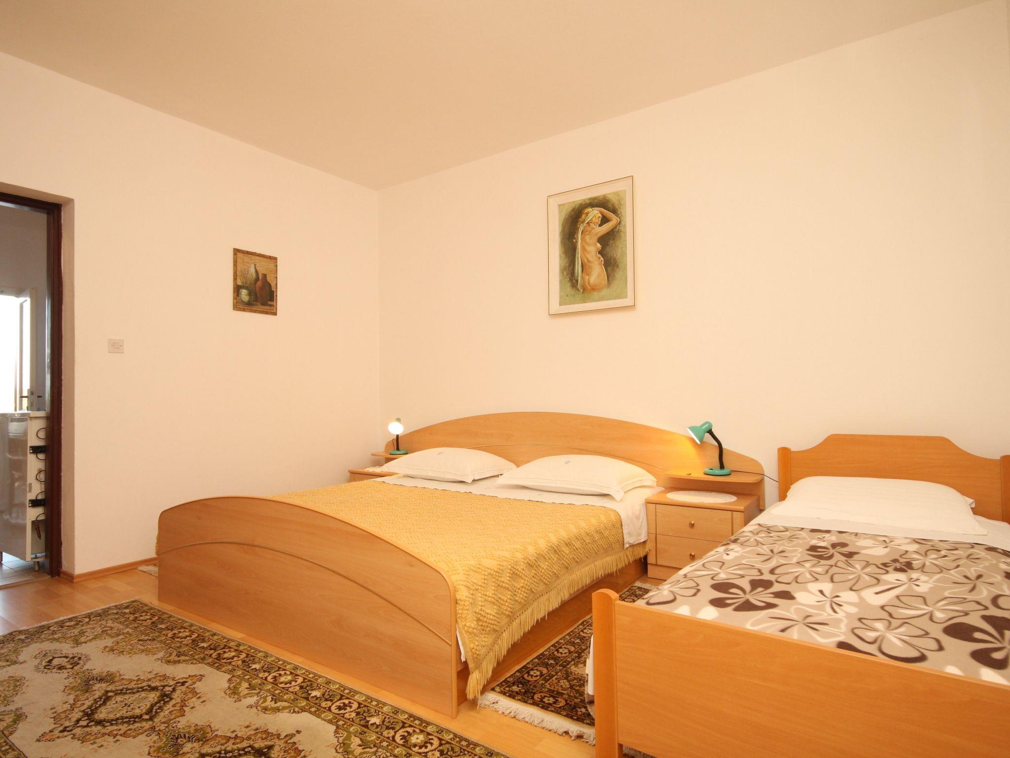 Ferienwohnung bietet Platz für 3 Gäste. Die Betten sind in Schlafzimmern, die es 1 gibt, innerhalb einer Gesamtfläche von 30m2, angeordnet. Die Gäste haben eine eigene Terrasse zur Verfügung, auf der sie in warmen Sommernächten genießen können. Das Apartment bietet Meerblick. Es ist erlaubt, Speisen auf dem Gemeinschafts-Grill vorzubereiten. IM PREIS INBEGRIFFEN: Kurtaxe, Endreinigung, Klimatisierung, Parkplatz, Internet, Föhn. VERBINDLICHE ZUSÄTZLICHE KOSTEN: Aufzahlung für Kurzaufenthalte (prozentualer Zuschlag pro Nächtigungsanzahl: 30% - 1, 20% - 2, 10% - 3). UNVERBINDLICHE ZUSÄTZLICHE KOSTEN: Wäschewaschen (10,00 € Waschen), Bootsanlegeplatz (10,00 € pro Nacht), Zusatzbett (10,00 € pro Nacht). Die Verfügbarkeit zusätzlicher Dienstleistungen in Ihrem reservierten Termin und die Preise derselben (falls nicht aufgeführt) müssen im Voraus überprüft werden. Zusätzliche Dienstleistungen die in der Zahlungsaufforderung nicht aufgeführt sind werden direkt beim Vermieter bezahlt, angenommen der Gast nutzt auch diese.