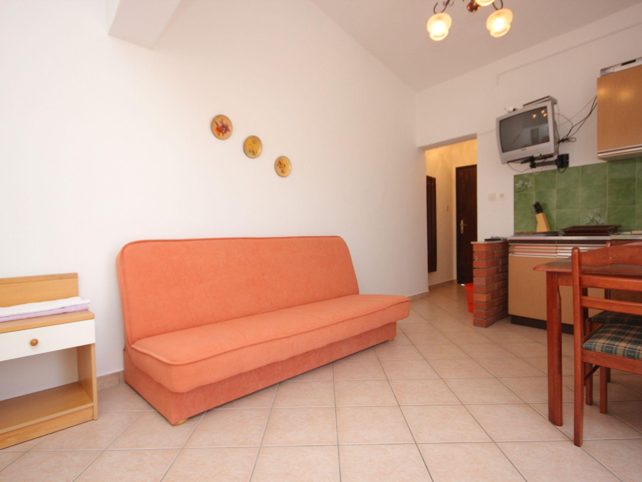 Ferienwohnung bietet Platz für 4 Gäste. Die Betten sind in Schlafzimmern, die es 1 gibt, und in Wohnzimmer, innerhalb einer Gesamtfläche von 34m2, angeordnet. Die Gäste haben einen eigenen Balkon zur Verfügung, auf der sie in warmen Sommernächten genießen können. Das Apartment bietet Meerblick. Es ist erlaubt, Speisen auf dem Gemeinschafts-Grill vorzubereiten. In der Unterkunftseinheit besteht die Möglichkeit des Mitbringens von Haustieren gegen Aufpreis. IM PREIS INBEGRIFFEN: Kurtaxe, Endreinigung, Internet, Bügeleisen, Bügelbrett, Föhn. VERBINDLICHE ZUSÄTZLICHE KOSTEN: Aufzahlung für Kurzaufenthalte (prozentualer Zuschlag pro Nächtigungsanzahl: 30% - 1, 20% - 2, 10% - 3). UNVERBINDLICHE ZUSÄTZLICHE KOSTEN: Klimatisierung (5,00 € pro Nacht), Haustiere (5,00 € pro Nacht). Die Verfügbarkeit zusätzlicher Dienstleistungen in Ihrem reservierten Termin und die Preise derselben (falls nicht aufgeführt) müssen im Voraus überprüft werden. Zusätzliche Dienstleistungen die in der Zahlungsaufforderung nicht aufgeführt sind werden direkt beim Vermieter bezahlt, angenommen der Gast nutzt auch diese. Ermäßigung auf den Grundpreis: Gratistag 14=13 (bei einem Aufenthalt von 14 Tagen oder mehr erhalten Sie einen Gratistag für den Aufenthalt bis 31.12.26).