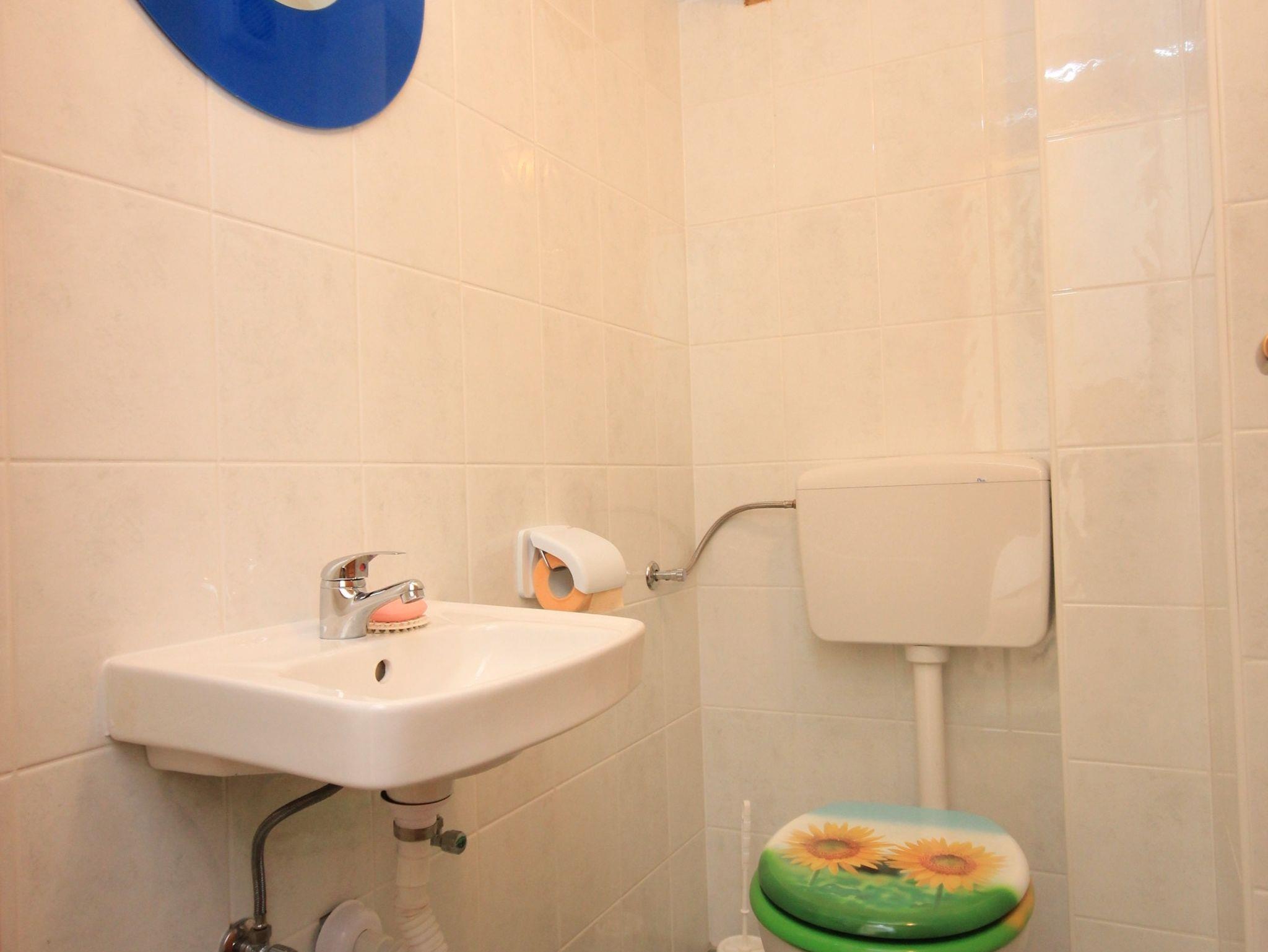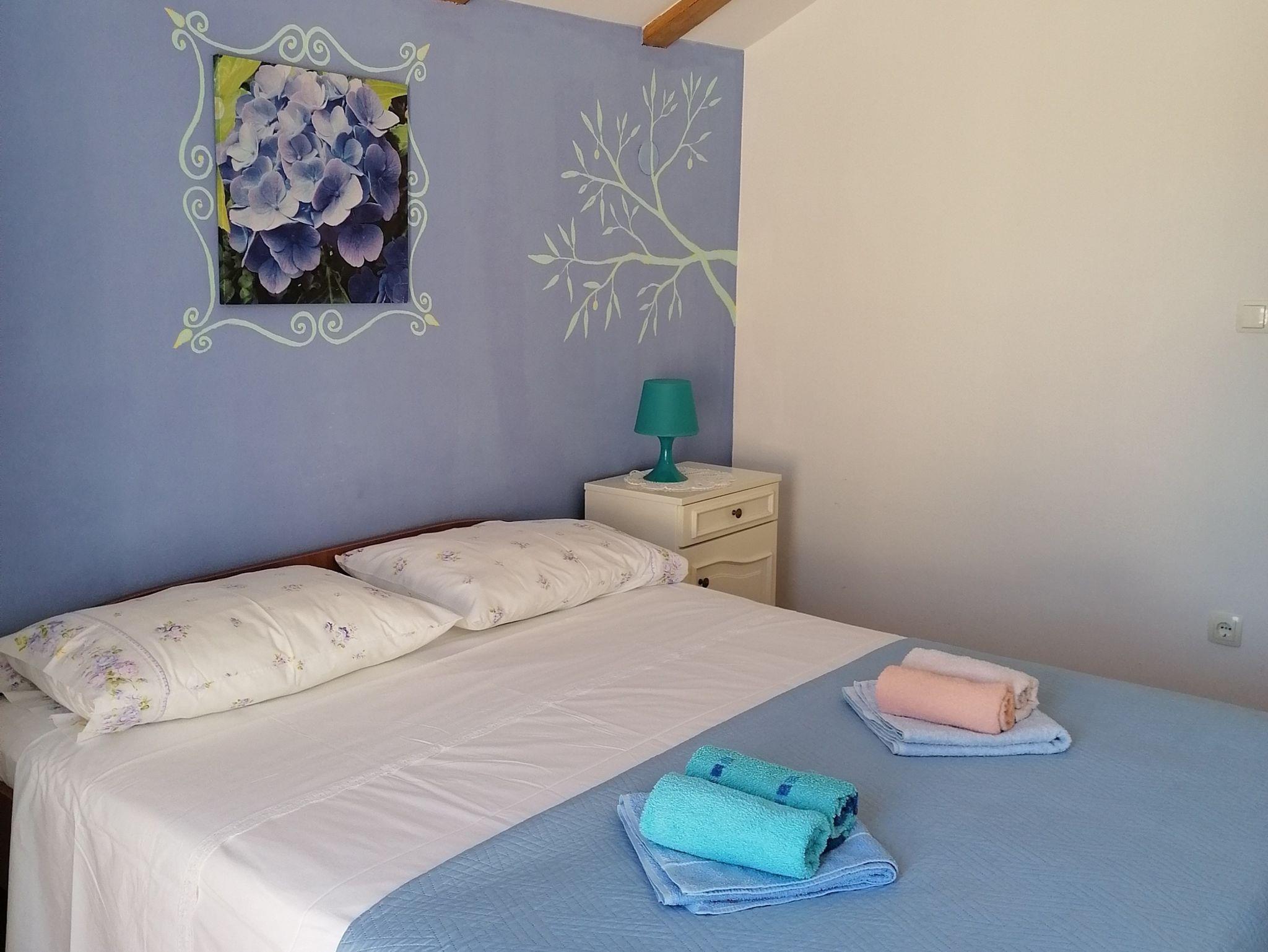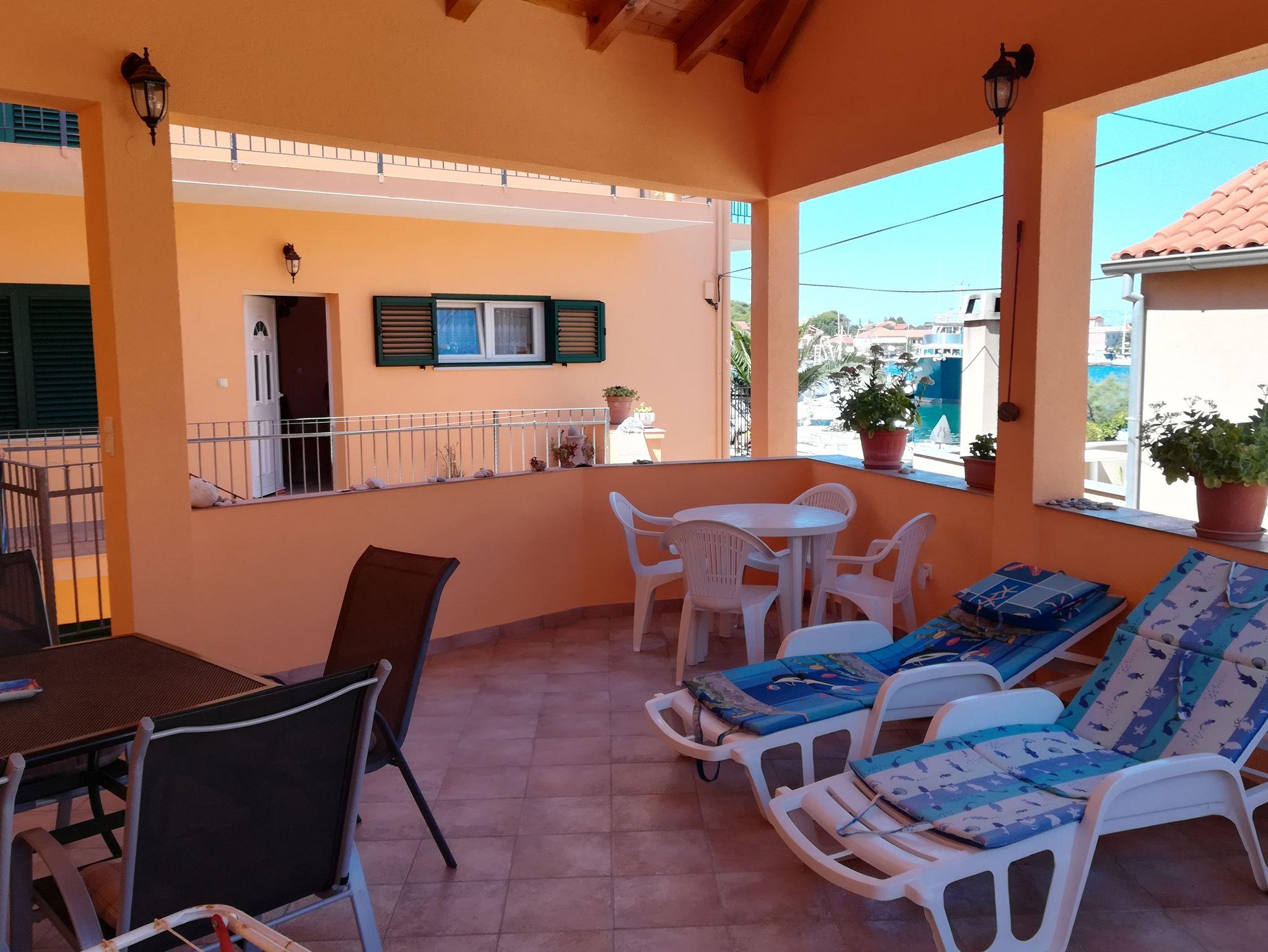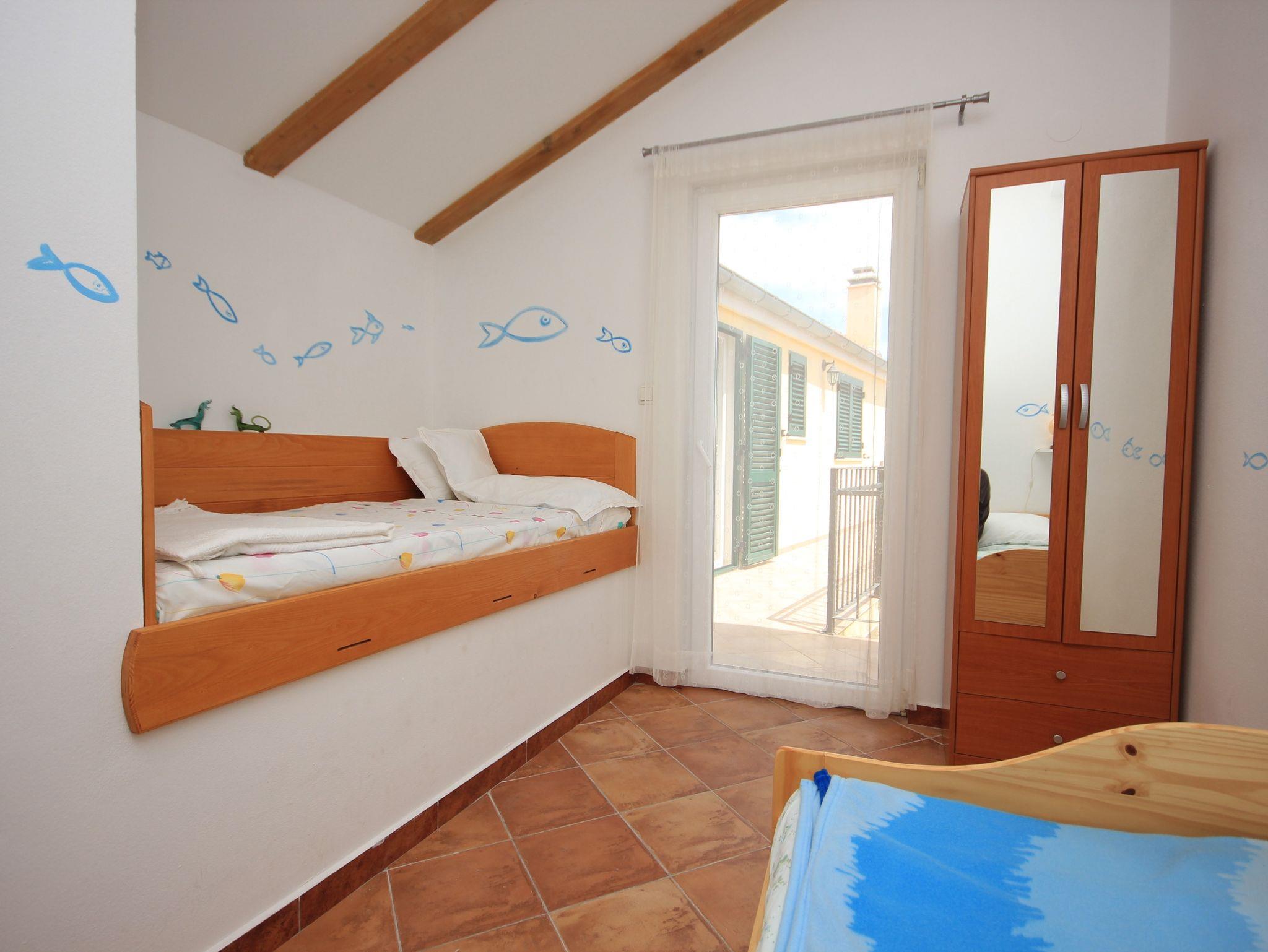 Ferienwohnung bietet Platz für 6 Gäste. Die Betten sind in Schlafzimmern, die es 2 gibt, und in Esszimmer, innerhalb einer Gesamtfläche von 57m2, angeordnet. Die Gäste haben eine eigene Terrasse zur Verfügung, auf der sie in warmen Sommernächten genießen können. Das Apartment bietet Meerblick. Es ist erlaubt, Speisen auf dem Gemeinschafts-Grill vorzubereiten. IM PREIS INBEGRIFFEN: Kurtaxe, Endreinigung, Klimatisierung, Internet, Wäschewaschen, tragbarer Grill. VERBINDLICHE ZUSÄTZLICHE KOSTEN: Aufzahlung für Kurzaufenthalte (prozentualer Zuschlag pro Nächtigungsanzahl: 30% - 1, 20% - 2, 10% - 3). Die Verfügbarkeit zusätzlicher Dienstleistungen in Ihrem reservierten Termin und die Preise derselben (falls nicht aufgeführt) müssen im Voraus überprüft werden. Zusätzliche Dienstleistungen die in der Zahlungsaufforderung nicht aufgeführt sind werden direkt beim Vermieter bezahlt, angenommen der Gast nutzt auch diese.