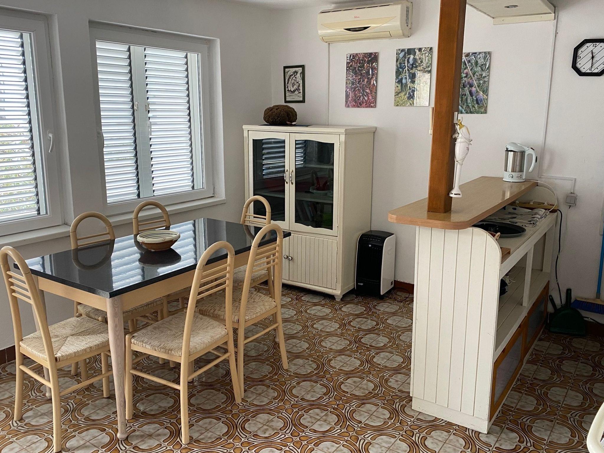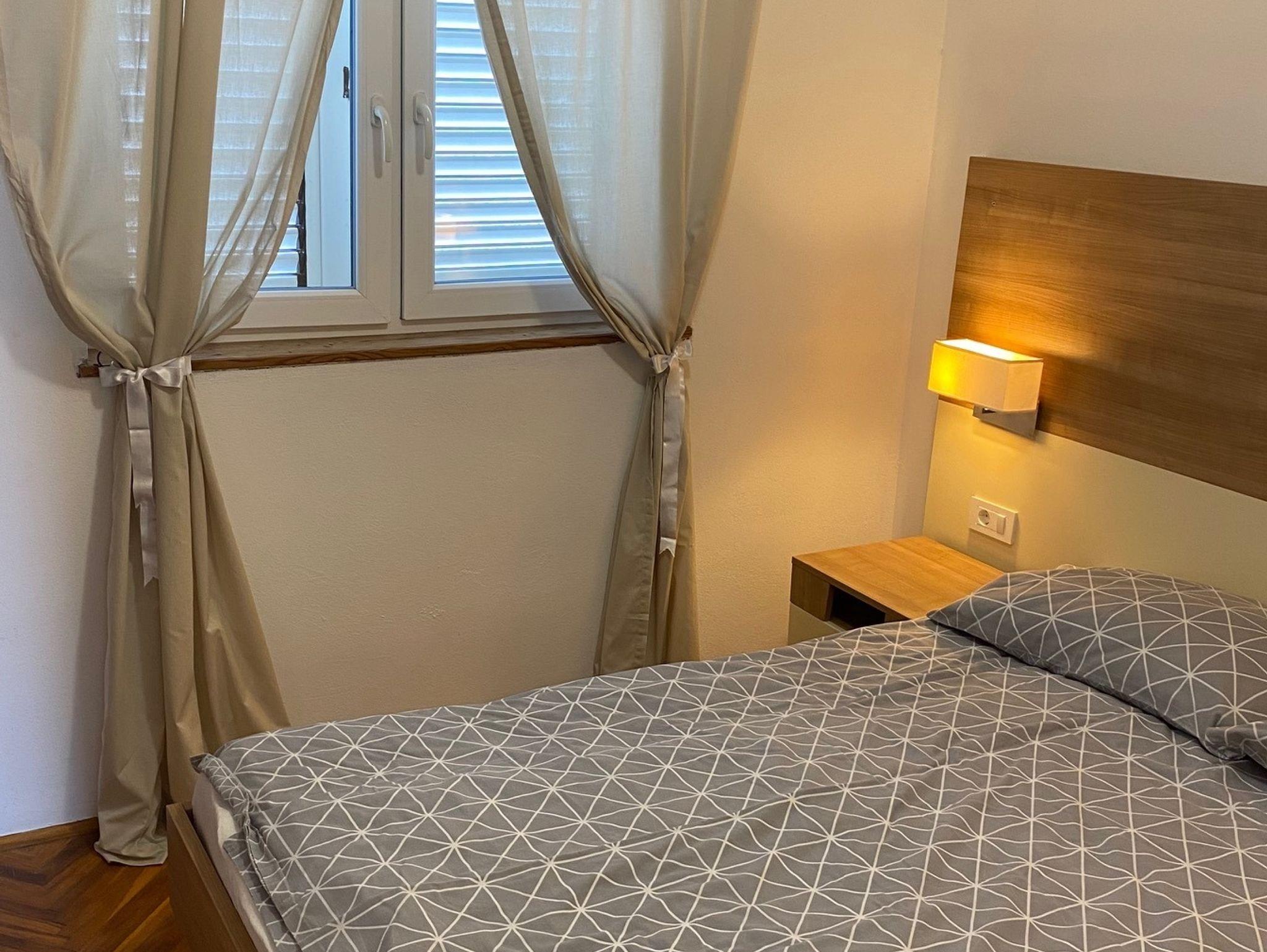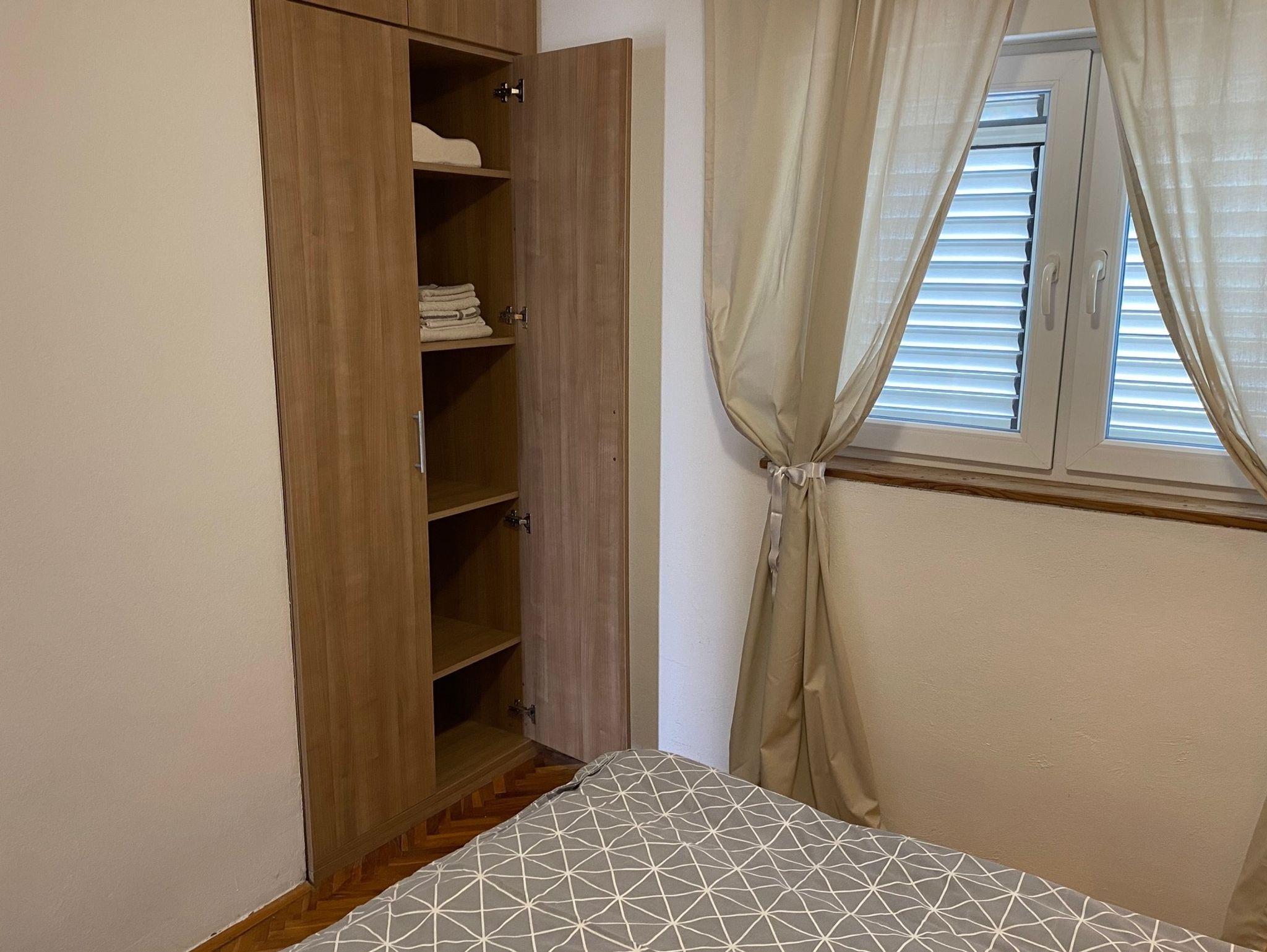 Ferienwohnung bietet Platz für 5 Gäste. Die Betten sind in Schlafzimmern, die es 2 gibt, und in Wohnzimmer, innerhalb einer Gesamtfläche von 62m2, angeordnet. Die Gäste haben eine eigene Terrasse zur Verfügung, auf der sie in warmen Sommernächten genießen können. Das Apartment bietet Meerblick. Für vollen Genuss und Entspannung gibt es einen privaten Grill für Gäste dieser Unterkunft. In der Unterkunftseinheit besteht die Möglichkeit des Mitbringens von Haustieren gegen Aufpreis. IM PREIS INBEGRIFFEN: Kurtaxe, Endreinigung, Klimatisierung, Parkplatz. UNVERBINDLICHE ZUSÄTZLICHE KOSTEN: Haustiere (5,00 € pro Nacht). Die Verfügbarkeit zusätzlicher Dienstleistungen in Ihrem reservierten Termin und die Preise derselben (falls nicht aufgeführt) müssen im Voraus überprüft werden. Zusätzliche Dienstleistungen die in der Zahlungsaufforderung nicht aufgeführt sind werden direkt beim Vermieter bezahlt, angenommen der Gast nutzt auch diese. Ermäßigung auf den Grundpreis: Gratistag 14=13 (bei einem Aufenthalt von 14 Tagen oder mehr erhalten Sie einen Gratistag für den Aufenthalt bis 31.12.26).