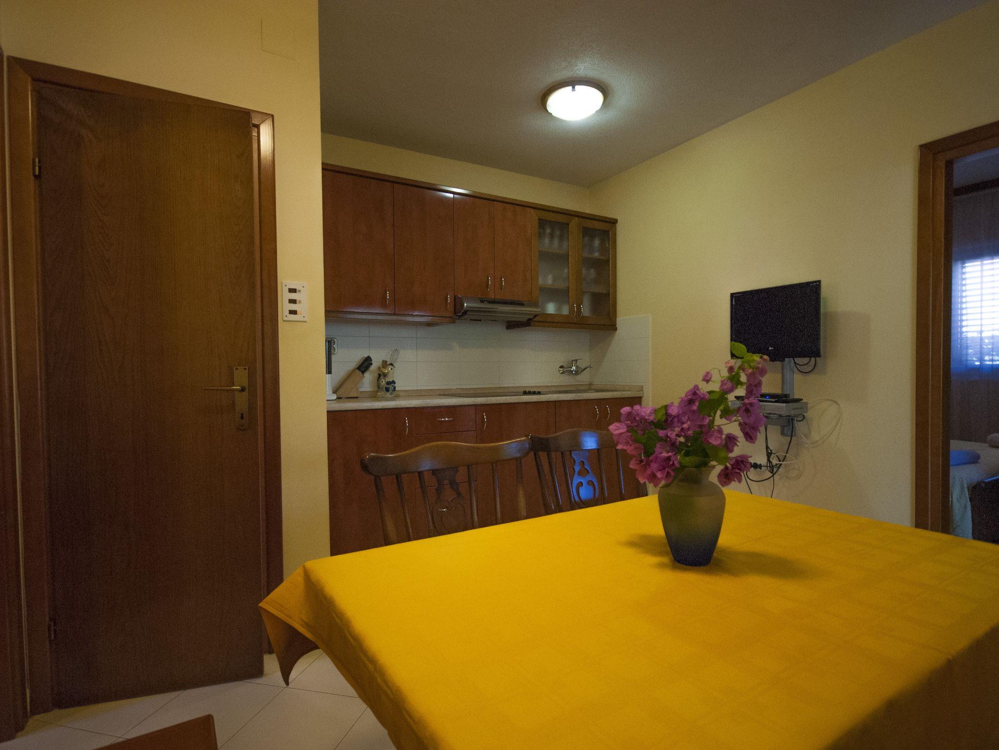 Ferienwohnung bietet Platz für 4 Gäste. Die Betten sind in Schlafzimmern, die es 2 gibt, innerhalb einer Gesamtfläche von 36m2, angeordnet. Die Gäste haben eine eigene Terrasse zur Verfügung, auf der sie in warmen Sommernächten genießen können. Es ist erlaubt, Speisen auf dem Gemeinschafts-Grill vorzubereiten. In der Unterkunftseinheit besteht die Möglichkeit des Mitbringens von Haustieren gegen Aufpreis. IM PREIS INBEGRIFFEN: Kurtaxe, Endreinigung, Klimatisierung, Parkplatz, Internet, Wäschewaschen, Bügeleisen, Bügelbrett, Föhn. VERBINDLICHE ZUSÄTZLICHE KOSTEN: Aufzahlung für Kurzaufenthalte (prozentualer Zuschlag pro Nächtigungsanzahl: 30% - 1, 20% - 2, 10% - 3). UNVERBINDLICHE ZUSÄTZLICHE KOSTEN: Haustiere (5,00 € pro Nacht). Die Verfügbarkeit zusätzlicher Dienstleistungen in Ihrem reservierten Termin und die Preise derselben (falls nicht aufgeführt) müssen im Voraus überprüft werden. Zusätzliche Dienstleistungen die in der Zahlungsaufforderung nicht aufgeführt sind werden direkt beim Vermieter bezahlt, angenommen der Gast nutzt auch diese. Ermäßigung auf den Grundpreis: Gratistag 28=25 (bei einem Aufenthalt von 28 oder mehr Tagen erhalten Sie 3 kostenlose Tage für den Aufenthalt bis 31.12.26).