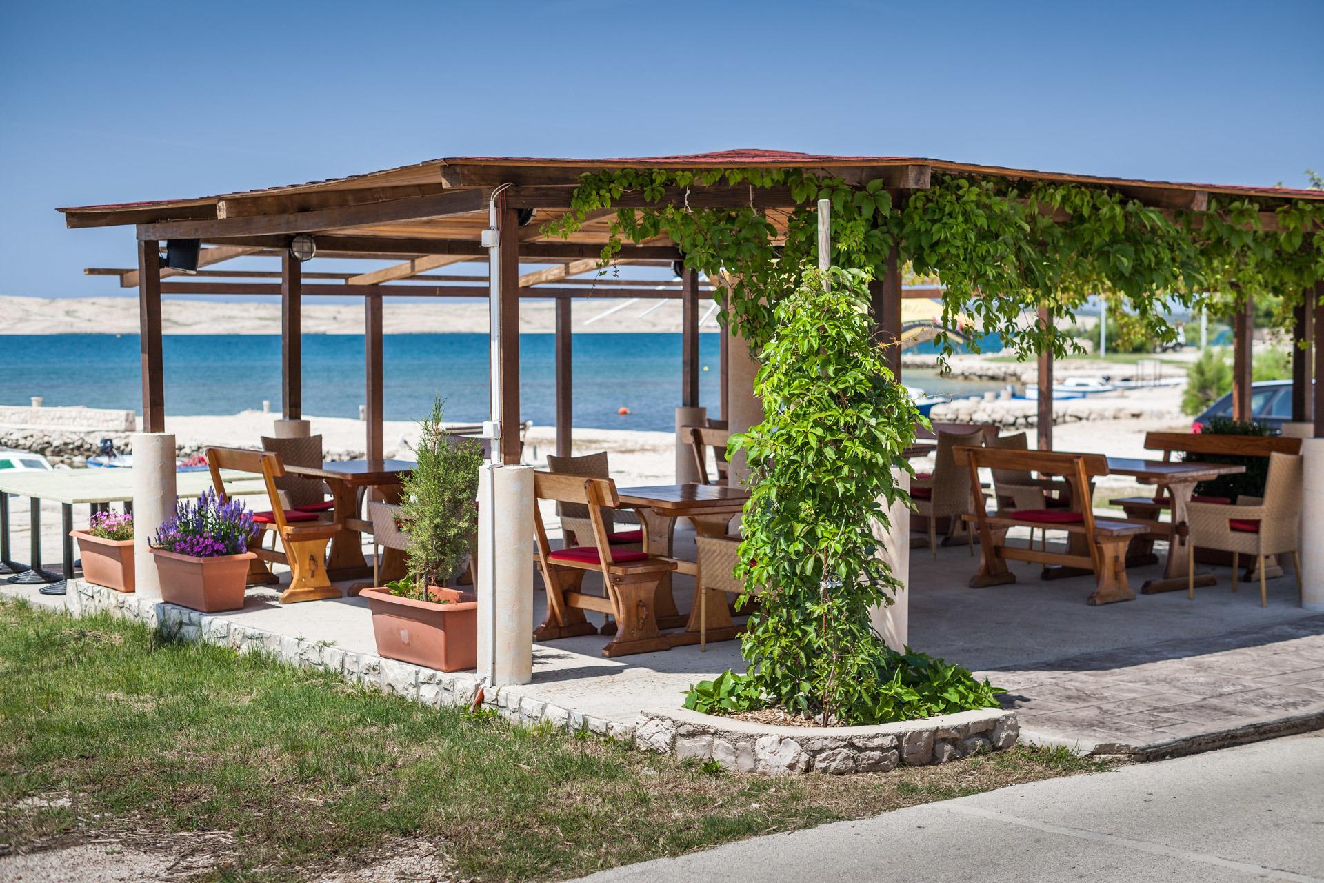 Das nächste Lebensmittelgeschäft sowie ein Bäcker sind ca. 300m entfernt. Der nächstgrößere Ort Novalja ist ca. 6 km entfernt und bietet zahlreiche Einkaufsmöglichkeiten, Restaurants sowie Sport- und Unterhaltungsangebote. Es ist ein idealer Ausgangspunkt für Ausflüge zu den Sehenswürdigkeiten Plitvice See, Krka Wasserfälle, Kornaten oder benachbarte Inseln.