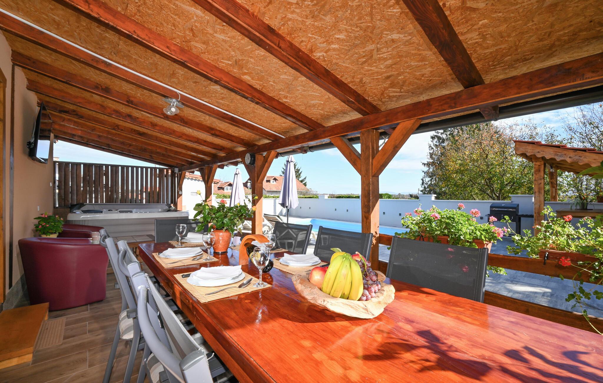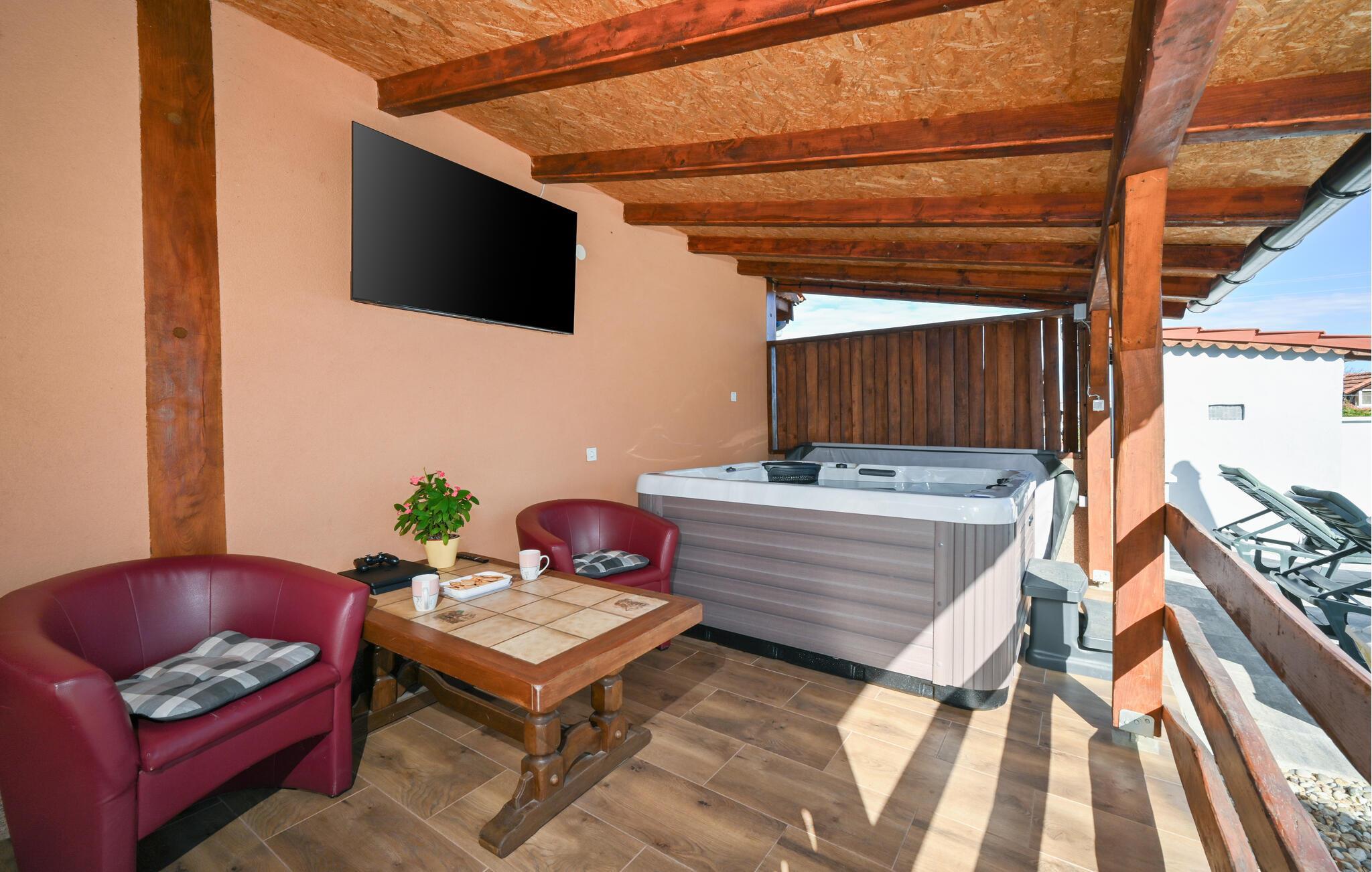 Gå ut i den solfylte hagen og legg hverdagen bak deg. Forfrisk deg i det klare vannet i det private bassenget, eller slapp av i boblebadet under den skyggefulle paviljongen. Slå deg ned på en av solsengene, les en bok eller bare nyt freden og roen og duften av den omkringliggende naturen.
