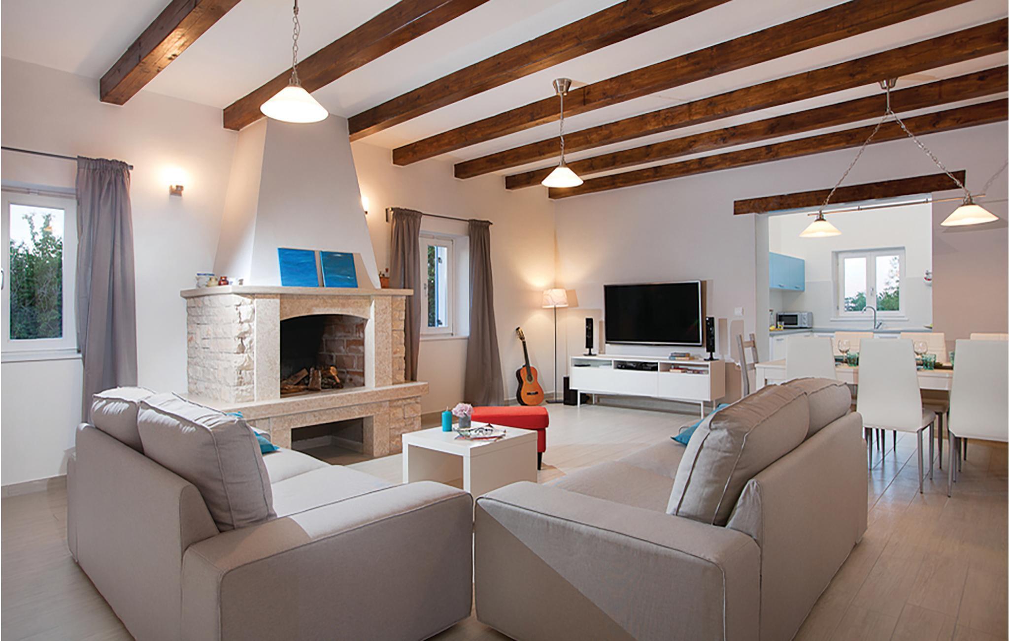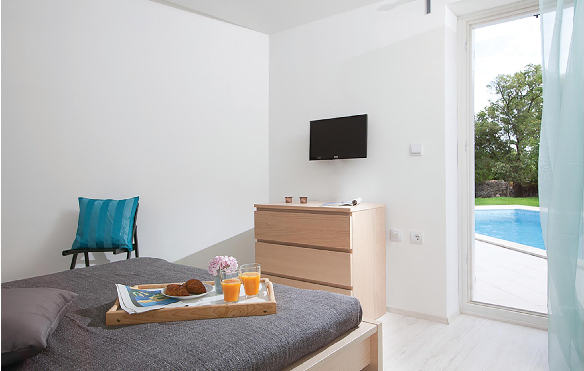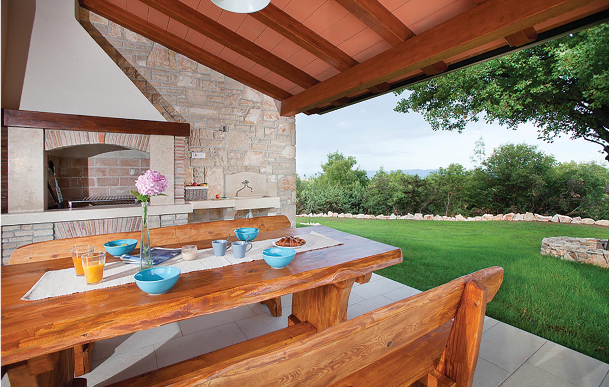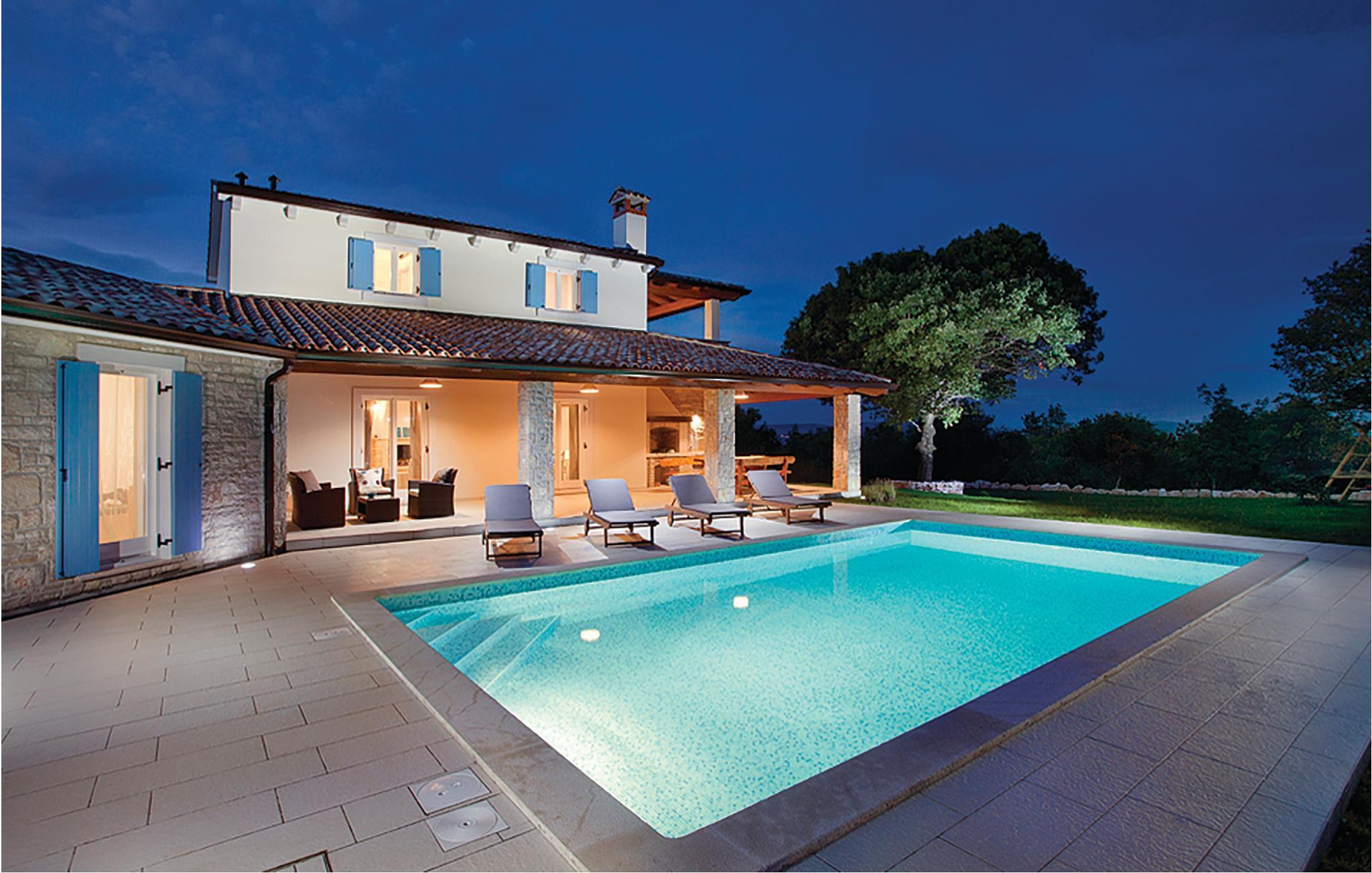 Dette feriehuset ved Middelhavet ligger i nærheten av de vakreste strendene (10 minutters kjøretur). Det er ideelt for å slappe av i de grønne omgivelsene. Fra terrassen i 1. etasje kan du se havet og Kvarnerbukten. Hagen domineres av et vakkert basseng hvor du kan slappe av i en intim atmosfære. På terrassen gir en grill og biljardbordet variasjon. Bortsett fra den vakre stuen med peis, er det to soverom med bad og et ekstra toalett i første etasje. Ovenpå er det to soverom med bad og terrasse. Huset har aircondition, utstyrt med gulvvarme og hvert soverom har egen TV. På omtrent 20 minutter kan du gå til Labin, hvor det er mange kulturelle arrangementer om sommeren. Et multifunksjonelt treningsutstyr er også tilgjengelig.