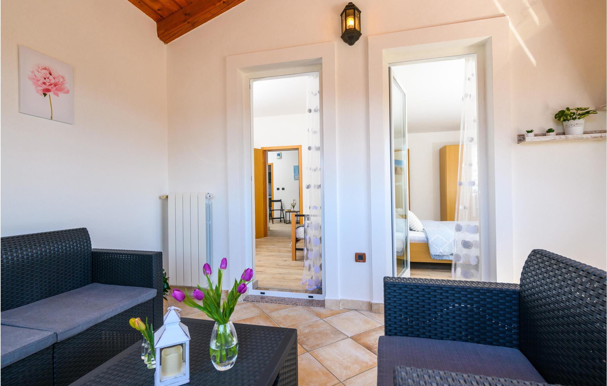 Dette vakre, komfortable feriehuset med svømmebasseng og en hage med palmer ligger i den lille landsbyen Kapelica, som ligger i nærheten av Labin. I første etasje er det et lite kjøkken og en romslig stue med åpen peis. Atskilt med en skyvedør er det også et soverom. I øverste etasje er det 4 soverom, kjøkken, spisestue og stue. To soverom har utgang til verandaen. Til siden av huset er et mindre hus, som eieren bruker fra tid til annen. Den nærmeste stranden i Rabac ligger 10 minutters kjøretur unna. Ytterligere fasiliteter beriker oppholdet for store og små. Fra Rabac kan du ta båtturer til Kvarner-øyene eller utforske gamlebyen i Labin.