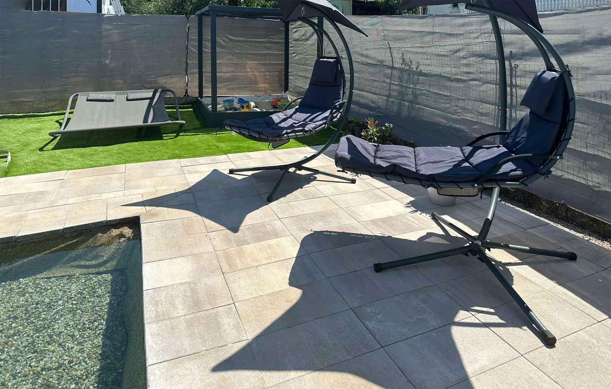 Nyt luksusen av et boblebad på den overbygde terrassen. Her kan du slappe av etter utflukter eller fotturer og legge planer for de neste dagene. Det er også felles fasiliteter for barn på fellesområdet, slik at dere kan løpe rundt og ha det gøy.