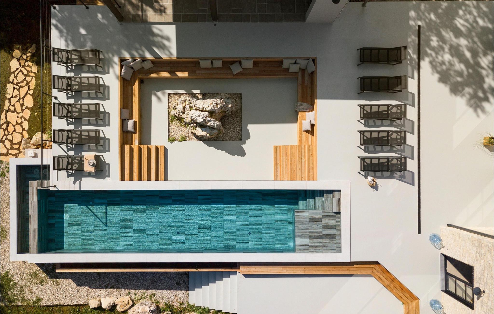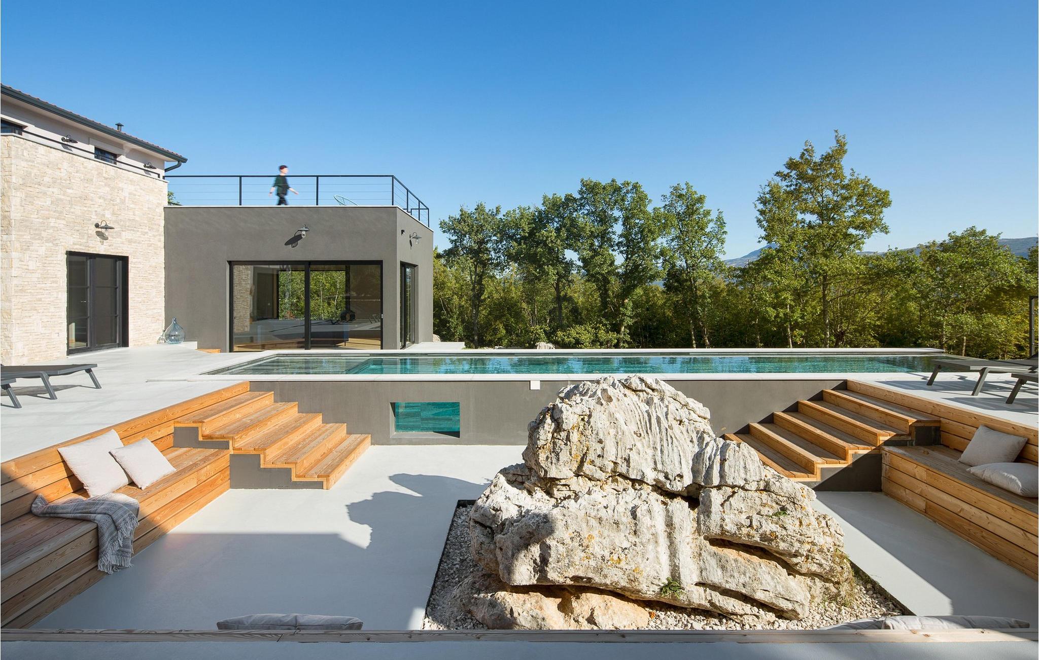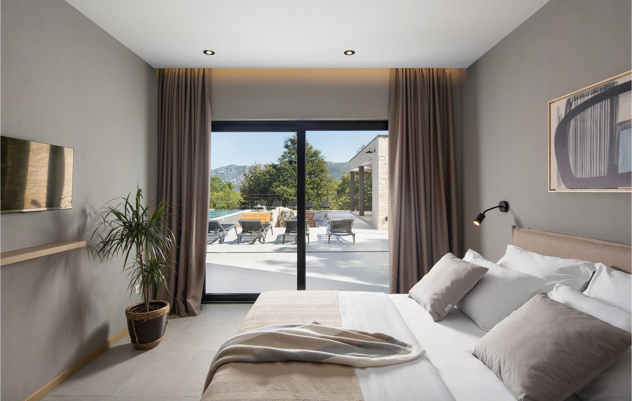 Den luksuriøse Villa Mons Caldera vil glede deg med sin moderne arkitektoniske stil, moderne eksteriør og vakre interiør. Det ligger i Kran i Istria, som har en rik historisk og kulturell arv som går tilbake til 1000-tallet. Villa Mons Caldera tilbyr deg mange muligheter for moro, men også muligheten til å prøve ut kulturelle eller sportslige aktiviteter som du kan finne i umiddelbar nærhet av Kran. Villa Mons Caldera har 2700 m2 plass, har plass til maksimalt 10 personer og garanterer deg en fantastisk ferie du alltid har drømt om. Villaen har fem soverom, hvorav to ligger i første etasje, ett med eget bad med badekar og det andre med bad med dusj. De resterende 3 soverommene ligger i øverste etasje og har eget bad med dusj. Ett av de nevnte rommene har 2 enkeltsenger, mens de andre rommene har dobbeltsenger. Villaen har 1 separat toalett, og i et separat rom er det vaskemaskin og strykejern. I første etasje av villaen, i tillegg til soverommene nevnt ovenfor, er det en stue med 2 sofaer, bord, TV og peis, hvor du kan nyte en avslappende panoramautsikt over den uberørte naturen som omgir villaen. Det moderne utstyrte kjøkkenet og spisestuen med plass til 10 personer er det ideelle stedet for å prøve ut dine matlagingsevner. Villaen er fullt utstyrt og har alle nødvendige fasiliteter som kjøkkenutstyr, en utendørs elektrisk grill, Wi-Fi, en utendørsterrasse og et luksuriøst basseng, slik at du kan slappe av enten du reiser med en gruppe venner eller sammen med din egen familie. På terrassen kan du også svømme i det forfriskende bassenget på 40 m² eller sole deg på 10 solsenger og lese favorittboken din. Ved bassenget er det et lekeområde, og takket være den åpne hagen kan barna ha det gøy i det grønne området uten bekymringer. Et utendørs spisebord med plass til 10 gjester, ved siden av et sittegruppe med salongbord på den ene siden og en utendørs grill på den andre, er et flott sted og en mulighet til å nyte kvelden helt privat. Det er 4 private parkeringsplasser i hagen. For gjester som allerede har besøkt Kran, er det et sted som utstråler en innbydende og vakker natur og fremfor alt en ro som er vanskelig å finne i disse dager. Smak på deilige retter som vil vekke alle sansene dine, utforsk de omkringliggende istriske landsbyene, lei sykler eller ta del i vin- og olivenoljeturer. Her kan du også leie båt med skipper, besøke vakre strender hvor du kan dykke eller fiske, og for de som er ute etter en adrenalinferie, finnes det fotturer og vannsport. Crane er definitivt et sted du alltid vil ønske å komme tilbake til, og det er også den perfekte muligheten til å skape minner som du vil ta med deg videre! * Det er ikke tillatt å arrangere fester i villaen, men personer over 28 år har lov til å bo her!
