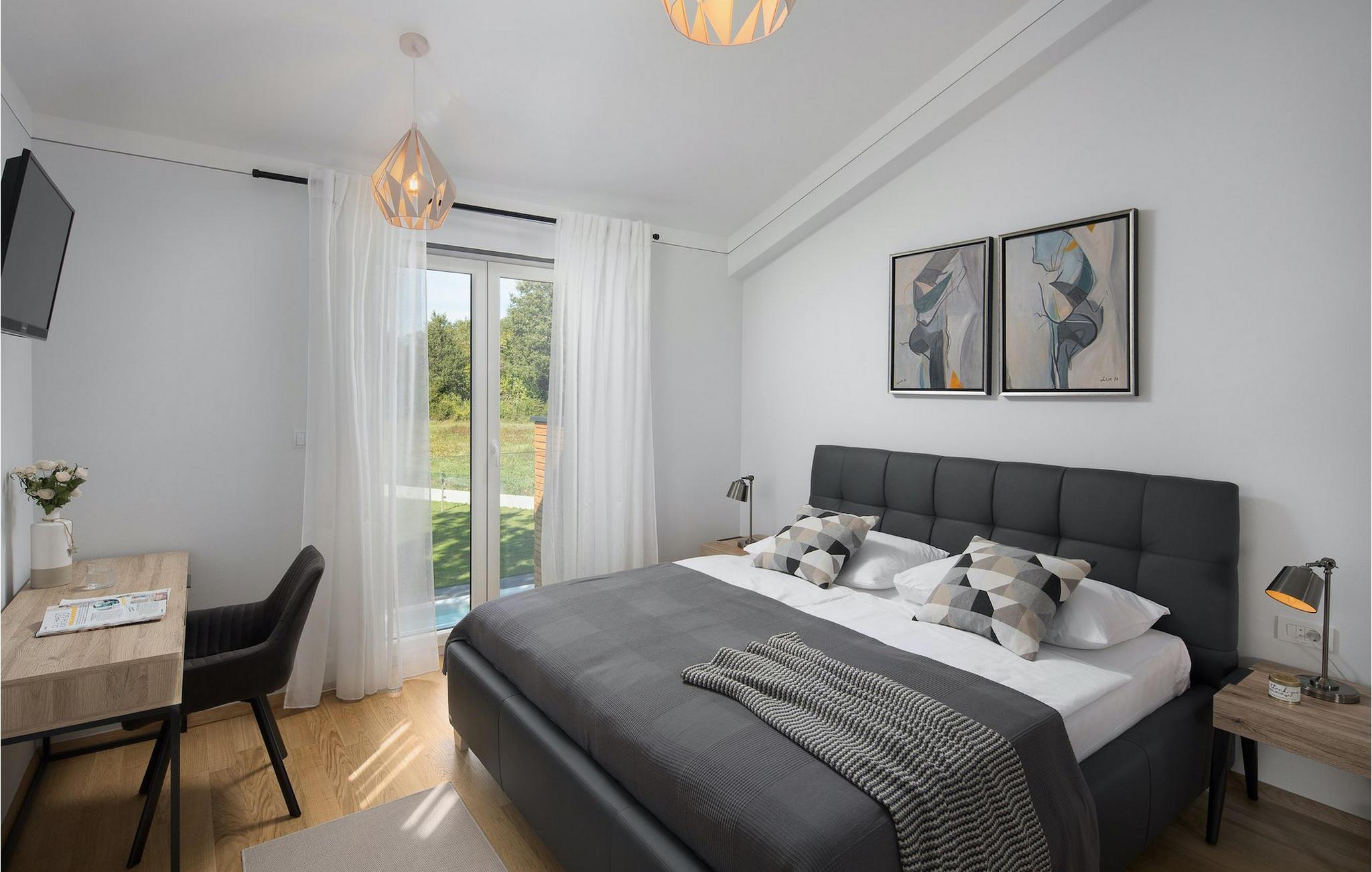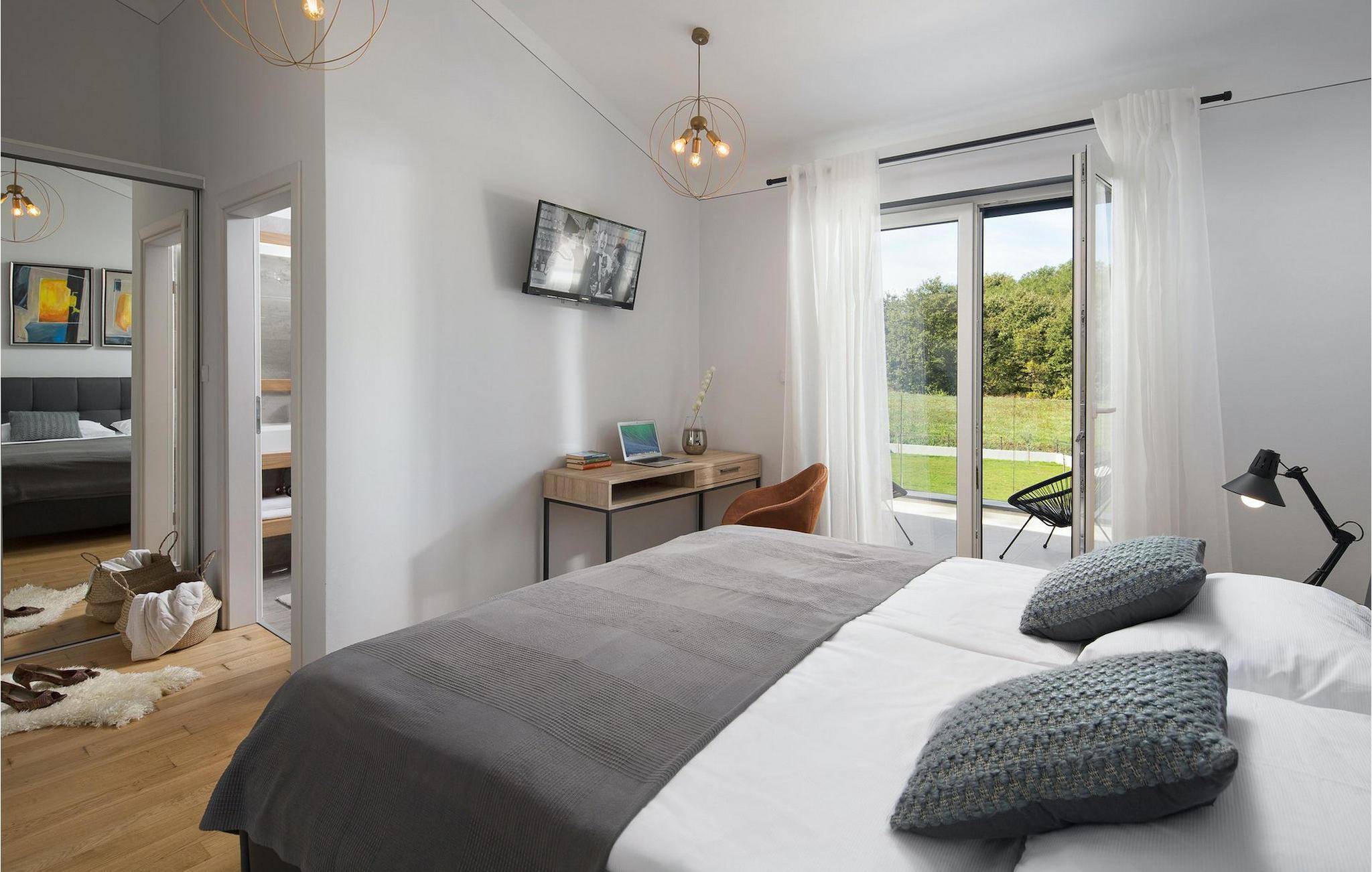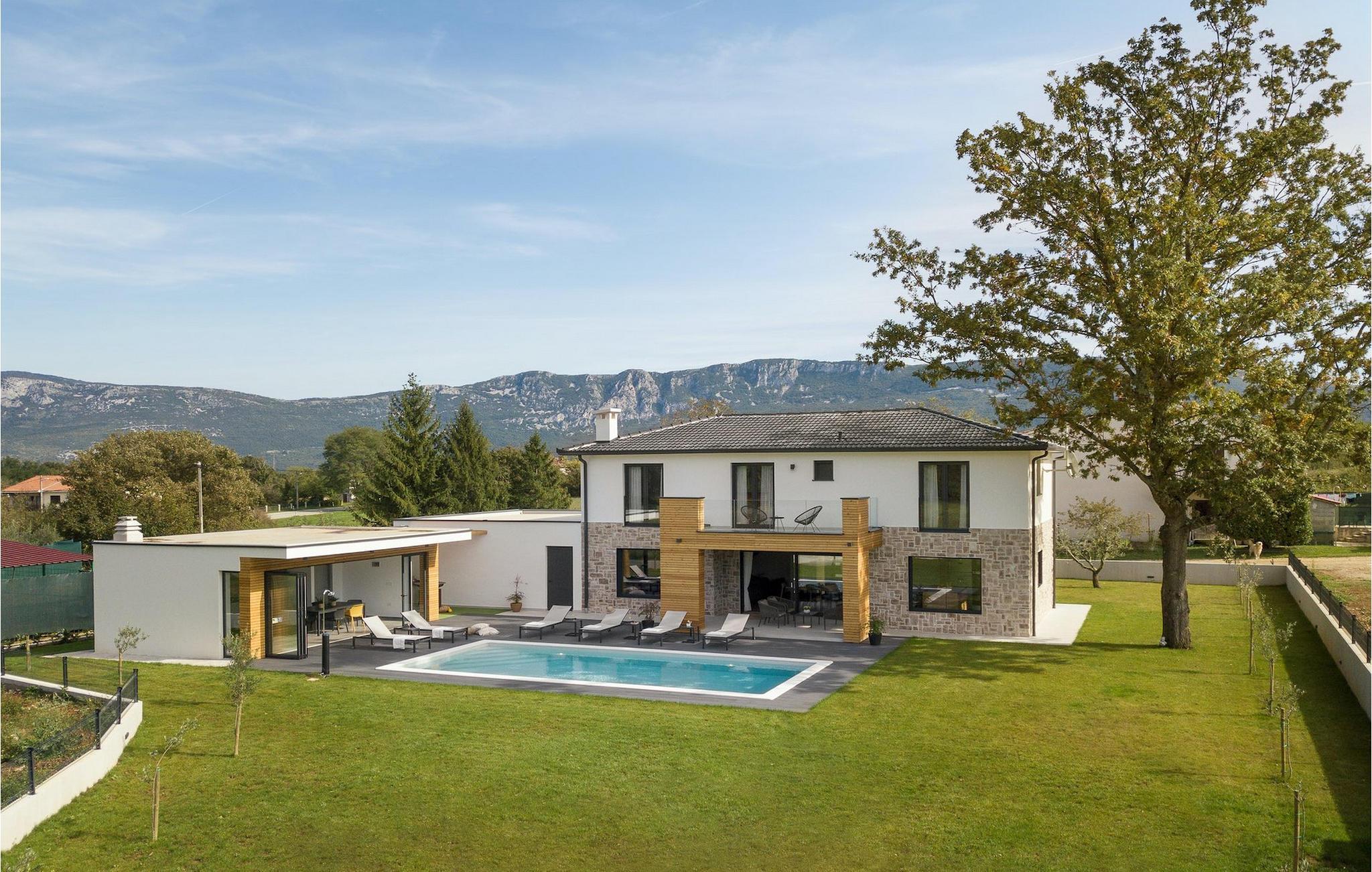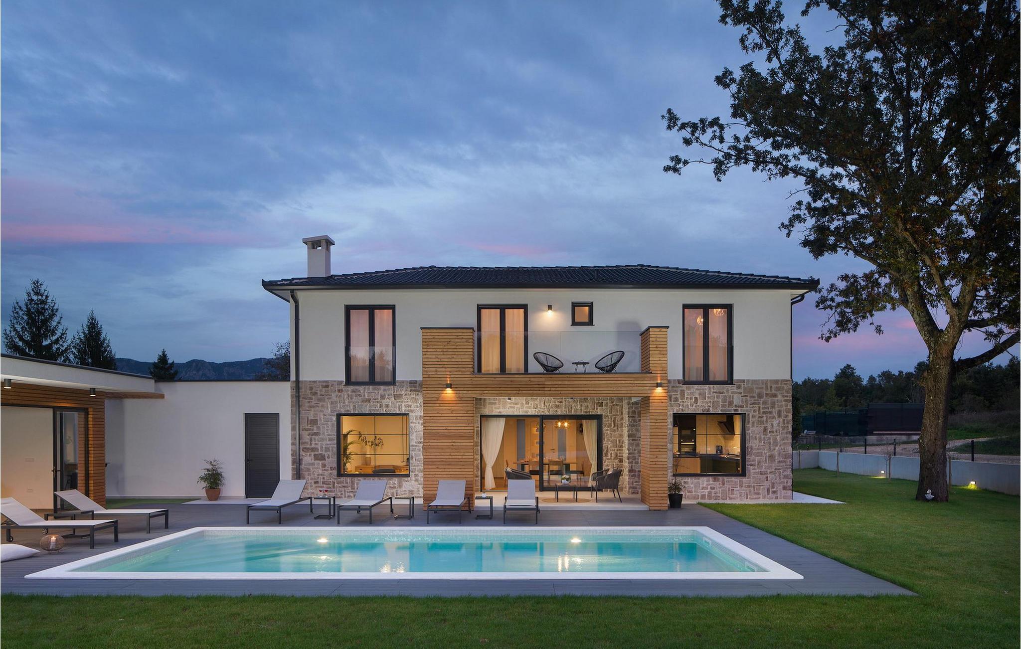 Drømmer du om en avslappende ferie i en vakker, moderne villa med privat basseng i Istria? Villa Analucija II venter på deg! I villaens første etasje ligger fellesarealene hvor dere kan samles og tilbringe kvalitetstid sammen, mens de 3 soverommene for opptil 6 personer ligger i andre etasje. I underetasjen ligger det romslige, stilfullt innredede rommet som forbinder stue og spisestue med det fullt utstyrte kjøkkenet. Herfra kan du beundre det innbydende private bassenget, og rett utenfor ligger den overbygde verandaen med hagemøbler, perfekt for frokost. På den separate eiendommen ved siden av villaen ligger det vakre, velutstyrte sommerkjøkkenet med underholdningsrom. Her kan du slappe av ved bassenget eller lage grillmat til venner og familie. I første etasje finner du komfortable soverom i lyse farger, med moderne malerier som vekker rommet til live. Alle soverommene har TV, klimaanlegg og eget bad. Ett av rommene har også utgang til en stor balkong. Den første stranden ligger bare 7 km unna, men det oppvarmede bassenget byr også på forfriskninger mens du slapper av og soler deg på de mange solsengene.Villa Analucija II ligger i landsbyen Krsan midt i Istrias vakre, kuperte landskap og uberørte natur, ideelt for fotturer eller sykkelturer. Oppdag innlandet og smak på istriske spesialiteter som trøfler og proscuitto, eller prøv et glass istrisk malvazija på en tur langs en av vinstiene. I nærheten ligger små, men sjarmerende byer som Labin og Rabac. Den gamle byen Labin ligger på østsiden av den istriske halvøya. Her finner du en rekke atelierer, og det er et ideelt sted å nyte kunsten for hvert skritt du tar gjennom byen. Rabac, en tidligere fiskerlandsby, byr på gode strender og restauranter. I omgivelsene i Labin-Rabac kan du spille tennis, minigolf, sandvolleyball, dykke og drive med ulike vannsportaktiviteter, og den første stranden ligger bare 7 km fra villaen (i Plomin).