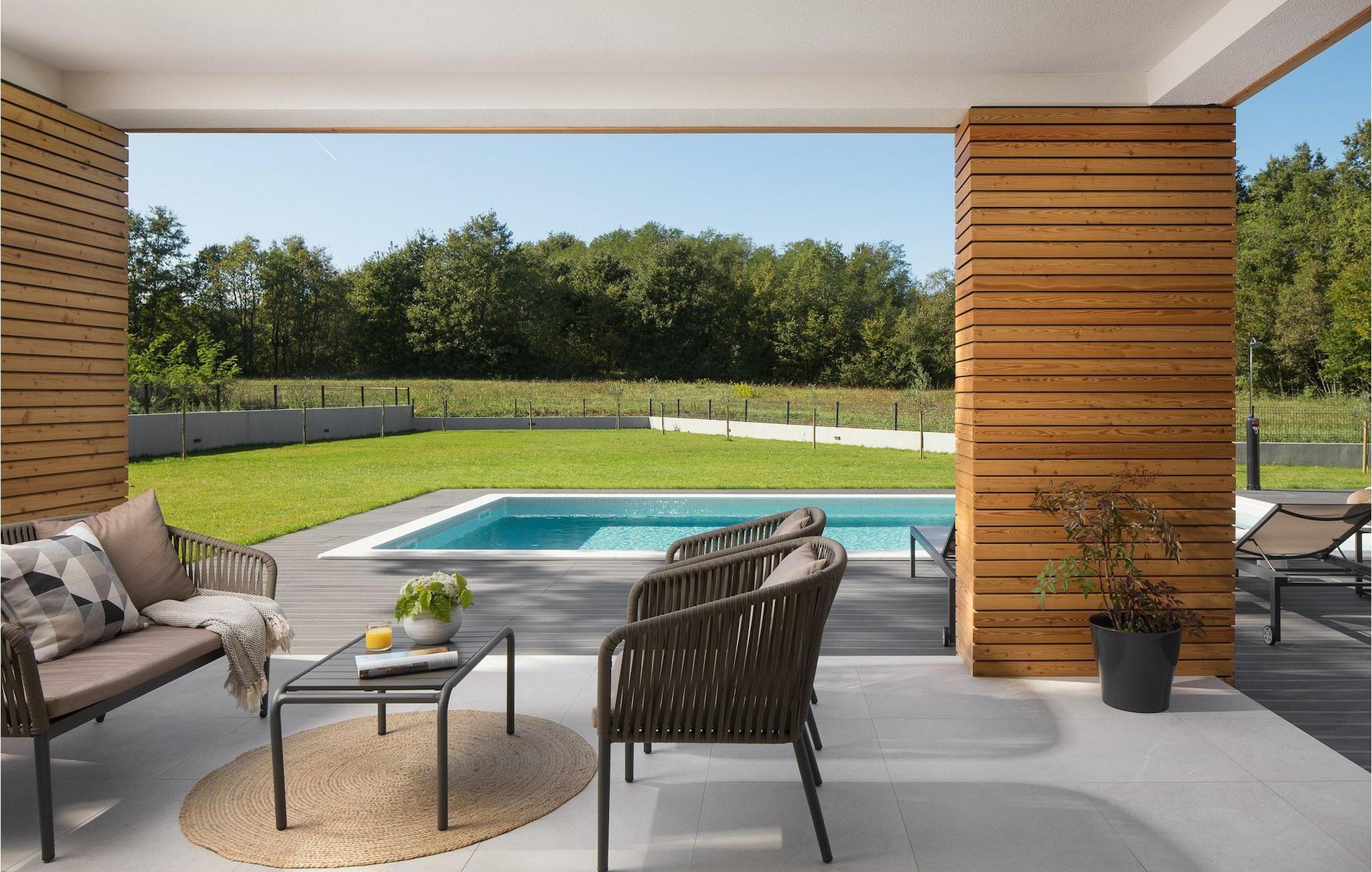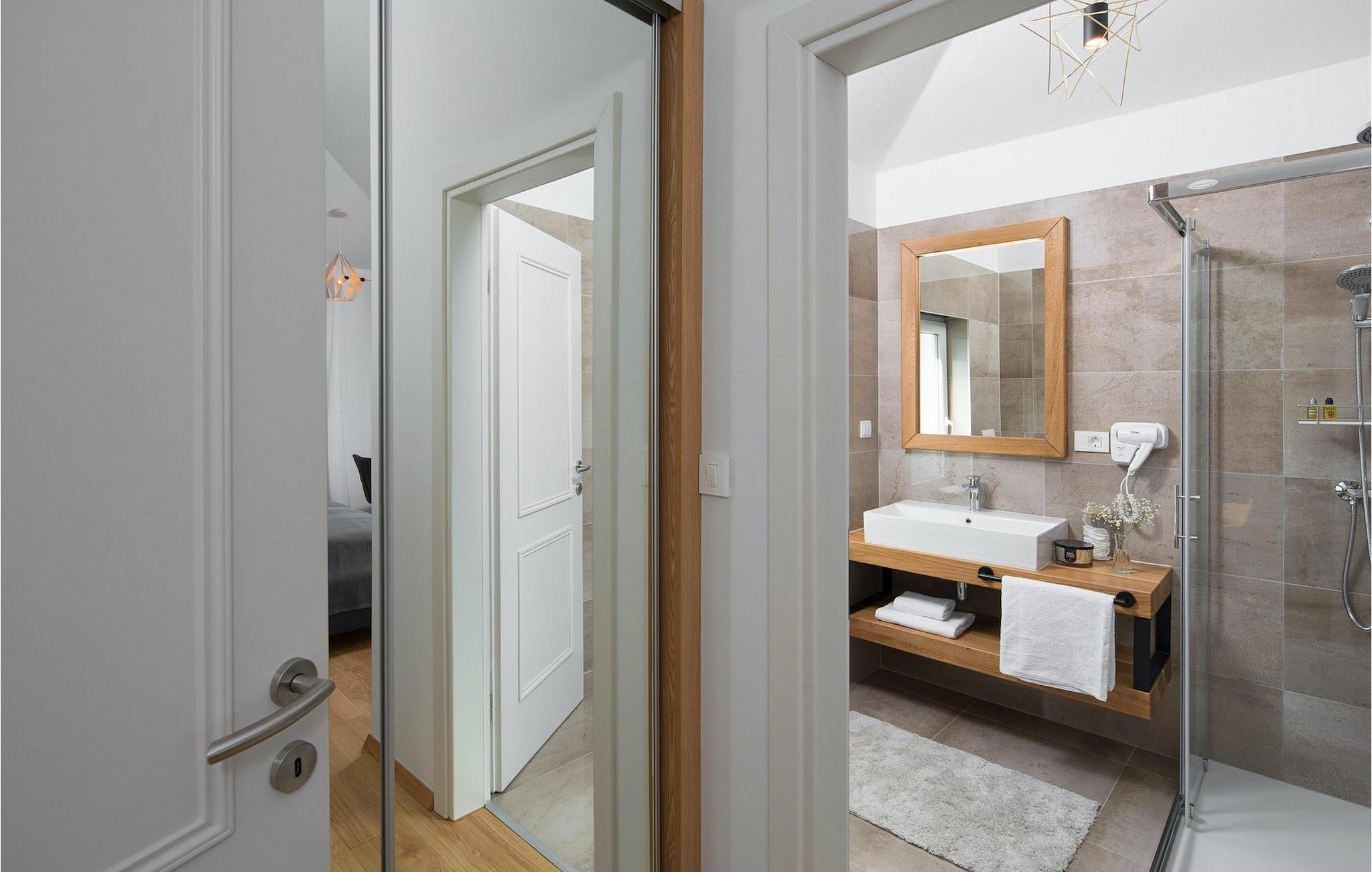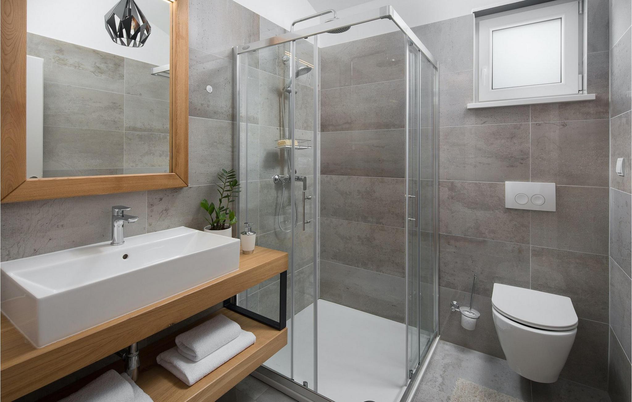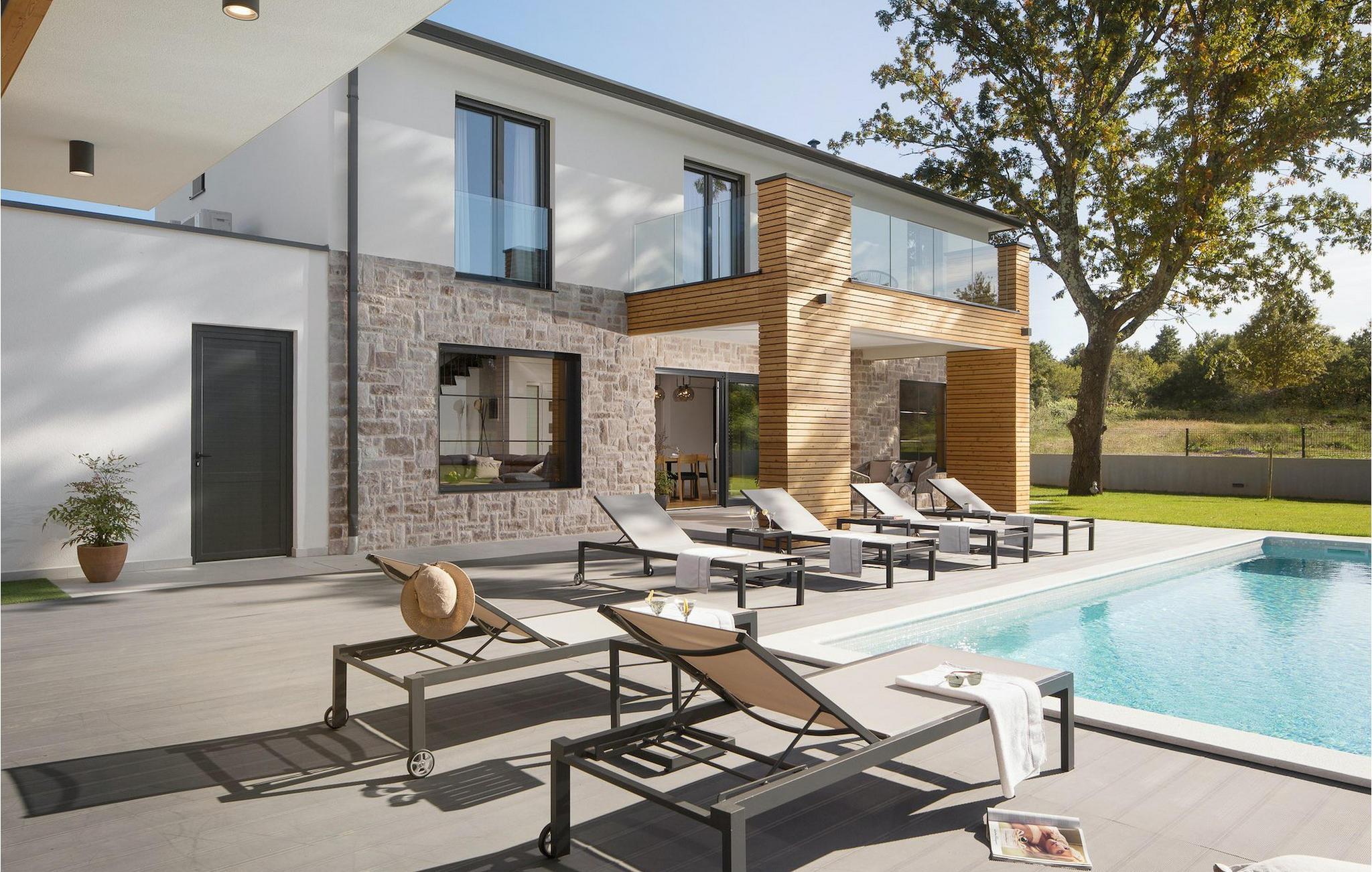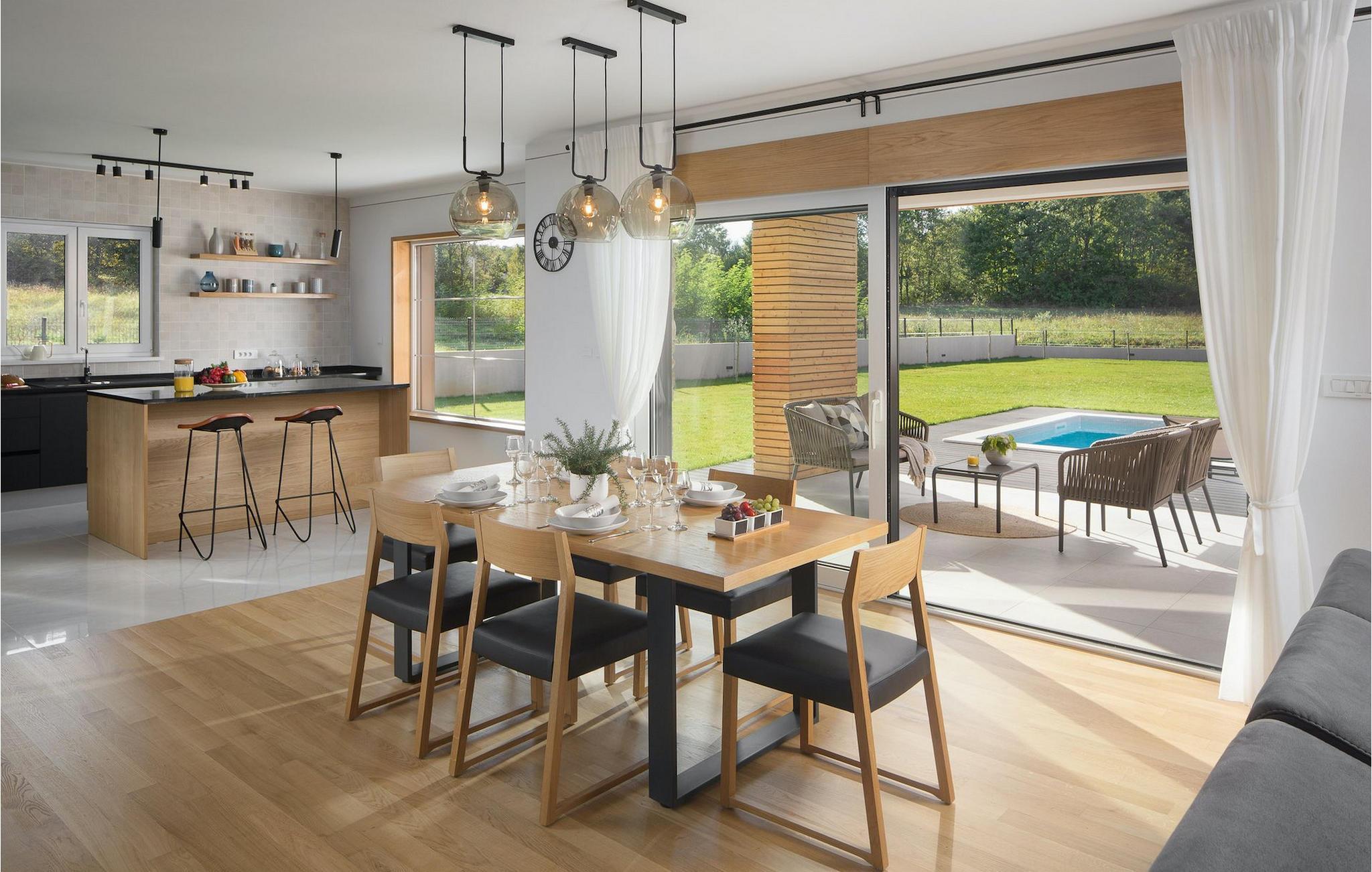 Drømmer du om en avslappende ferie i en vakker, moderne villa med privat basseng i Istria? Villa Analucija II venter på deg! I villaens første etasje ligger fellesarealene hvor dere kan samles og tilbringe kvalitetstid sammen, mens de 3 soverommene for opptil 6 personer ligger i andre etasje. I underetasjen ligger det romslige, stilfullt innredede rommet som forbinder stue og spisestue med det fullt utstyrte kjøkkenet. Herfra kan du beundre det innbydende private bassenget, og rett utenfor ligger den overbygde verandaen med hagemøbler, perfekt for frokost. På den separate eiendommen ved siden av villaen ligger det vakre, velutstyrte sommerkjøkkenet med underholdningsrom. Her kan du slappe av ved bassenget eller lage grillmat til venner og familie. I første etasje finner du komfortable soverom i lyse farger, med moderne malerier som vekker rommet til live. Alle soverommene har TV, klimaanlegg og eget bad. Ett av rommene har også utgang til en stor balkong. Den første stranden ligger bare 7 km unna, men det oppvarmede bassenget byr også på forfriskninger mens du slapper av og soler deg på de mange solsengene.Villa Analucija II ligger i landsbyen Krsan midt i Istrias vakre, kuperte landskap og uberørte natur, ideelt for fotturer eller sykkelturer. Oppdag innlandet og smak på istriske spesialiteter som trøfler og proscuitto, eller prøv et glass istrisk malvazija på en tur langs en av vinstiene. I nærheten ligger små, men sjarmerende byer som Labin og Rabac. Den gamle byen Labin ligger på østsiden av den istriske halvøya. Her finner du en rekke atelierer, og det er et ideelt sted å nyte kunsten for hvert skritt du tar gjennom byen. Rabac, en tidligere fiskerlandsby, byr på gode strender og restauranter. I omgivelsene i Labin-Rabac kan du spille tennis, minigolf, sandvolleyball, dykke og drive med ulike vannsportaktiviteter, og den første stranden ligger bare 7 km fra villaen (i Plomin).