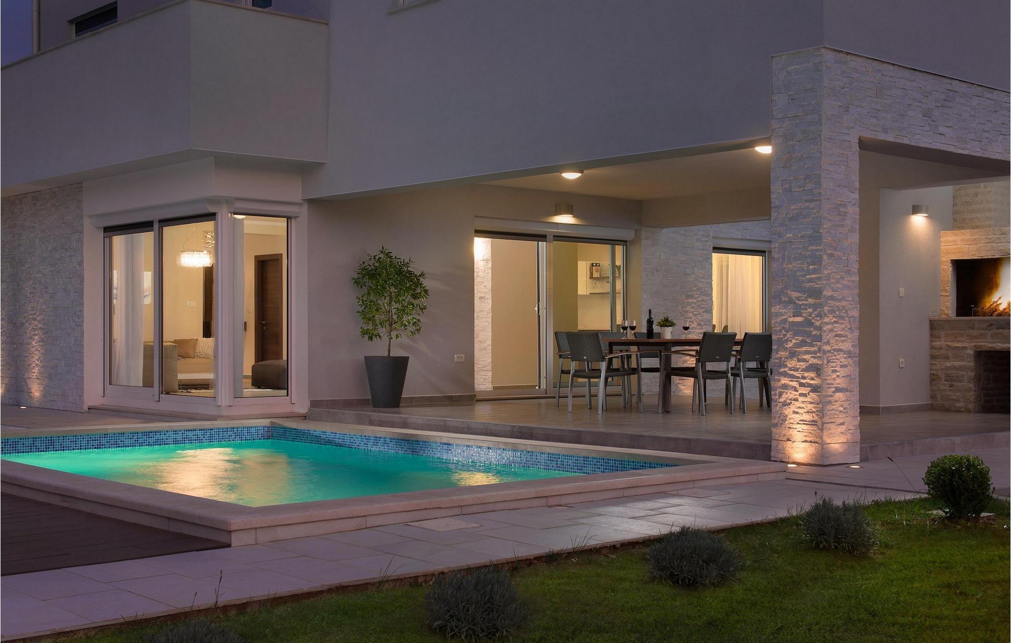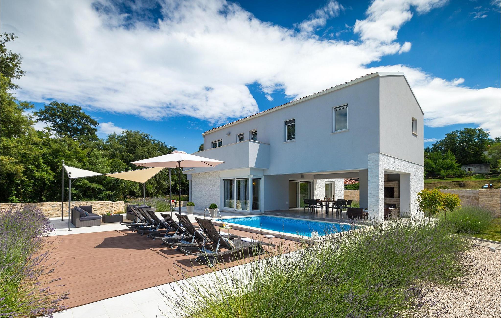 Vakre Villa Tireli er synonymt med luksus! Denne koselige og romslige villaen har totalt 4 soverom og plass til opptil 8 personer. Alle rommene i villaen er lyse og gjennomstrømmet av lys, innredet i en minimalistisk stil, men fullt utstyrt slik at du ikke skal mangle noe i ferien. I første etasje finner du kjøkkenet med spiseplass og stuen med direkte utgang til terrassen. I første etasje finner du 4 soverom, alle med dobbeltseng og eget bad. Utenfor kan du nyte freden og roen på landsbygda mens du slapper av ved bassenget. Bordtennis, bordfotball og badstue står til din disposisjon for å gjøre det hele litt mer luksuriøst.denne eiendommen ligger i en liten landsby i den østlige delen av Istria. Hele Regon Istria er lett tilgjengelig og har et utmerket veinett med lite trafikk. Du vil utvilsomt glede deg over at den nærmeste stranden ligger bare 5 kilometer unna, ettersom den istriske halvøya "Terra Magic" ligger ved det varme Adriaterhavet. Kysten med de store turistsentrene Labin og Rabac samt flyplassen i Pula ligger bare noen få minutter unna med bil. Labin, som ligger på en høyde over den magiske Kvarnerkysten, er det historiske og administrative sentrum i det østlige Istria. Området er et paradis for kunst- og historieelskere med sin rike kultur- og arkitekturarv. I de bratte, svingete gatene i den gamle bykjernen finner du velbevarte historiske palasser, mange kunstgallerier og atelierer, samt ulike jazz- og klassiske musikkfestivaler i sommermånedene. Byen har noen utmerkede fiskerestauranter med deilige lokale råvarer og koselige kafeer der du kan nyte den avslappede atmosfæren. Kystbyen Labin er Rabac, en tidligere fiskerlandsby som i dag er et populært turistmål omgitt av en rekke vakre rullesteinsstrender.