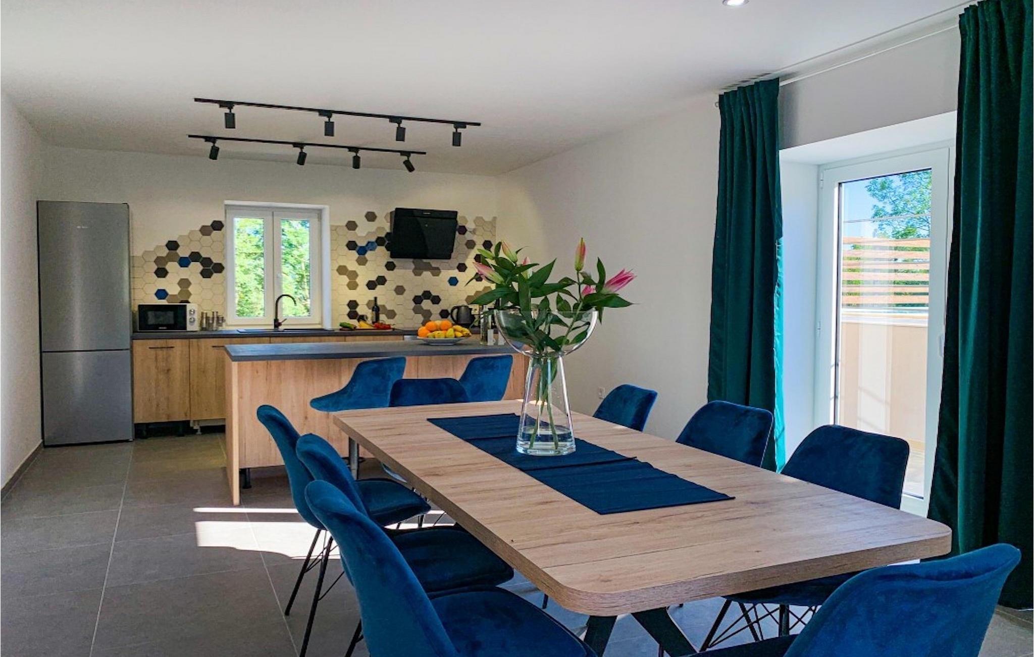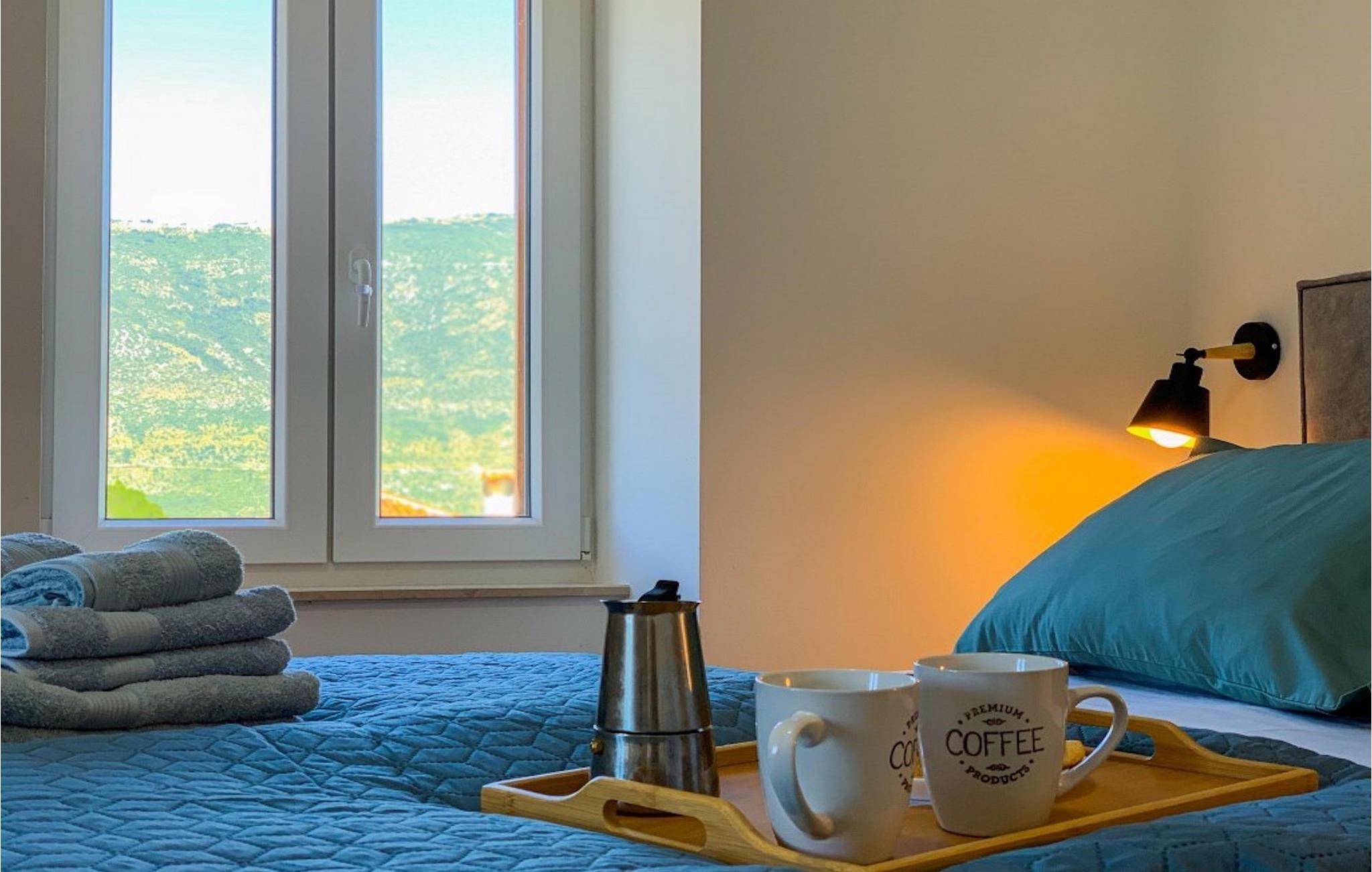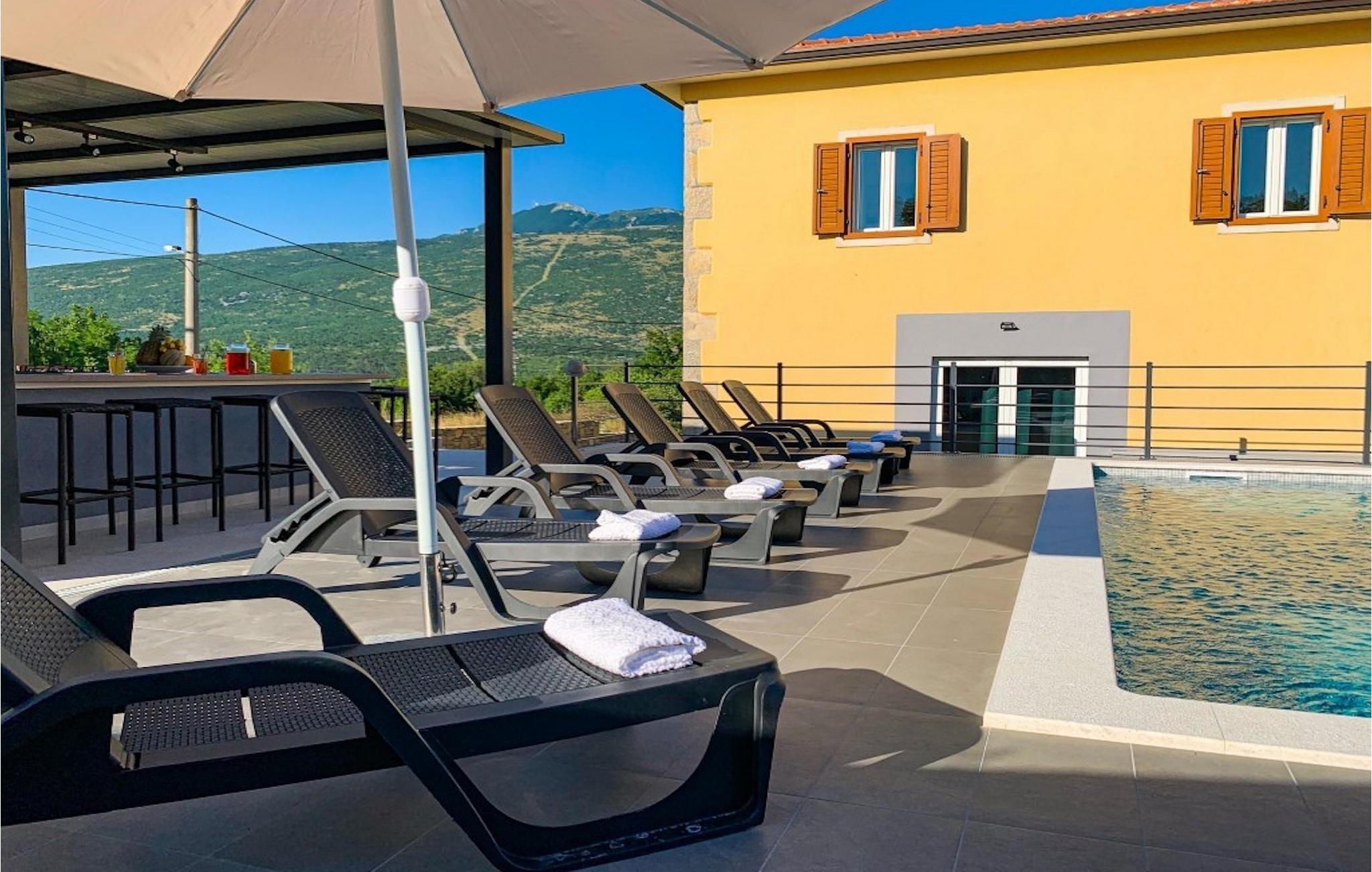Det beste med denne villaen er uten tvil uteområdet med det flotte bassenget. Her finner du også et velutstyrt utekjøkken med komfyr, kjøleskap, kullgrill og spiseplass til 8 personer. Forfrisk deg i bassenget, slapp av på en av solsengene under parasollen, nyt en kjølig drink og få mest mulig ut av din velfortjente ferieVilla Telma ligger i den lille landsbyen Kostrcani i den østlige delen av Istria-halvøya. De populære turistmålene Labin og Rabac ligger bare en kort kjøretur unna. Den sjarmerende fjellbyen Labin innbyr til en spasertur i de vakre brosteinsbelagte gatene i sentrum og en deilig middag på en av de mange restaurantene. Rabac er en liten by som først og fremst er kjent for sine vakre strender, og er et must for alle ivrige strandgjester. De som er ute etter fred og ro, kan glede seg over at området rundt villaen er perfekt for turer i naturen. Hvis du ønsker å være aktiv på ferien, finnes det mange sykkelstier i nærheten. Denne delen av Istria gir deg muligheten til å nyte fjellskogsnaturen med utsikt over det blå Adriaterhavet.