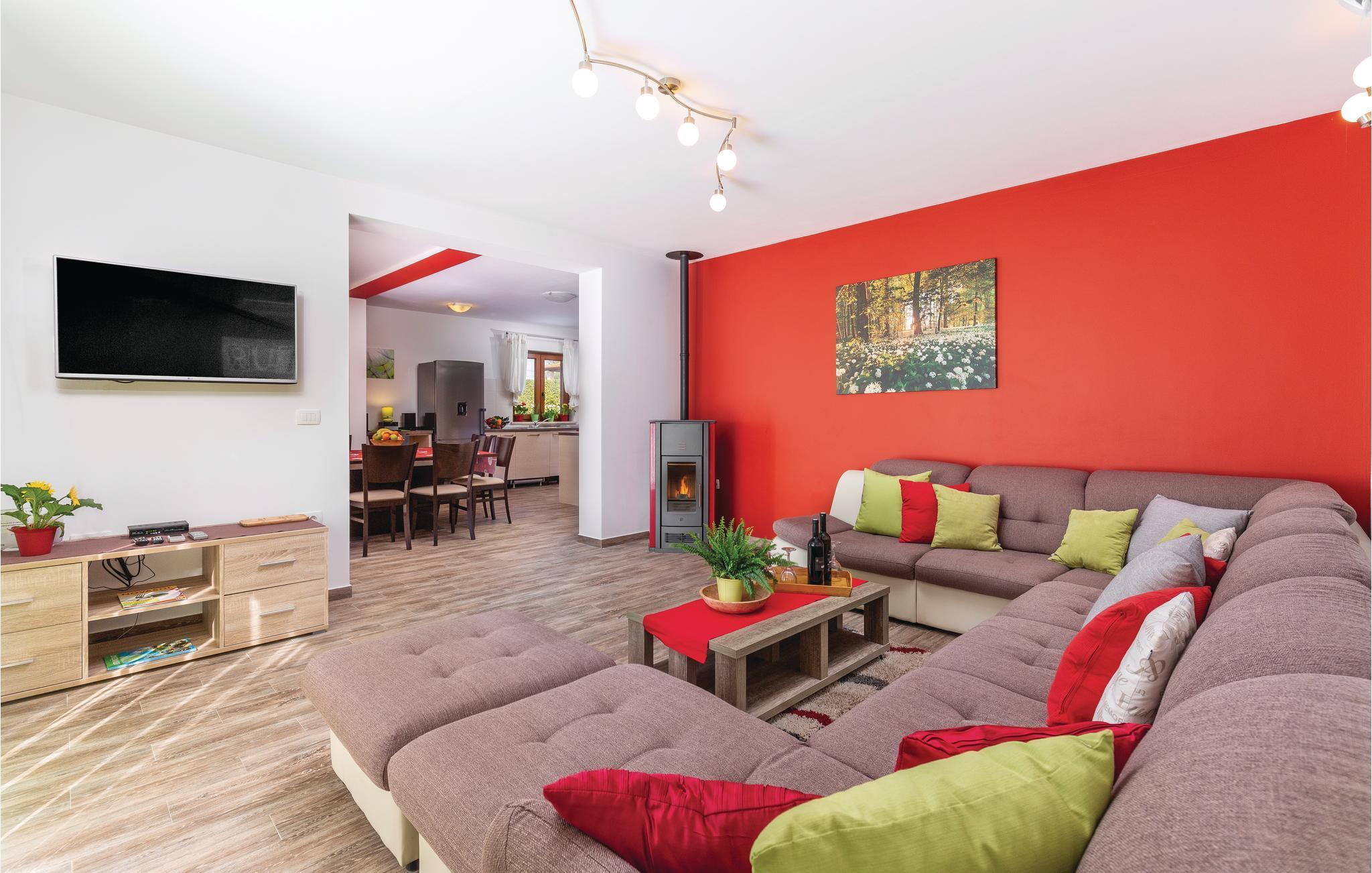 Nydelig feriehus på en stor tomt som deles med hus CIK656. Videre deler husene innkjørsel, basketballbane samt en plen for badminton, volleyball og fotball og en lekeplass for barn. Men de er tilstrekkelig langt fra hverandre, og en grønn hekk danner også et privat område. Dette gjør innkvarteringen ideell for oppholdet til to større familier eller vennegrupper. Interiøret er smakfullt innredet i moderne stil. Hyggelige øyeblikk av avslapning tilbys av en vakker overbygd terrasse og et basseng med motstrømsystem. I første etasje er det et soverom med bad, badstue og egen liten terrasse med egen inngang. Besøk Labin og i Rabac de vakreste strendene i Istria.