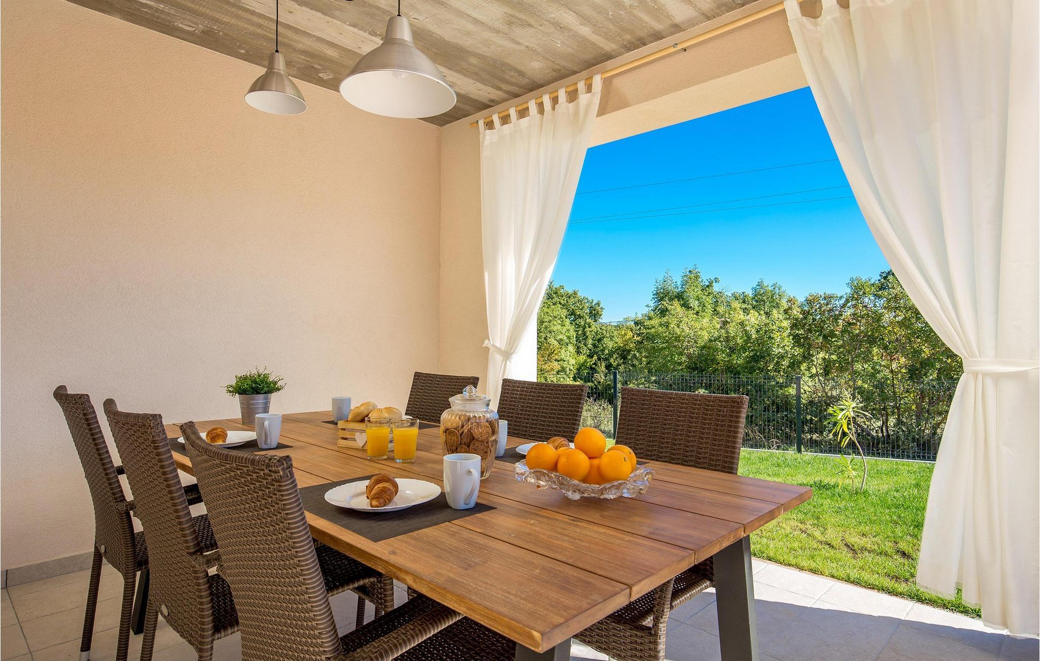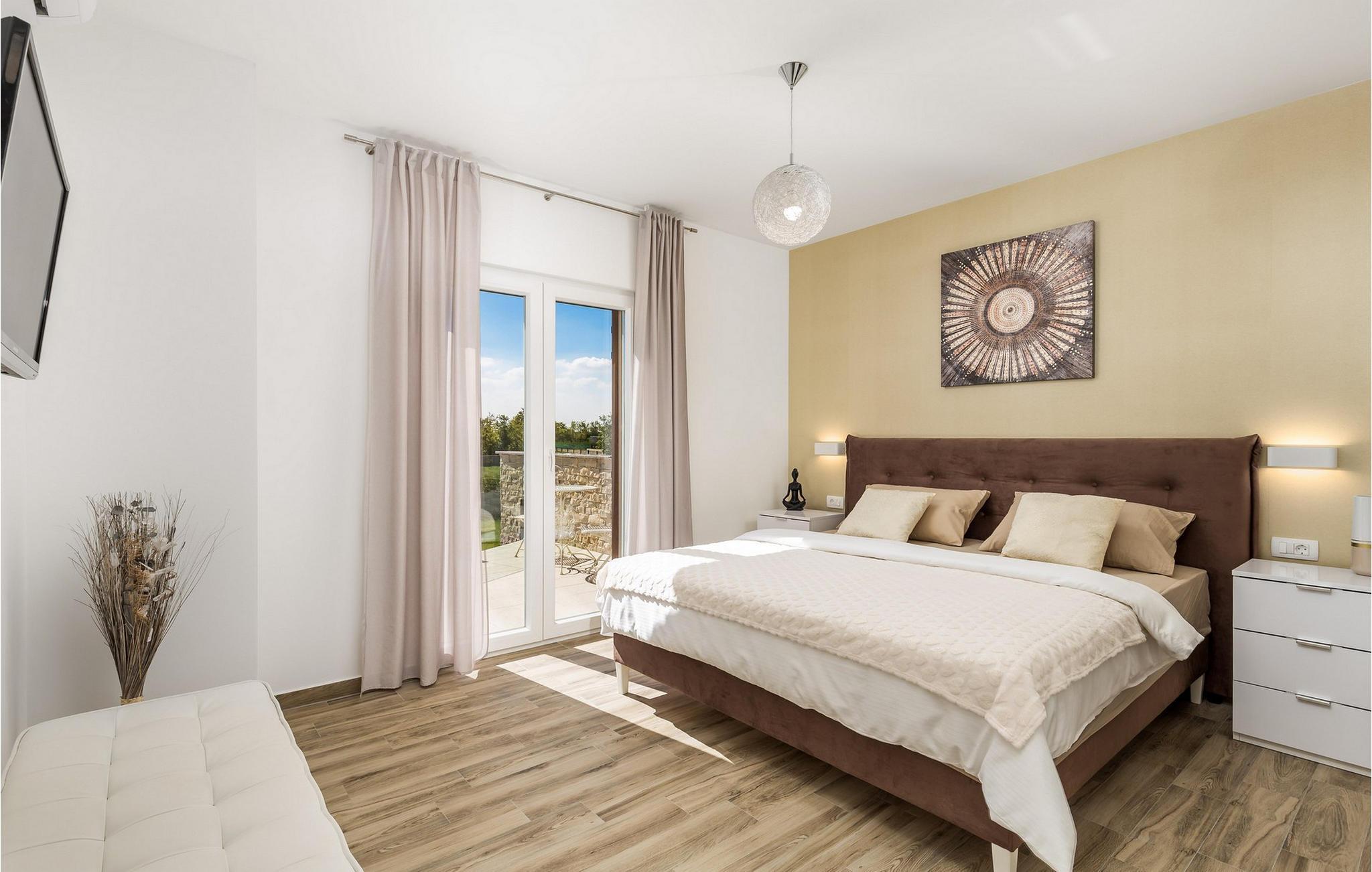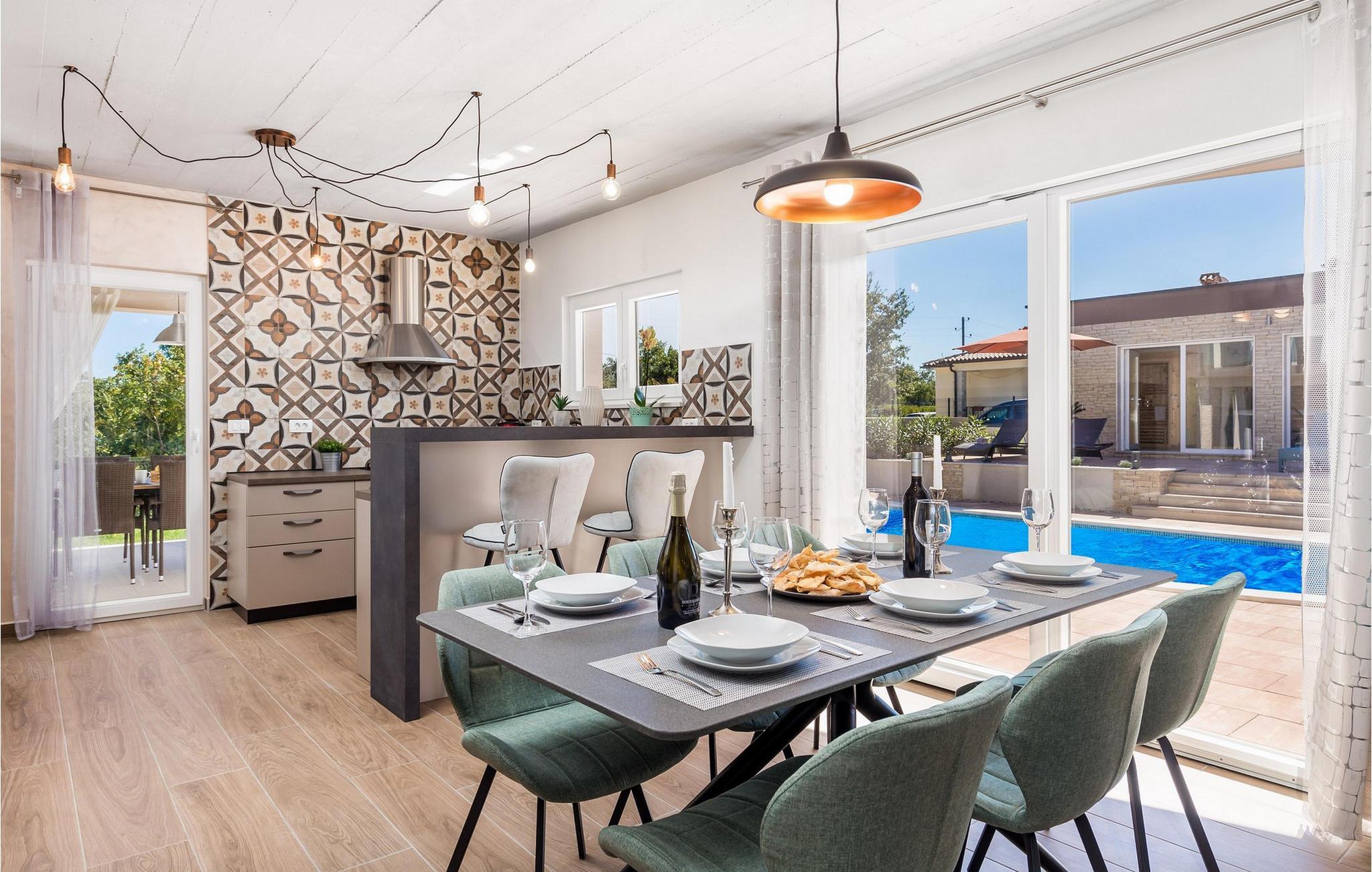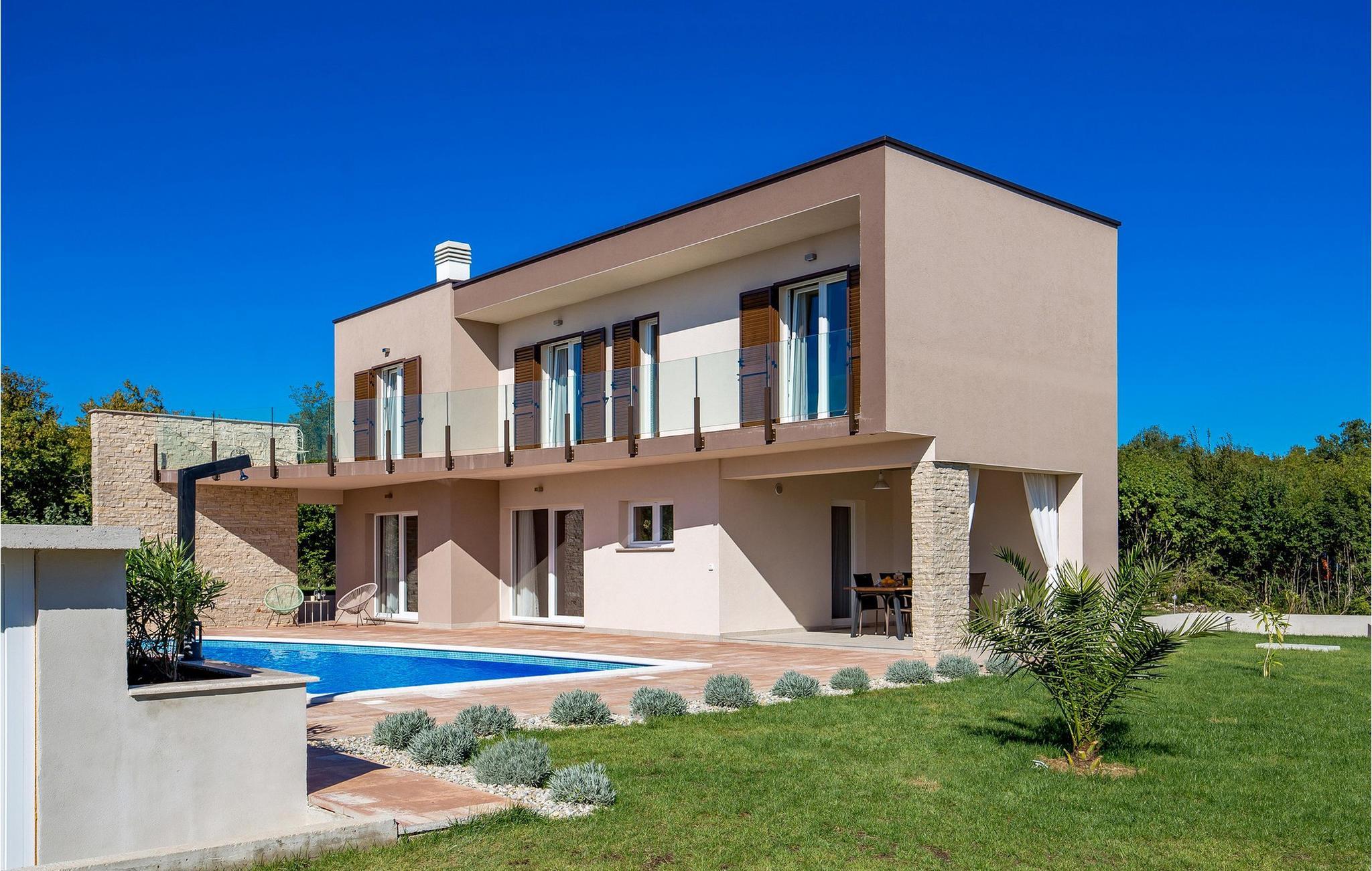 Luksusvilla Kunj ligger i landsbyen Kunj i Istria. Villa Kunj er det rette valget for deg som ønsker å tilbringe ferien i fred og ro og samtidig nyte det absolutte privatlivet og luksusen i denne vakre villaen. Villa Kunj er innredet i rustikk-moderne stil og har plass til maksimalt 6 personer. Den har klimaanlegg og er på totalt 208 m2. Villaen er omgitt av uberørt natur og fortryllende grøntområder, og tilbyr alt du noensinne har drømt om. Ovenpå er det 3 soverom med tre dobbeltsenger (180x200) og 3 bad med dusj. I villaens første etasje er det en stue med sofa, toseter, lenestol og TV. Det vakkert innredede kjøkkenet har alt du trenger for å tilberede dine favorittretter, som kokekar, stekeovn, brødrister, kaffetrakter og vinkjøleskap. Kjøkkenet har også en liten bar med plass til 2 personer. I nærheten av kjøkkenet er det en spisestue med et bord med plass til 6 personer, og ved siden av er det utgang til utendørsterrassen. Leiligheten har også vaskemaskin, tørketrommel og strykejern, og villaen har separat toalett. Vil du virkelig føle deg luksuriøs, kan du benytte deg av badstuen, treningsstudioet og boblebadet, som ligger overfor villaen i en separat bygning og deles med bassenget. Hvis du reiser med barn, kan du benytte deg av materen og barnesengen. Bassenget er 38 m² stort, og her kan du forfriske deg i fred og ro både dag og natt. Ved siden av bassenget er det 6 solsenger, omgitt av en åpen hage og rikelig med plass til barnelek, og barna kan også boltre seg på huskene. Ved siden av det overbygde utendørs spisebordet med plass til 6 personer står en grill som kan fyres med kull eller ved. Du kan benytte 4 private parkeringsplasser i hagen. Kunj er en liten landsby ikke langt fra byen Labin og Istrias kyst med vakre strender og klart hav. Istria-halvøya byr på mange attraksjoner og fasiliteter som er verdt et besøk. Det vakre landskapet og det solfylte middelhavsklimaet byr på morsomme og interessante dagsturer med familien eller vennegjengen. I byen Labin bør du besøke Labin-gruven, som tidligere var en viktig del av Labin-regionen. En morsom og luksuriøs ferie er garantert! Velkommen til Villa Kunj! Vær oppmerksom på at dette overnattingsstedet ikke tar imot ungdomsgrupper eller utdrikningslag. En ungdomsgruppe på dette overnattingsstedet består av personer under 30 år. Ikke bestill dette overnattingsstedet hvis du er en ungdomsgruppe eller et utdrikningslag, da bestillingen din vil bli avvist etter bestilling, noe som også kan være tilfelle ved ankomst til overnattingsstedet eller under oppholdet, og du vil ikke få refusjon.
