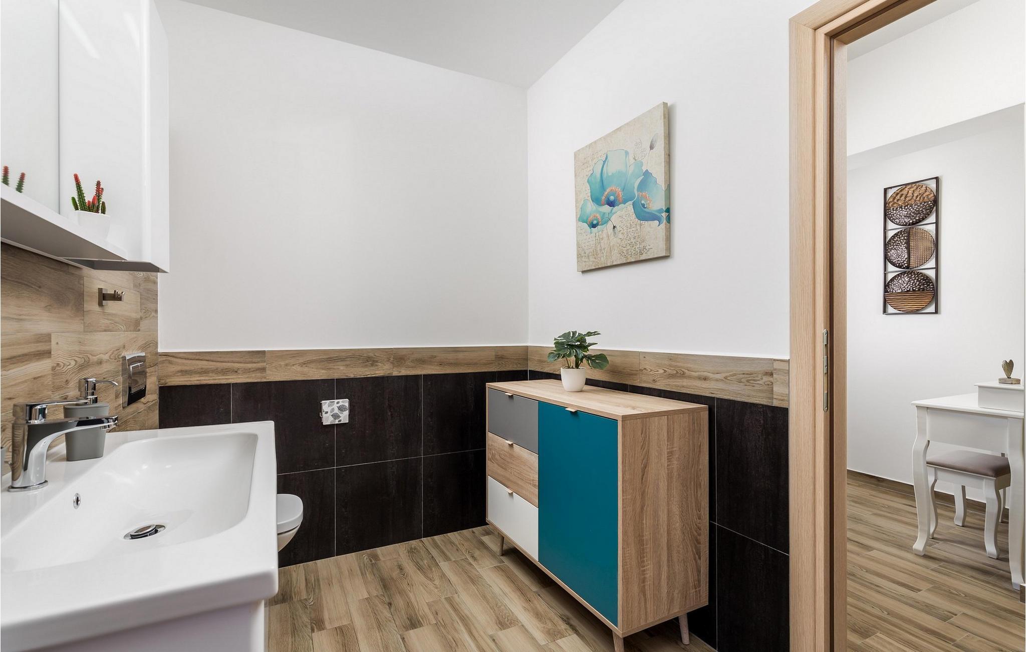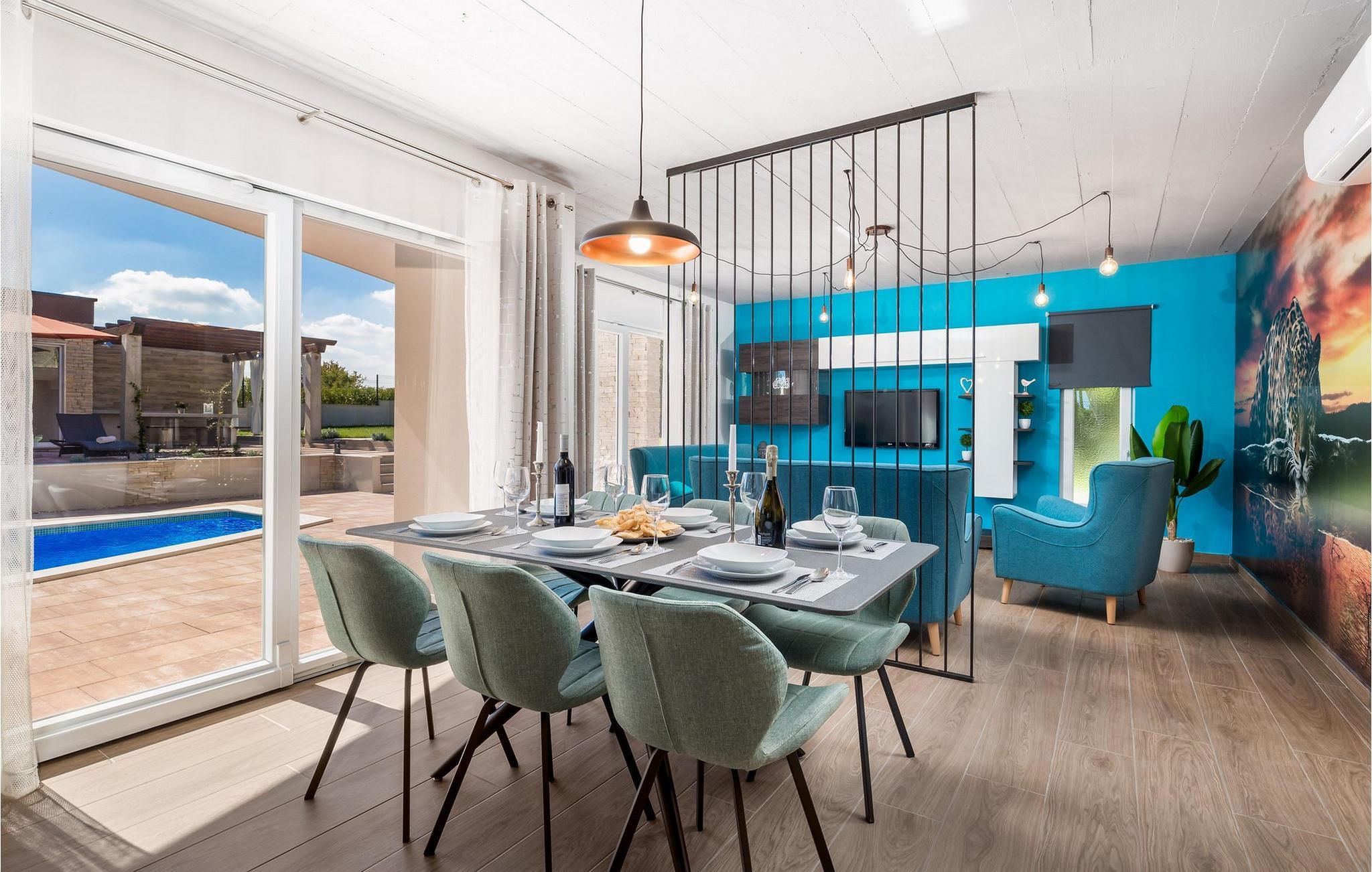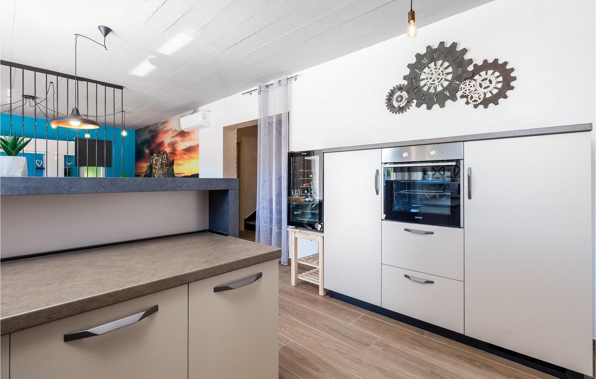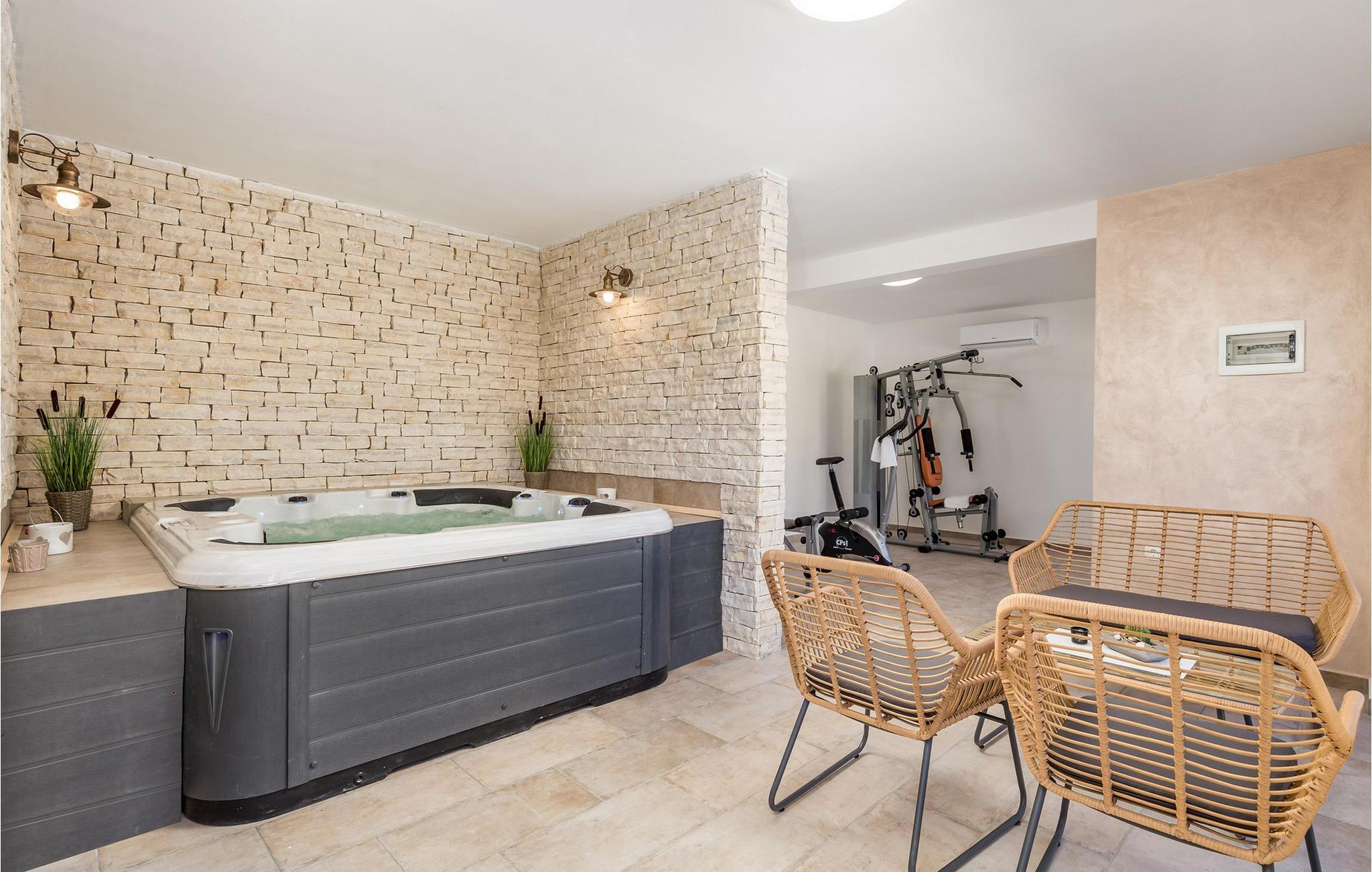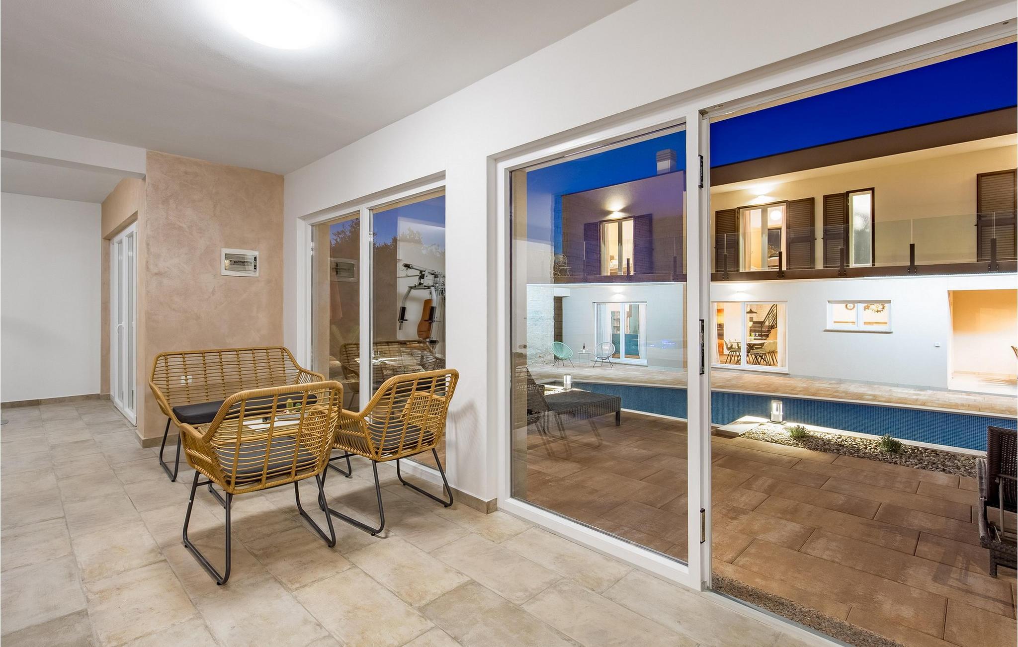 Luksusvilla Kunj ligger i landsbyen Kunj i Istria. Villa Kunj er det rette valget for deg som ønsker å tilbringe ferien i fred og ro og samtidig nyte det absolutte privatlivet og luksusen i denne vakre villaen. Villa Kunj er innredet i rustikk-moderne stil og har plass til maksimalt 6 personer. Den har klimaanlegg og er på totalt 208 m2. Villaen er omgitt av uberørt natur og fortryllende grøntområder, og tilbyr alt du noensinne har drømt om. Ovenpå er det 3 soverom med tre dobbeltsenger (180x200) og 3 bad med dusj. I villaens første etasje er det en stue med sofa, toseter, lenestol og TV. Det vakkert innredede kjøkkenet har alt du trenger for å tilberede dine favorittretter, som kokekar, stekeovn, brødrister, kaffetrakter og vinkjøleskap. Kjøkkenet har også en liten bar med plass til 2 personer. I nærheten av kjøkkenet er det en spisestue med et bord med plass til 6 personer, og ved siden av er det utgang til utendørsterrassen. Leiligheten har også vaskemaskin, tørketrommel og strykejern, og villaen har separat toalett. Vil du virkelig føle deg luksuriøs, kan du benytte deg av badstuen, treningsstudioet og boblebadet, som ligger overfor villaen i en separat bygning og deles med bassenget. Hvis du reiser med barn, kan du benytte deg av materen og barnesengen. Bassenget er 38 m² stort, og her kan du forfriske deg i fred og ro både dag og natt. Ved siden av bassenget er det 6 solsenger, omgitt av en åpen hage og rikelig med plass til barnelek, og barna kan også boltre seg på huskene. Ved siden av det overbygde utendørs spisebordet med plass til 6 personer står en grill som kan fyres med kull eller ved. Du kan benytte 4 private parkeringsplasser i hagen. Kunj er en liten landsby ikke langt fra byen Labin og Istrias kyst med vakre strender og klart hav. Istria-halvøya byr på mange attraksjoner og fasiliteter som er verdt et besøk. Det vakre landskapet og det solfylte middelhavsklimaet byr på morsomme og interessante dagsturer med familien eller vennegjengen. I byen Labin bør du besøke Labin-gruven, som tidligere var en viktig del av Labin-regionen. En morsom og luksuriøs ferie er garantert! Velkommen til Villa Kunj! Vær oppmerksom på at dette overnattingsstedet ikke tar imot ungdomsgrupper eller utdrikningslag. En ungdomsgruppe på dette overnattingsstedet består av personer under 30 år. Ikke bestill dette overnattingsstedet hvis du er en ungdomsgruppe eller et utdrikningslag, da bestillingen din vil bli avvist etter bestilling, noe som også kan være tilfelle ved ankomst til overnattingsstedet eller under oppholdet, og du vil ikke få refusjon.