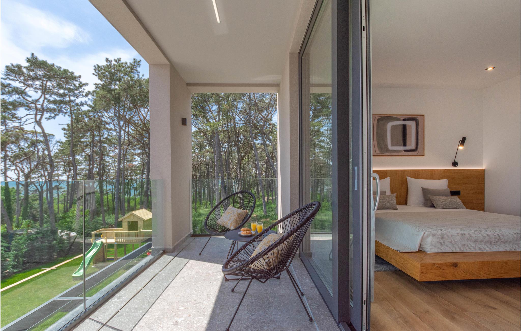 Dette er et romslig feriehus i to etasjer, innredet med moderne, spesialdesignede møbler av høy kvalitet og kunstneriske malerier. Komfort har ikke blitt spart i møblene, da du i tillegg til vakker boareal også har et velværerom med innendørs boblebad, badstue og dusj, som videre strekker seg inn i aktivitetsrommet med biljard. Utenfor er ytterligere overbygde terrasser og et overløpsbasseng med hydromassasje klar til bruk. For de yngste gjestene er det også en lekeplass med husker, sklie, lekehus og klatrestativ.