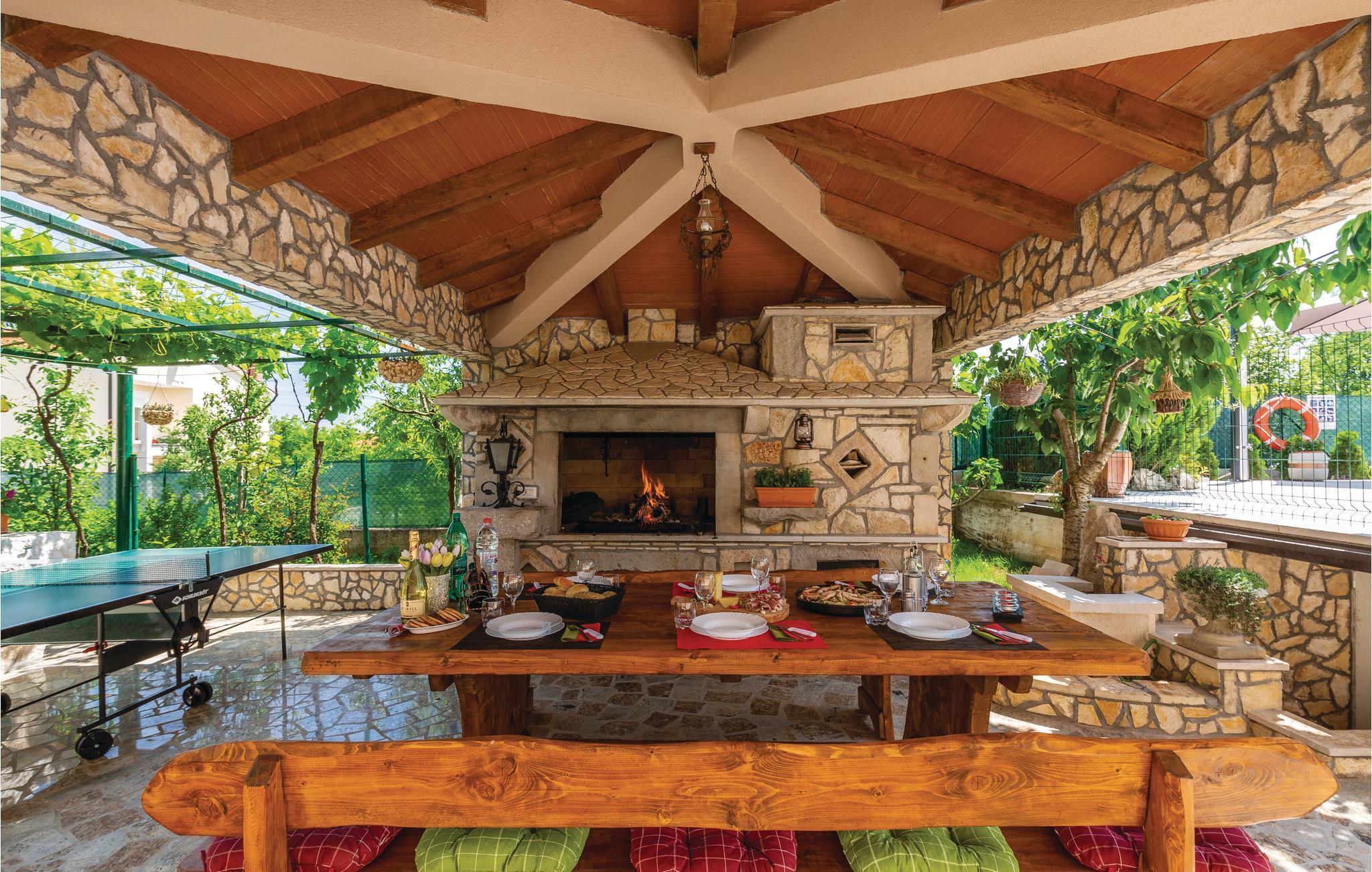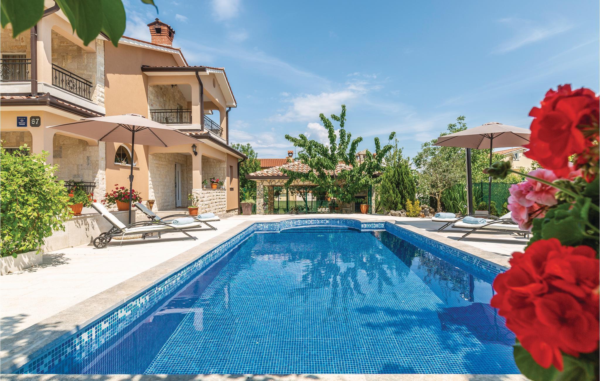 Dette vakre og komfortabelt innredede feriehuset ligger i den lille landsbyen Santalezi. Forfriskning i løpet av de varme sommerdagene vil bli gitt av utendørsbassenget. Du vil sikkert nyte den hyggelige atmosfæren i det vakre overbygde lysthuset, ideelt for å tilbringe kvelder sammen med et glass god vin. Vi anbefaler deg å besøke turiststedet Rabac med vakre rullesteinstrender og krystallklart hav, hvor du også kan ta en båttur. Besøk et av de kulturelle arrangementene som finner sted i Labin i sommermånedene. Herfra kan du også gjøre gode dagsturer til Pula, Porec og Rovinj.