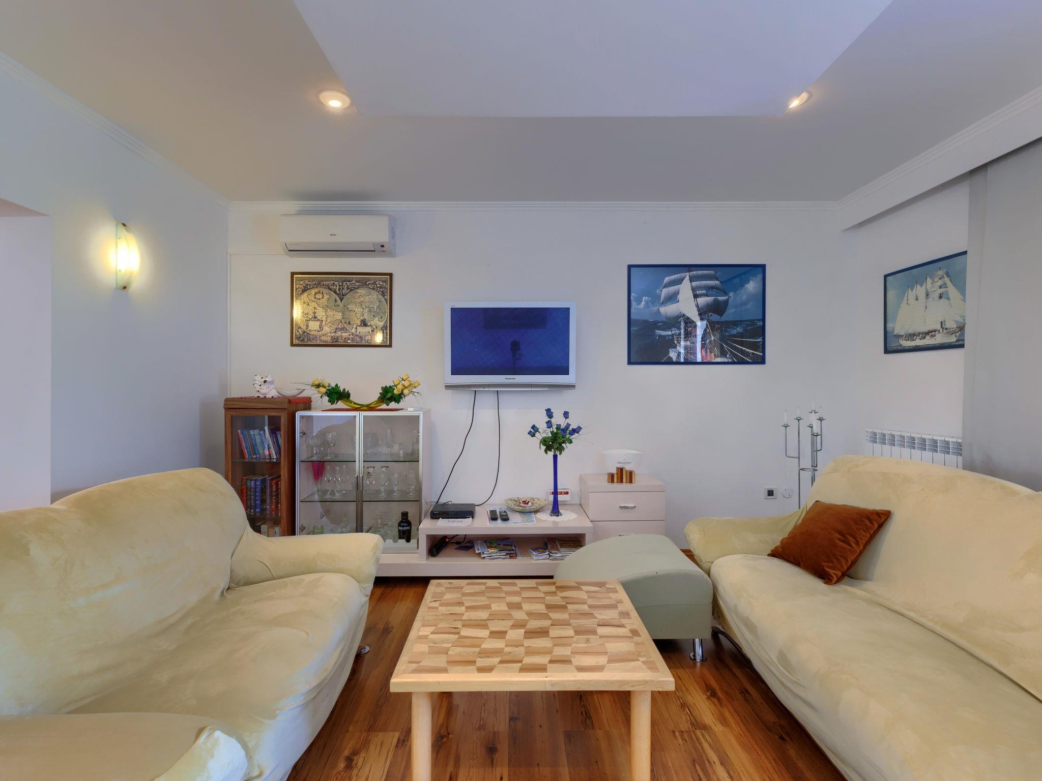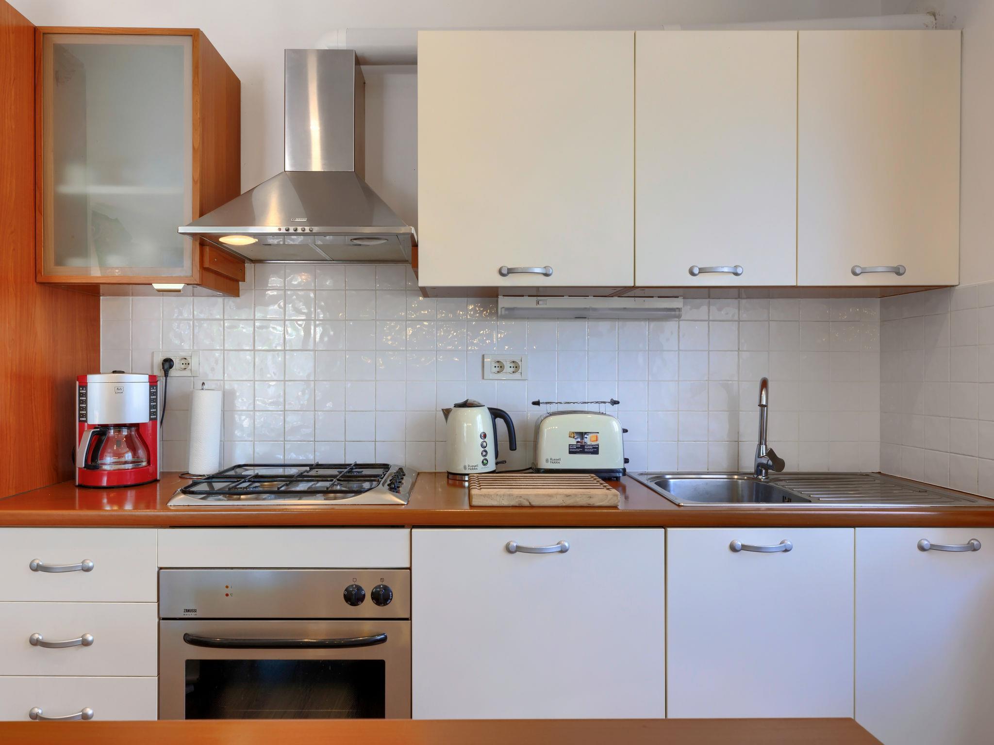 "Laura", 4-room apartment 120 m2, on the ground floor. Living/dining room with satellite TV (flat screen), air conditioning. Exit to the terrace. 1 room with 1 double bed. 1 room with 1 bed and 1 double bed. Exit to the balcony. 1 room with 1 bed and 1 double bed. Open kitchen (4 hot plates, oven, dishwasher, toaster, kettle, freezer, electric coffee machine). Shower/WC, bath/shower/WC. Balcony, terrace 16 m2 partly roofed, terrace 10 m2. Terrace furniture, deck chairs, box-room. Facilities: washing machine, iron, children's high chair. Internet (WiFi, free). Please note: non-smokers only. Maximum 2 pets/ dogs allowed.