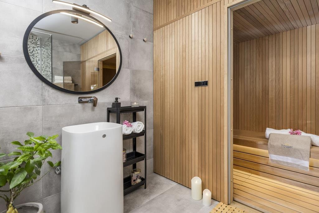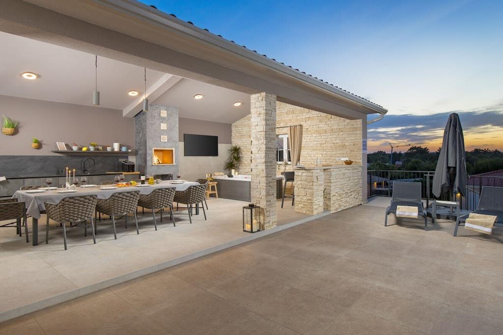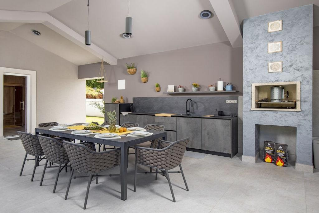 Vila Hygge befindet sich in der ruhigen Lage Pustic, am Rand des Waldes, nahe Labin. Diese elegant eingerichtete Villa bietet alles, was Sie zum Entspannen und Genießen brauchen. Sie verfügt über vier Schlafzimmer, jedes mit eigenem Badezimmer, ein geräumiges Wohnzimmer, eine Innen- und Außenküche mit Essbereich sowie eine Sauna. Der Außenbereich umfasst einen Pool, einen Whirlpool und einen großen Garten, der zu verschiedenen Aktivitäten wie Darts oder Tischtennis einlädt. Der Pool befindet sich im sonnigen Teil des Anwesens, während der Rest des Hauses den ganzen Tag über angenehm im Waldschatten liegt. Gäste können sich in der Außenterrasse entspannen oder ein Barbecue auf der gut ausgestatteten Terrasse genießen. Für die Kleinen gibt es Spielmöglichkeiten im Freien sowie Kinderprogramme im Fernsehen. Wenn Sie die Schönheiten Istriens erkunden möchten, bietet die Villa Hygge die perfekte Basis, um das kulturelle Erbe, die lokale Gastronomie und die Naturwunder zu entdecken. Nach Ihrer Erkundung werden Sie immer gerne in dieses friedliche Refugium zurückkehren. Die Strände von Rabac sind nur 10 Minuten mit dem Auto entfernt.