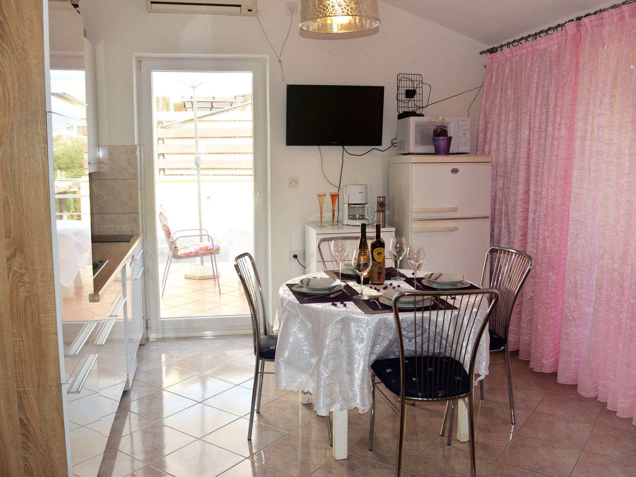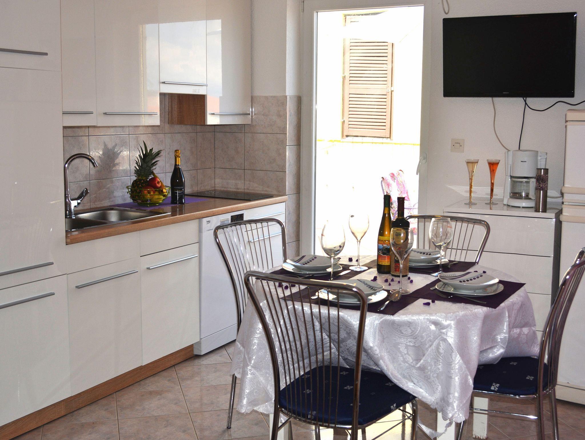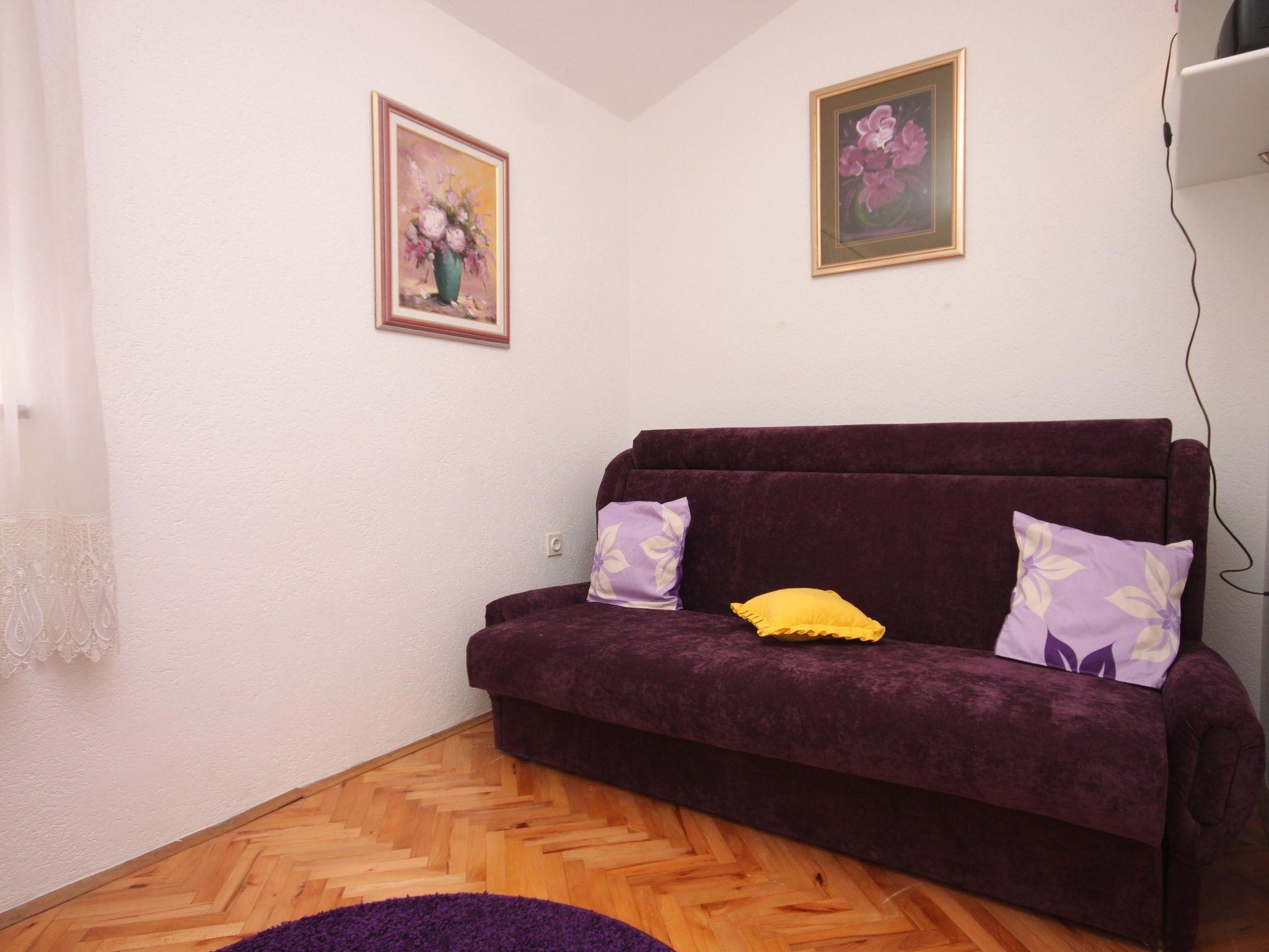 Ferienwohnung bietet Platz für 5 Gäste. Die Betten sind in Schlafzimmern, die es 1 gibt, und in Wohnzimmer, innerhalb einer Gesamtfläche von 37m2, angeordnet. Die Gäste haben eine eigene Terrasse zur Verfügung, auf der sie in warmen Sommernächten genießen können. Das Apartment bietet Meerblick. Es ist erlaubt, Speisen auf dem Gemeinschafts-Grill vorzubereiten. IM PREIS INBEGRIFFEN: Kurtaxe, Endreinigung, Klimatisierung, Parkplatz, Internet, Bügeleisen, Bügelbrett, Föhn, Sonnenschirm. VERBINDLICHE ZUSÄTZLICHE KOSTEN: Aufzahlung für Kurzaufenthalte (prozentualer Zuschlag pro Nächtigungsanzahl: 30% - 1, 20% - 2, 10% - 3). Die Verfügbarkeit zusätzlicher Dienstleistungen in Ihrem reservierten Termin und die Preise derselben (falls nicht aufgeführt) müssen im Voraus überprüft werden. Zusätzliche Dienstleistungen die in der Zahlungsaufforderung nicht aufgeführt sind werden direkt beim Vermieter bezahlt, angenommen der Gast nutzt auch diese.