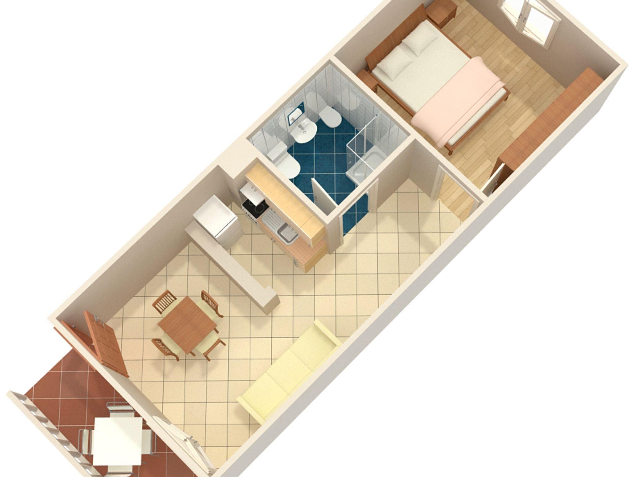 Ferienwohnung bietet Platz für 3 Gäste. Die Betten sind in Schlafzimmern, die es 1 gibt, und in Esszimmer, innerhalb einer Gesamtfläche von 37m2, angeordnet. Die Gäste haben eine eigene Terrasse zur Verfügung, auf der sie in warmen Sommernächten genießen können. Das Apartment bietet Meerblick. Es ist erlaubt, Speisen auf dem Gemeinschafts-Grill vorzubereiten. IM PREIS INBEGRIFFEN: Kurtaxe, Endreinigung, Klimatisierung, Parkplatz, Internet, Bügeleisen, Bügelbrett, Föhn. VERBINDLICHE ZUSÄTZLICHE KOSTEN: Aufzahlung für Kurzaufenthalte (prozentualer Zuschlag pro Nächtigungsanzahl: 30% - 1, 20% - 2, 10% - 3). UNVERBINDLICHE ZUSÄTZLICHE KOSTEN: Zusatzbett (5,00 € pro Nacht). Die Verfügbarkeit zusätzlicher Dienstleistungen in Ihrem reservierten Termin und die Preise derselben (falls nicht aufgeführt) müssen im Voraus überprüft werden. Zusätzliche Dienstleistungen die in der Zahlungsaufforderung nicht aufgeführt sind werden direkt beim Vermieter bezahlt, angenommen der Gast nutzt auch diese.
