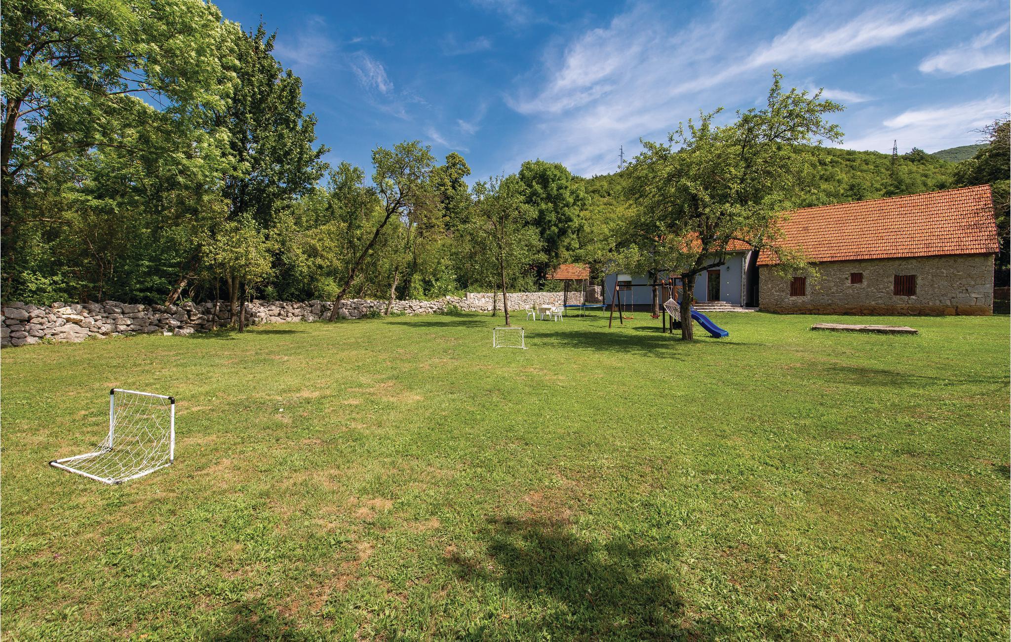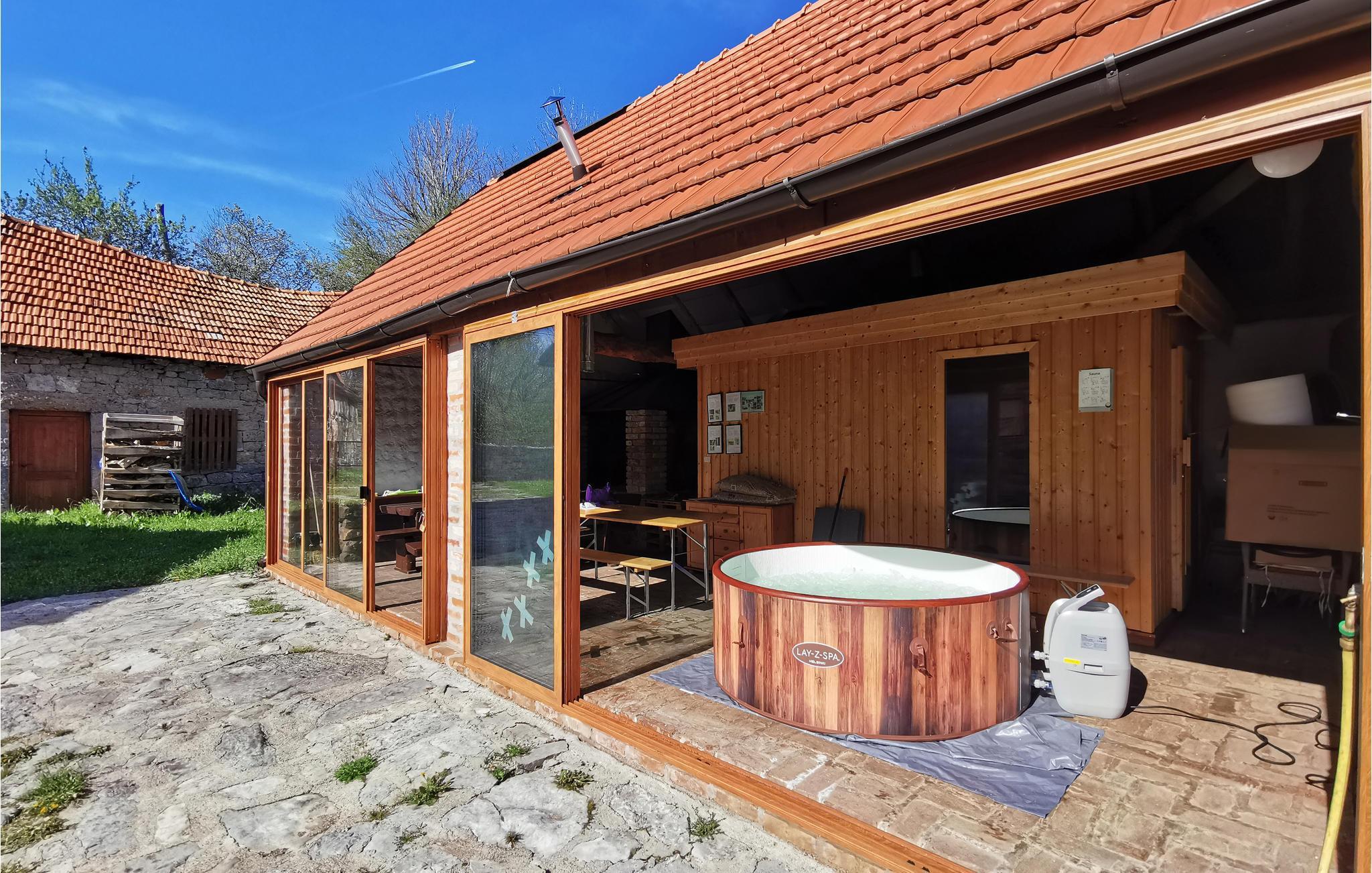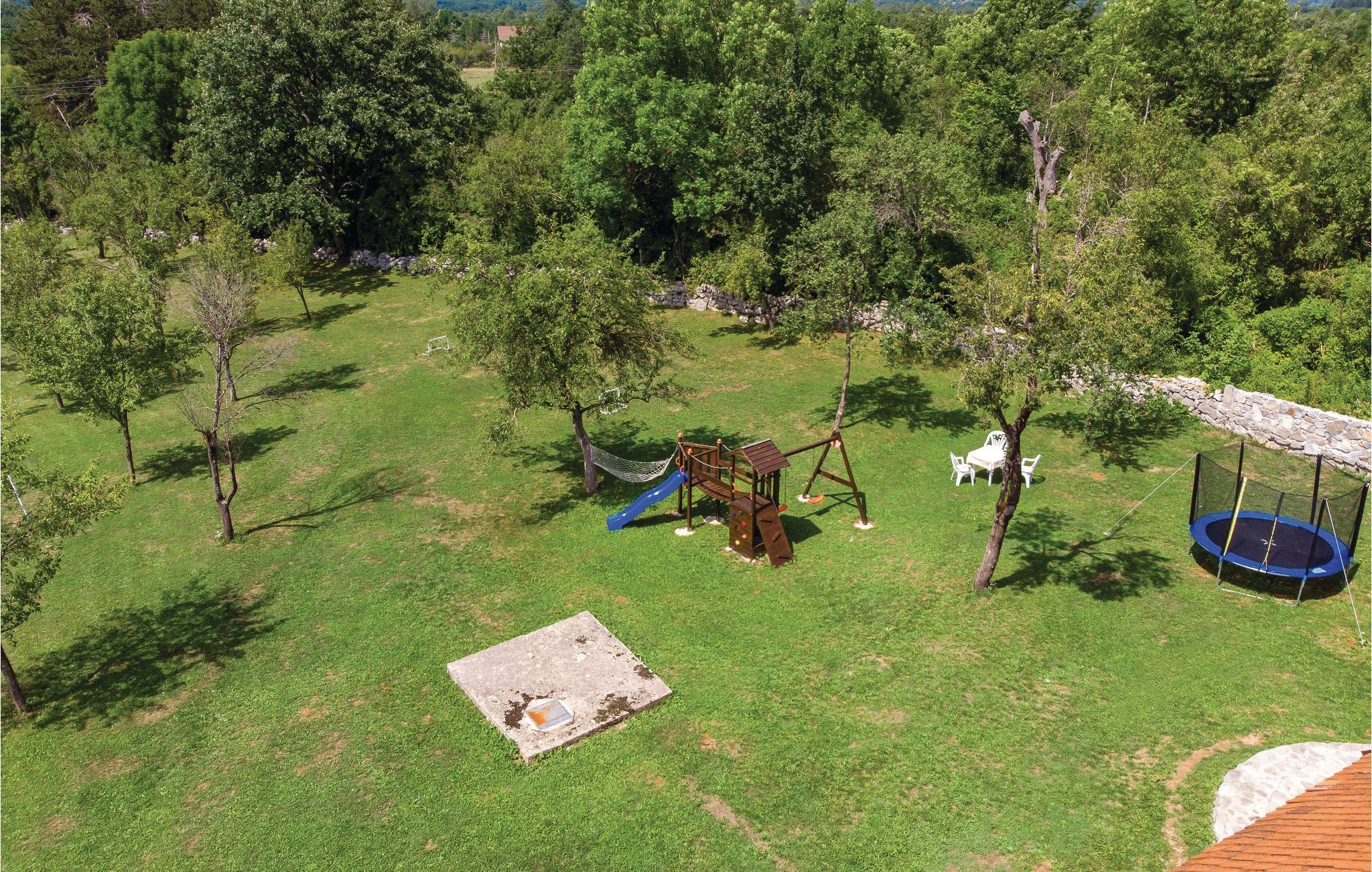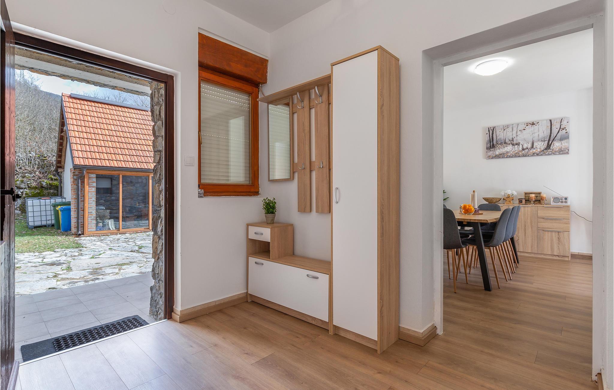 Dette allsidige feriehuset er omgitt av vakker natur og ligger på en tomt på rundt 30 000 m². Det består av to etasjer som er forbundet med utvendige trapper. På den overbygde terrassen på gårdsplassen, som er omsluttet av glassvegger, finner du også et velværeområde med et boblebad i tre og badstue for 6 personer, hvor du kan gi kroppen din en gave av avslapning. Det er også en grill med hagemøbler, noe som er et must på ferien. Det er også mange underholdende fritidsaktiviteter for barn og voksne på denne eiendommen. Det er 300 meter asfaltert vei fra hovedveien til huset. Besøk Nikola Tesla-museet i Gospi, nasjonalparken Plitvice-sjøene, Europas lengste zip-line, bjørnereservatet i Kuterevo og grottene i Cerovac.