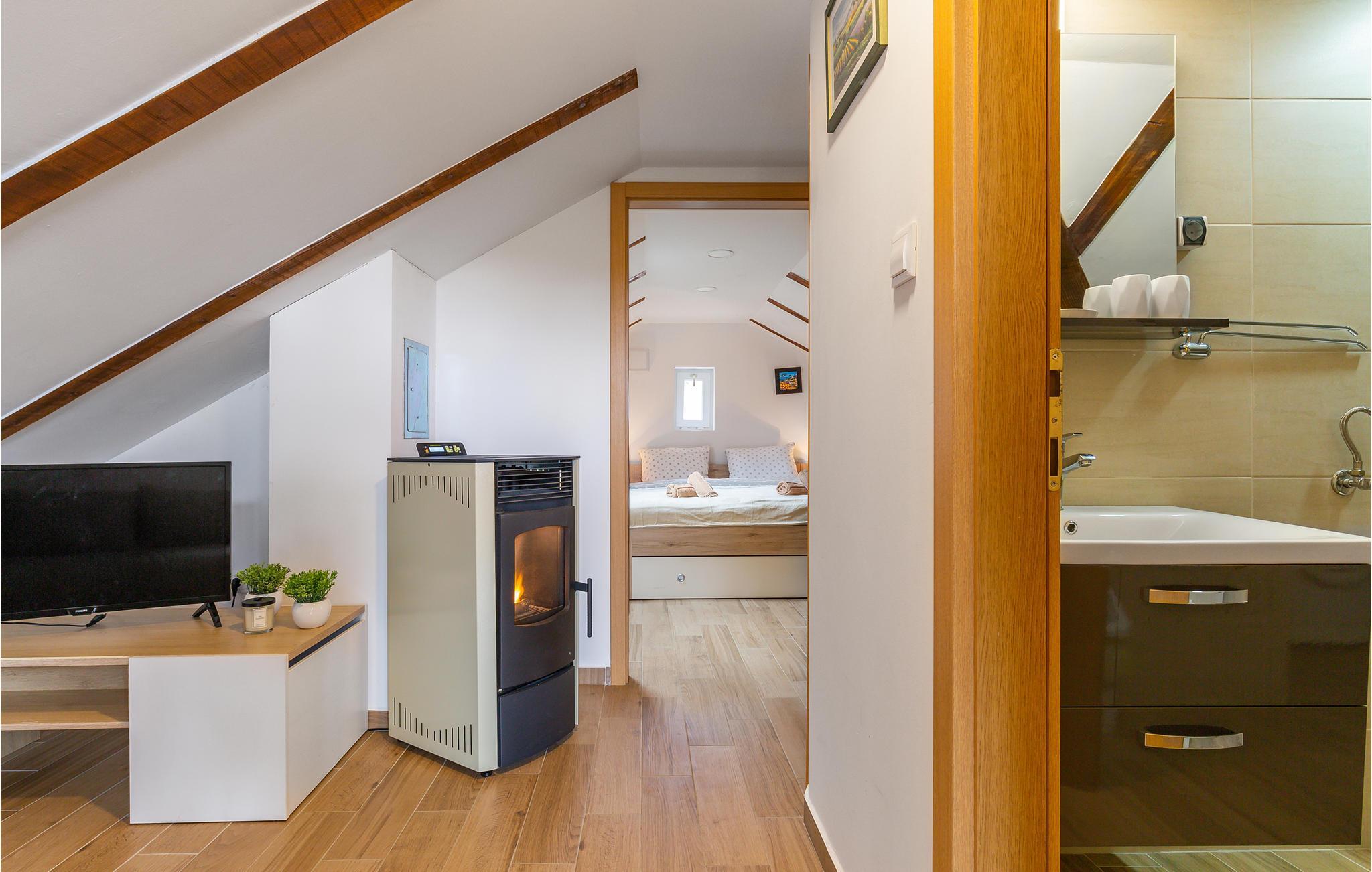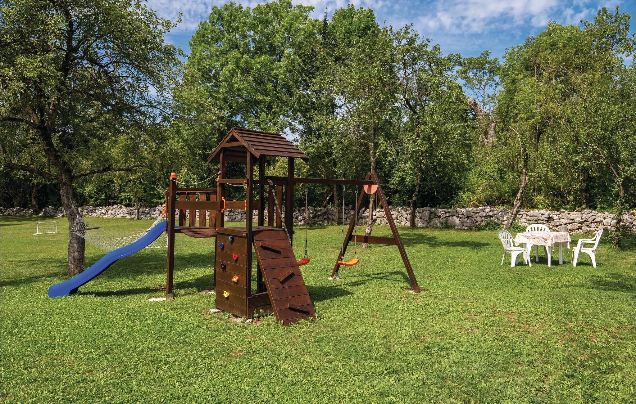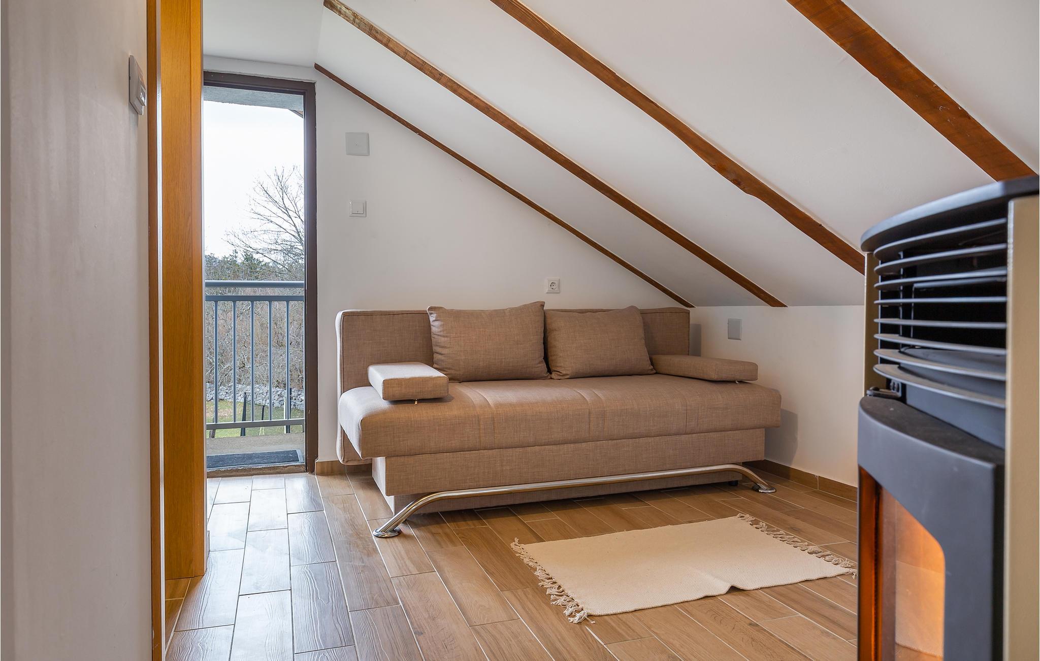 Dette allsidige feriehuset er omgitt av vakker natur og ligger på en tomt på rundt 30 000 m². Det består av to etasjer som er forbundet med utvendige trapper. På den overbygde terrassen på gårdsplassen, som er omsluttet av glassvegger, finner du også et velværeområde med et boblebad i tre og badstue for 6 personer, hvor du kan gi kroppen din en gave av avslapning. Det er også en grill med hagemøbler, noe som er et must på ferien. Det er også mange underholdende fritidsaktiviteter for barn og voksne på denne eiendommen. Det er 300 meter asfaltert vei fra hovedveien til huset. Besøk Nikola Tesla-museet i Gospi, nasjonalparken Plitvice-sjøene, Europas lengste zip-line, bjørnereservatet i Kuterevo og grottene i Cerovac.