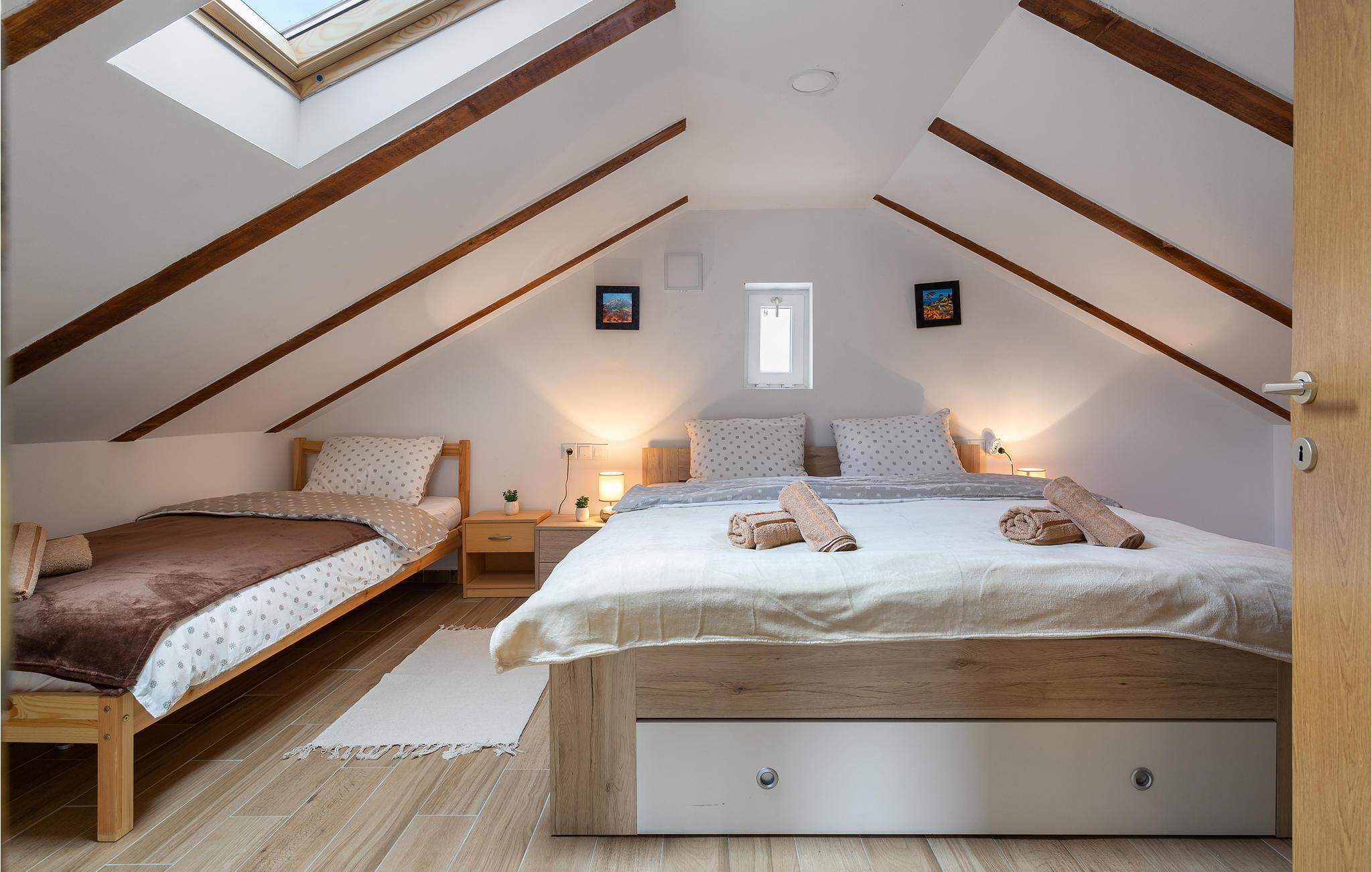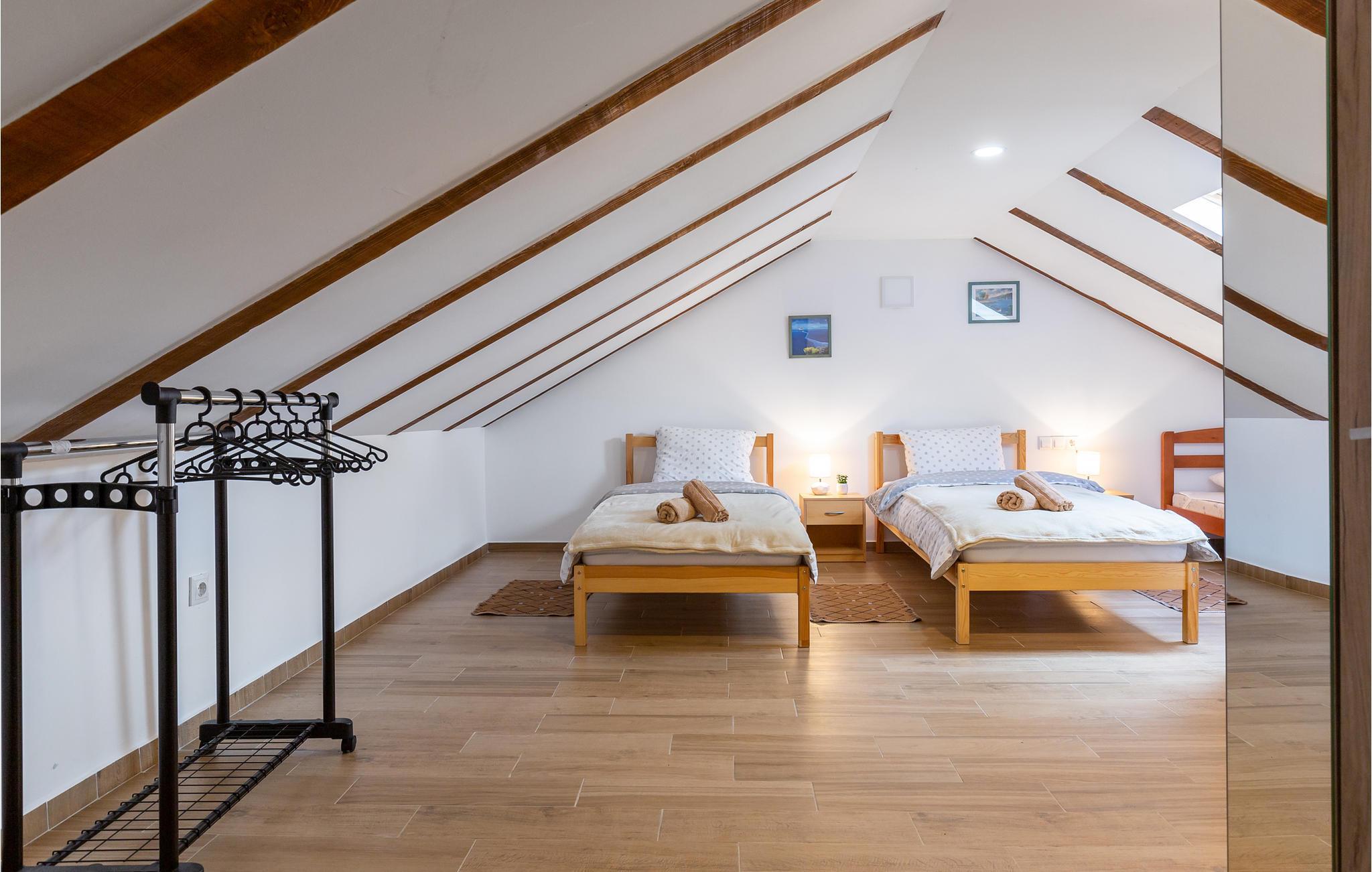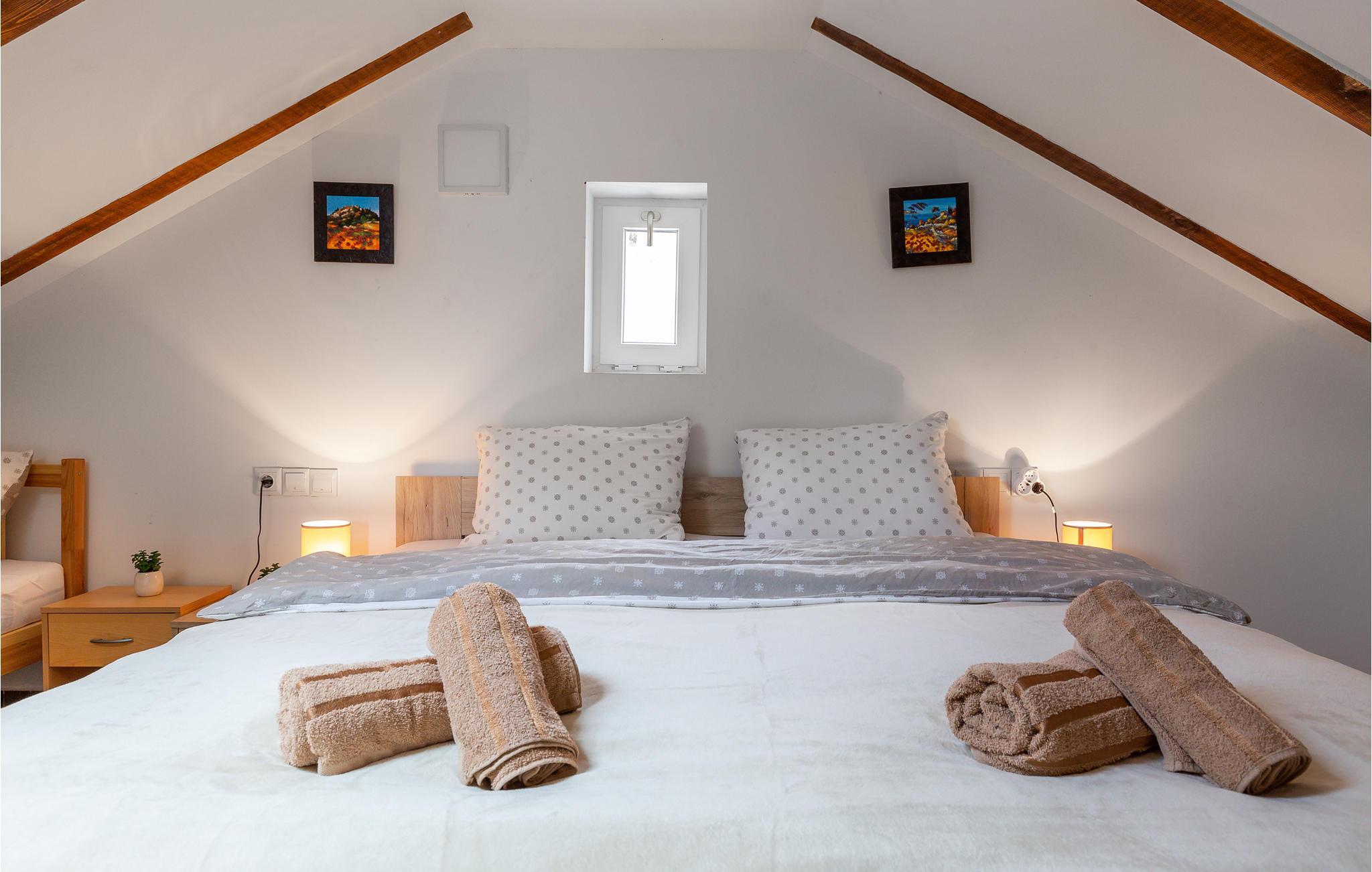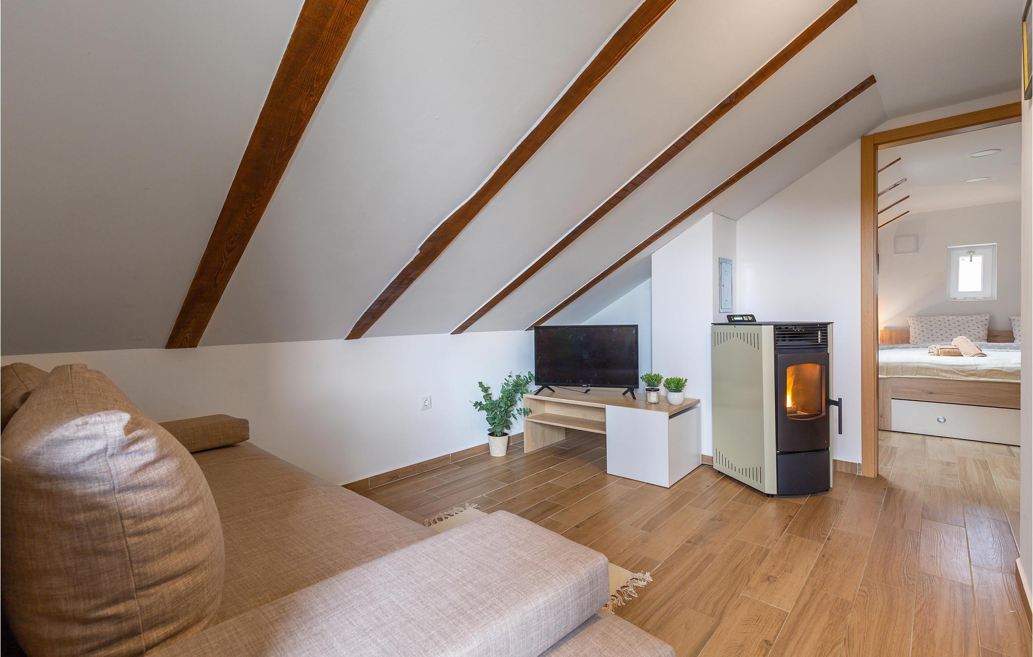 Dette allsidige feriehuset er omgitt av vakker natur og ligger på en tomt på rundt 30 000 m². Det består av to etasjer som er forbundet med utvendige trapper. På den overbygde terrassen på gårdsplassen, som er omsluttet av glassvegger, finner du også et velværeområde med et boblebad i tre og badstue for 6 personer, hvor du kan gi kroppen din en gave av avslapning. Det er også en grill med hagemøbler, noe som er et must på ferien. Det er også mange underholdende fritidsaktiviteter for barn og voksne på denne eiendommen. Det er 300 meter asfaltert vei fra hovedveien til huset. Besøk Nikola Tesla-museet i Gospi, nasjonalparken Plitvice-sjøene, Europas lengste zip-line, bjørnereservatet i Kuterevo og grottene i Cerovac.