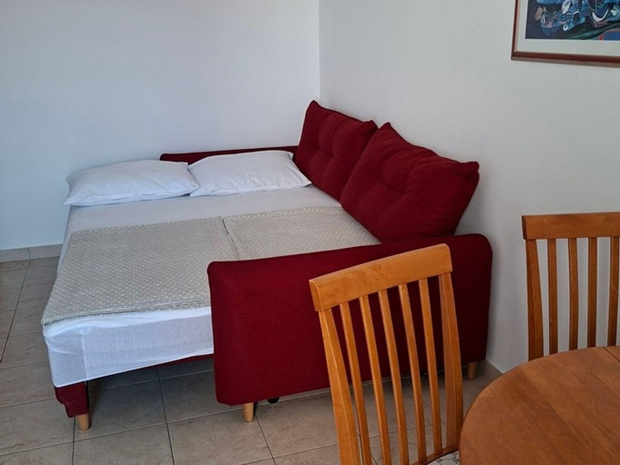 Ferienwohnung bietet Platz für 4 Gäste. Die Betten sind in Schlafzimmern, die es 1 gibt, und in Wohnzimmer, innerhalb einer Gesamtfläche von 30m2, angeordnet. Die Gäste haben eine eigene Terrasse zur Verfügung, auf der sie in warmen Sommernächten genießen können. Das Apartment bietet Meerblick. Es ist erlaubt, Speisen auf dem Gemeinschafts-Grill vorzubereiten. In der Unterkunftseinheit besteht die Möglichkeit des Mitbringens von Haustieren gegen Aufpreis. IM PREIS INBEGRIFFEN: Kurtaxe, Endreinigung, Klimatisierung, Parkplatz, Internet, Wäschewaschen, Kinderbett, Bügeleisen, Bügelbrett, Föhn. VERBINDLICHE ZUSÄTZLICHE KOSTEN: Aufzahlung für Kurzaufenthalte (prozentualer Zuschlag pro Nächtigungsanzahl: 30% - 1, 20% - 2, 10% - 3). UNVERBINDLICHE ZUSÄTZLICHE KOSTEN: Haustiere (10,00 € pro Nacht). Die Verfügbarkeit zusätzlicher Dienstleistungen in Ihrem reservierten Termin und die Preise derselben (falls nicht aufgeführt) müssen im Voraus überprüft werden. Zusätzliche Dienstleistungen die in der Zahlungsaufforderung nicht aufgeführt sind werden direkt beim Vermieter bezahlt, angenommen der Gast nutzt auch diese.