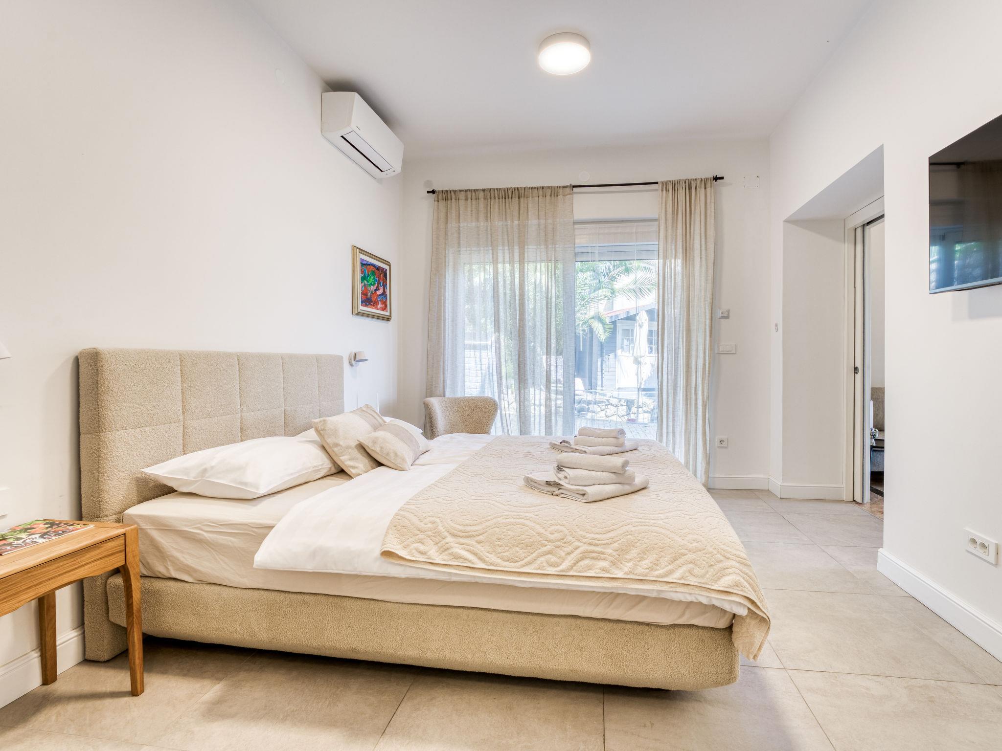 "Design Jamar", 3-room apartment 54 m2, on the upper ground floor. Renovated in 2025, tasteful and stylish furnishings: living/dining room with air conditioning. Exit to the terrace. 1 room with 1 double bed (2 x 90 cm, length 200 cm), shower/WC and cable TV (flat screen), air conditioning. Exit to the terrace. 1 room with 1 double bed (2 x 80 cm, length 200 cm), shower/WC and cable TV (flat screen). Open kitchen (oven, dishwasher, 2 induction hot plates, toaster, kettle, electric coffee machine). Floor heating, forced-air heating. Terrace 25 m2 partly roofed, lawn 25 m2. Terrace furniture, deck chairs (3). Marvellous view of the sea. Facilities: hair dryer. Internet (WiFi, free). Please note: non-smoking house. 1 small pet/ dog allowed. Apartment with accessibility features for people with disabilities.
