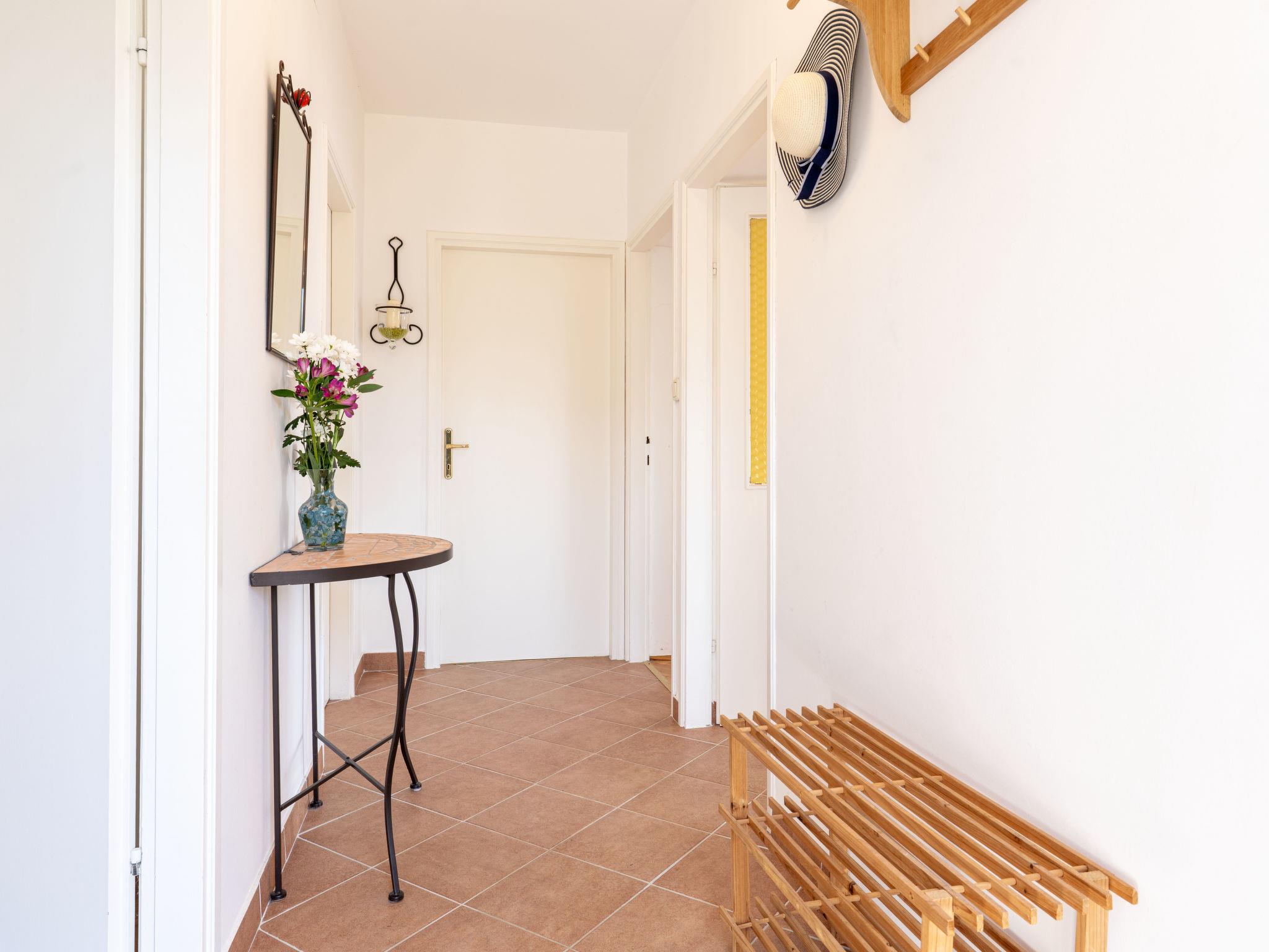 5-room house 130 m2 on 2 levels. Living room with satellite TV, electric heater and air conditioning. 1 room with 1 double bed (2 x 90 cm, length 200 cm). Open kitchen (2 hot plates, oven, toaster, kettle). Shower/WC. Upper floor: (exterior staircase) living room with satellite TV, wood-burning stove and air conditioning. Exit to the balcony. 1 room with 1 double bed (2 x 80 cm, length 200 cm), air conditioning. 1 room with 1 double bed (2 x 90 cm, length 200 cm), air conditioning. Open kitchen (4 hot plates, oven, toaster, kettle, electric coffee machine). Exit to the balcony. Shower/WC. Forced-air heating. Balcony 15 m2, terrace 16 m2, roofed. Terrace furniture, balcony furniture. Beautiful panoramic view of the sea and the resort. Facilities: iron, baby cot, hair dryer. Internet (WiFi, free). Please note: non-smoking house.