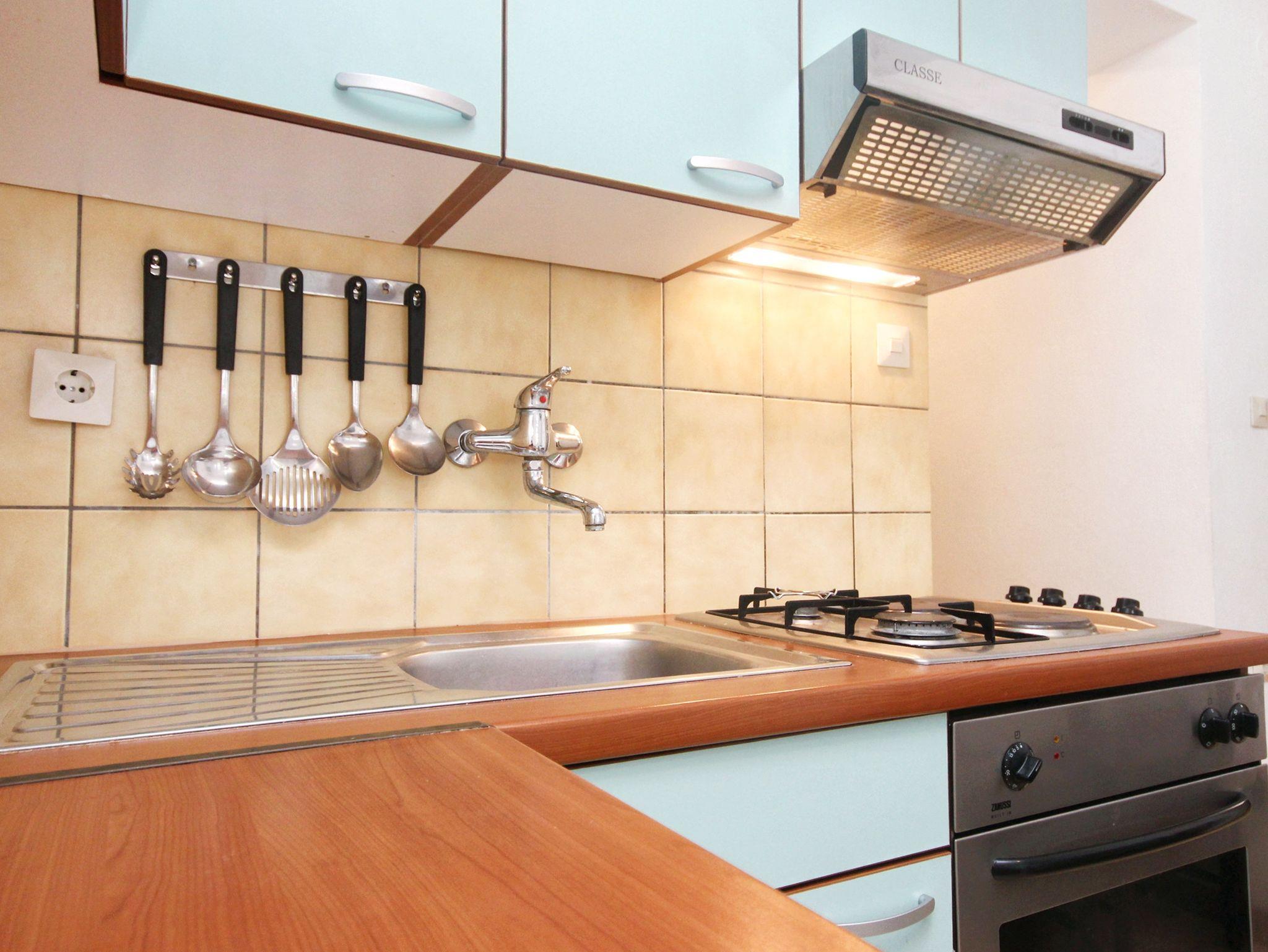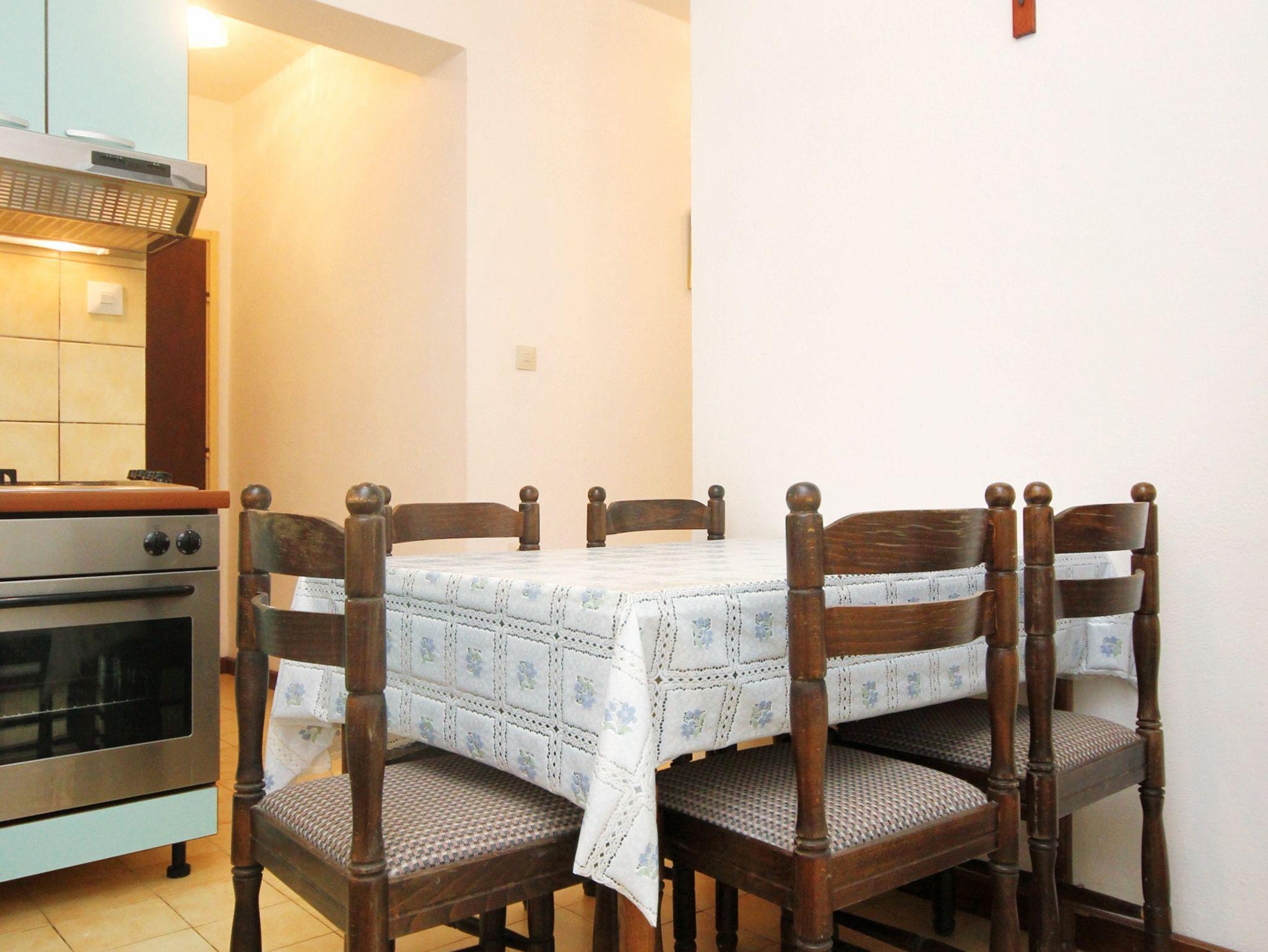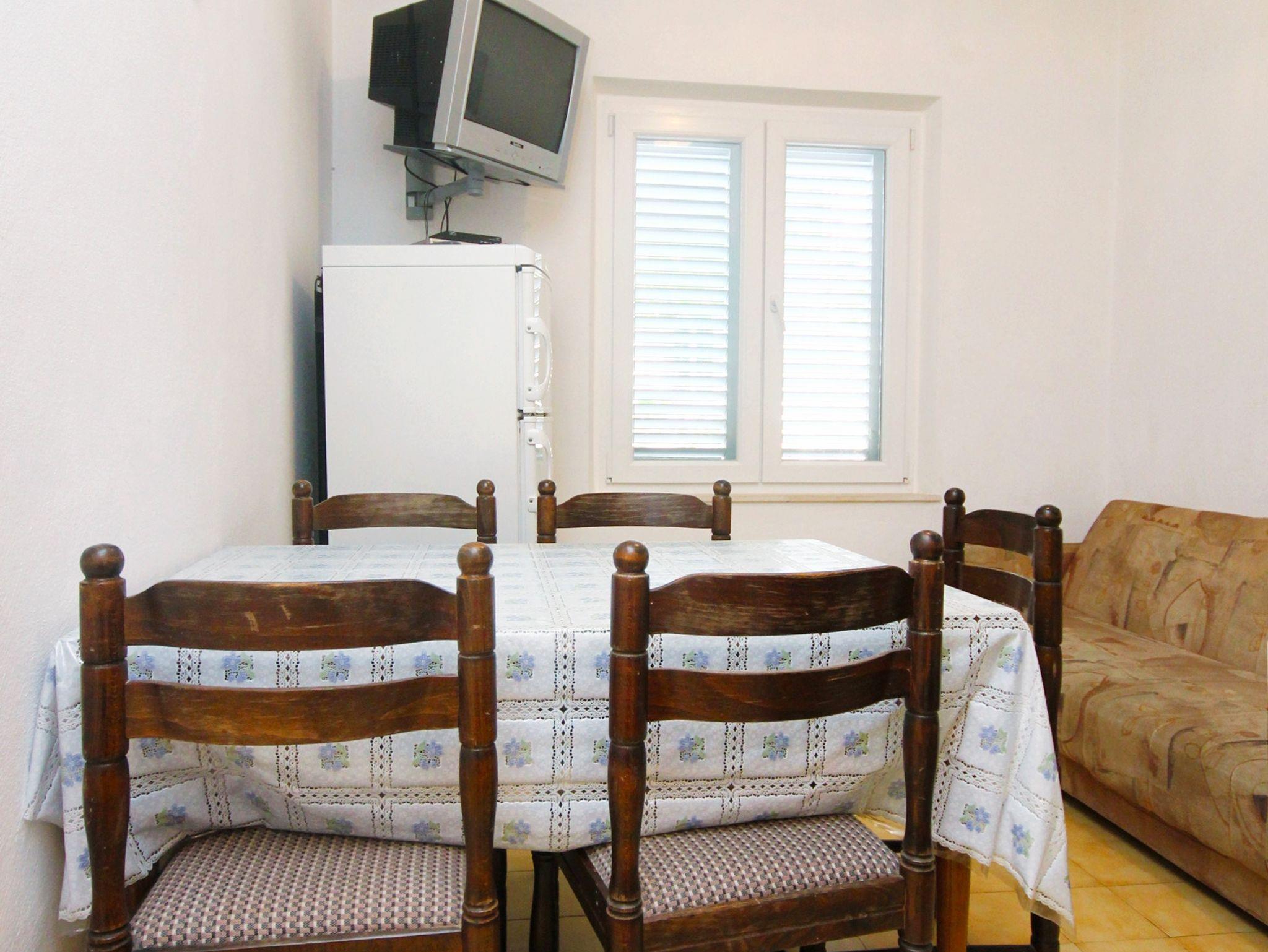Ferienwohnung bietet Platz für 5 Gäste. Die Betten sind in Schlafzimmern, die es 2 gibt, und in Esszimmer, innerhalb einer Gesamtfläche von 40m2, angeordnet. Das Apartment bietet Meerblick. Es ist erlaubt, Speisen auf dem Gemeinschafts-Grill vorzubereiten. In der Unterkunftseinheit besteht die Möglichkeit des Mitbringens von Haustieren, und die Dienstleistung ist im Preis der Unterkunft enthalten. Die reservierte Unterkunftseinheit verfügt über einen gemeinsame Terrasse. IM PREIS INBEGRIFFEN: Kurtaxe, Endreinigung, Klimatisierung, Parkplatz, Internet, Wäschewaschen, Haustiere, Bügeleisen, Bügelbrett, Föhn. VERBINDLICHE ZUSÄTZLICHE KOSTEN: Aufzahlung für Kurzaufenthalte (prozentualer Zuschlag pro Nächtigungsanzahl: 30% - 1, 20% - 2, 10% - 3). Die Verfügbarkeit zusätzlicher Dienstleistungen in Ihrem reservierten Termin und die Preise derselben (falls nicht aufgeführt) müssen im Voraus überprüft werden. Zusätzliche Dienstleistungen die in der Zahlungsaufforderung nicht aufgeführt sind werden direkt beim Vermieter bezahlt, angenommen der Gast nutzt auch diese. Ermäßigung auf den Grundpreis: Gratistag 14=13 (bei einem Aufenthalt von 14 Tagen oder mehr erhalten Sie einen Gratistag für den Aufenthalt bis 31.12.26).