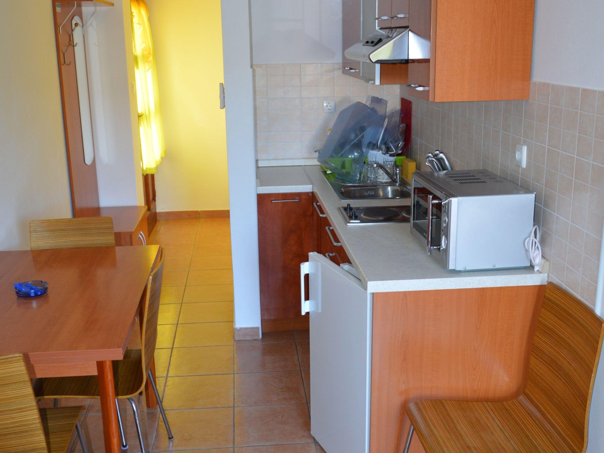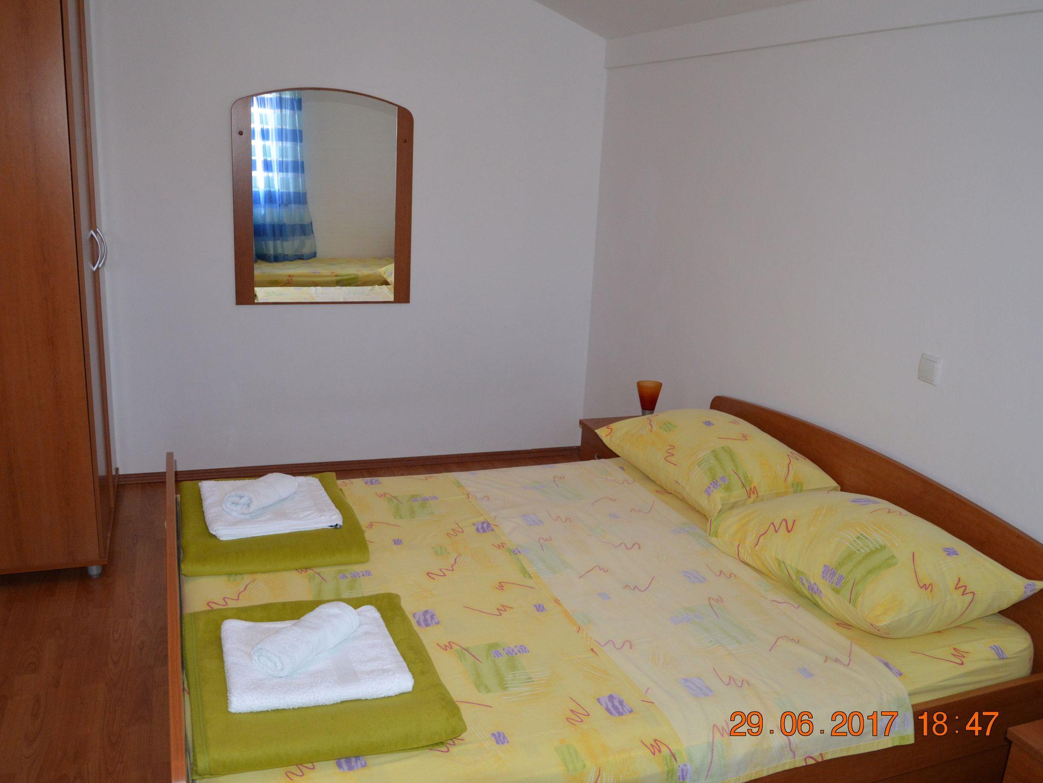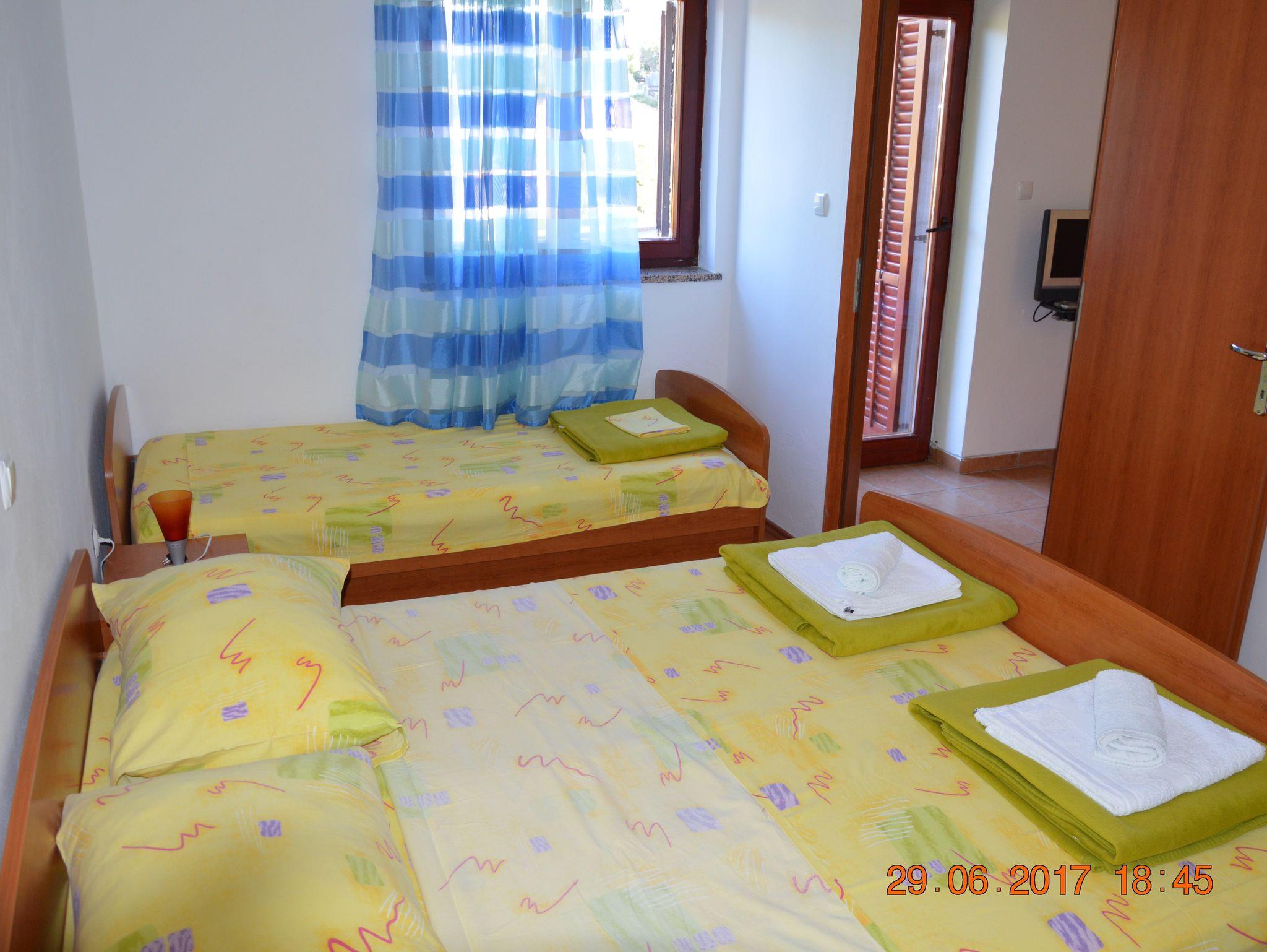 Ferienwohnung bietet Platz für 4 Gäste. Die Betten sind in Schlafzimmern, die es 1 gibt, und in Wohnzimmer, innerhalb einer Gesamtfläche von 26m2, angeordnet. Die Gäste haben einen eigenen Balkon zur Verfügung, auf der sie in warmen Sommernächten genießen können. Es ist erlaubt, Speisen auf dem Gemeinschafts-Grill vorzubereiten. In der Unterkunftseinheit besteht die Möglichkeit des Mitbringens von Haustieren gegen Aufpreis. IM PREIS INBEGRIFFEN: Kurtaxe, Endreinigung, Parkplatz, Garage, Internet, Wäschewaschen, Bügeleisen, Bügelbrett, Föhn, Sonnenschirm. VERBINDLICHE ZUSÄTZLICHE KOSTEN: Aufzahlung für Kurzaufenthalte (prozentualer Zuschlag pro Nächtigungsanzahl: 30% - 1, 20% - 2, 10% - 3). UNVERBINDLICHE ZUSÄTZLICHE KOSTEN: Klimatisierung (5,00 € pro Nacht), Bootsanlegeplatz (20,00 € pro Nacht), Haustiere (10,00 € pro Nacht). Die Verfügbarkeit zusätzlicher Dienstleistungen in Ihrem reservierten Termin und die Preise derselben (falls nicht aufgeführt) müssen im Voraus überprüft werden. Zusätzliche Dienstleistungen die in der Zahlungsaufforderung nicht aufgeführt sind werden direkt beim Vermieter bezahlt, angenommen der Gast nutzt auch diese. Ermäßigung auf den Grundpreis: Gratistag 14=13 (bei einem Aufenthalt von 14 Tagen oder mehr erhalten Sie einen Gratistag für den Aufenthalt bis 31.12.26).
