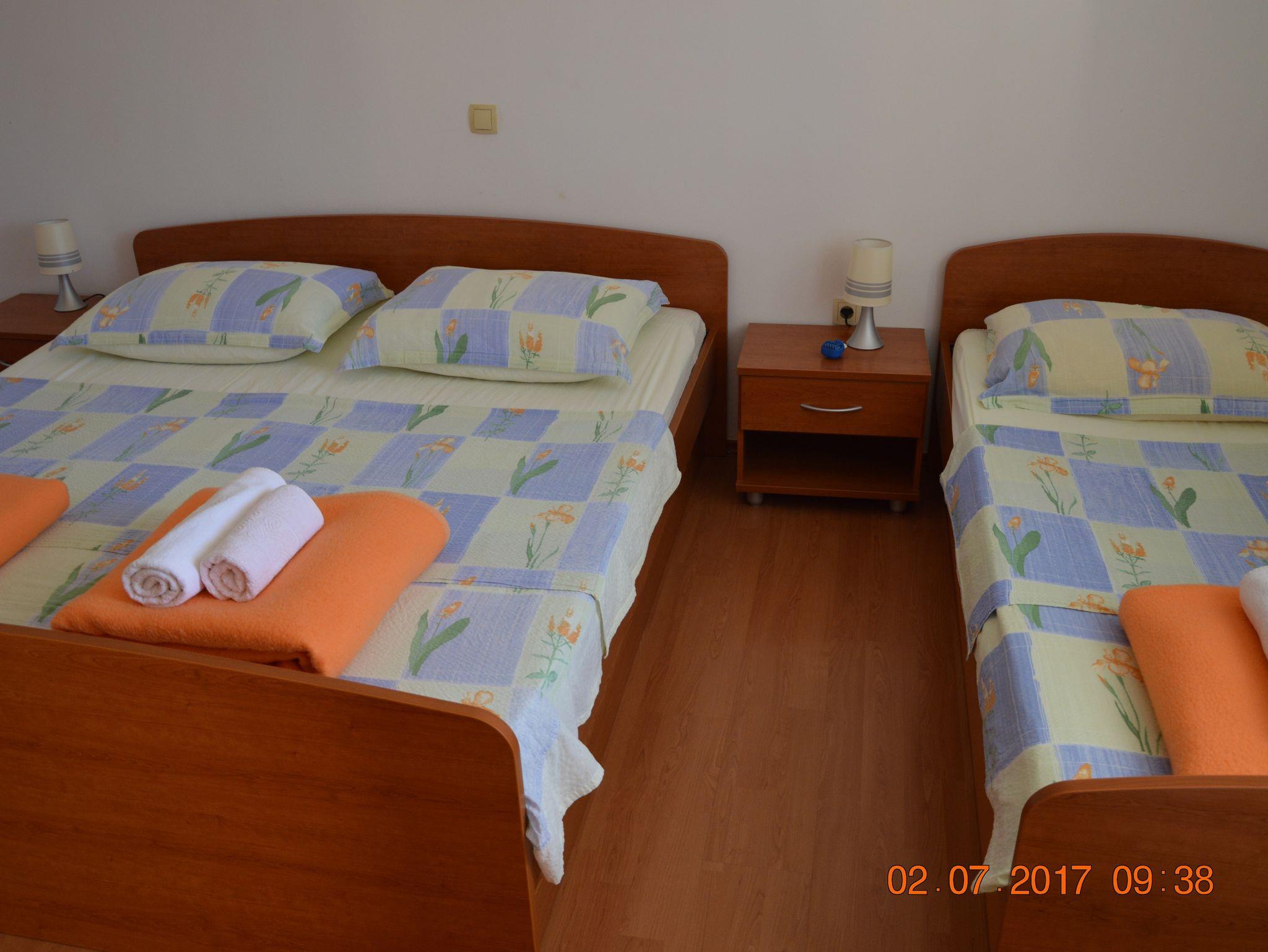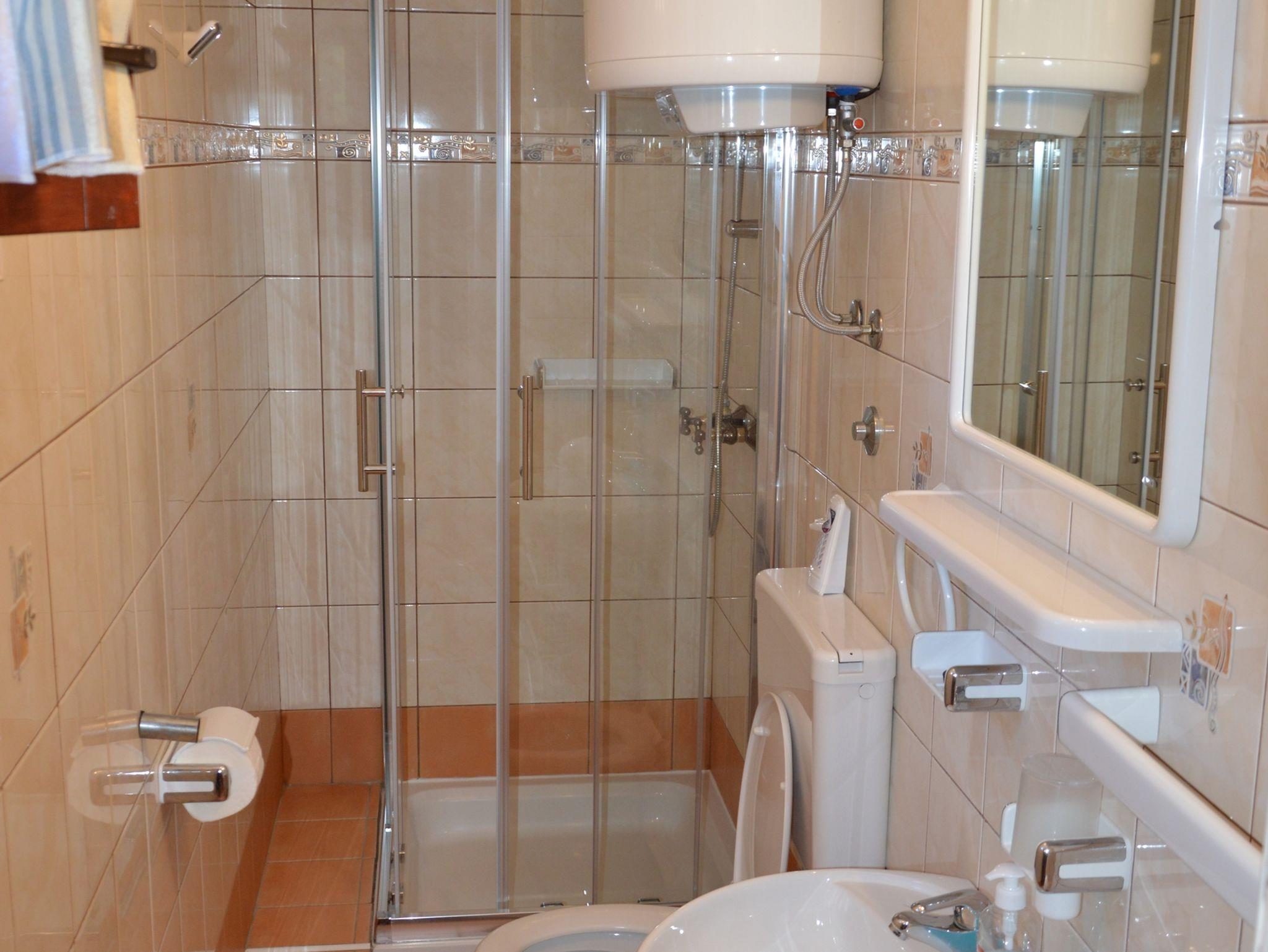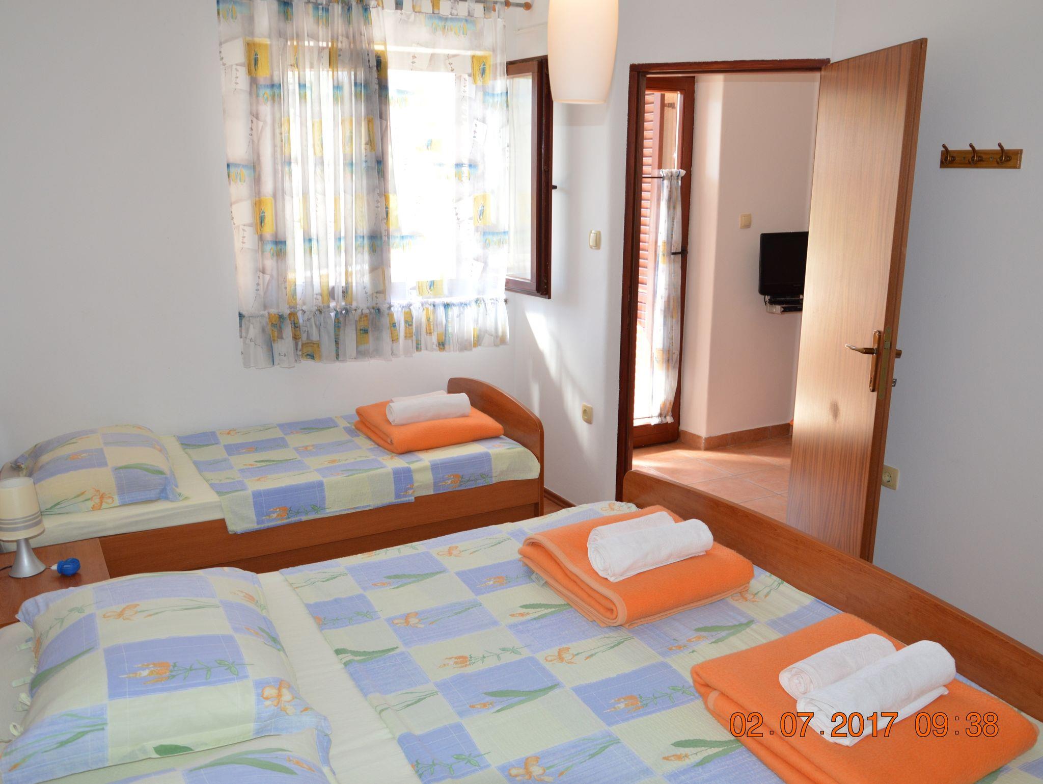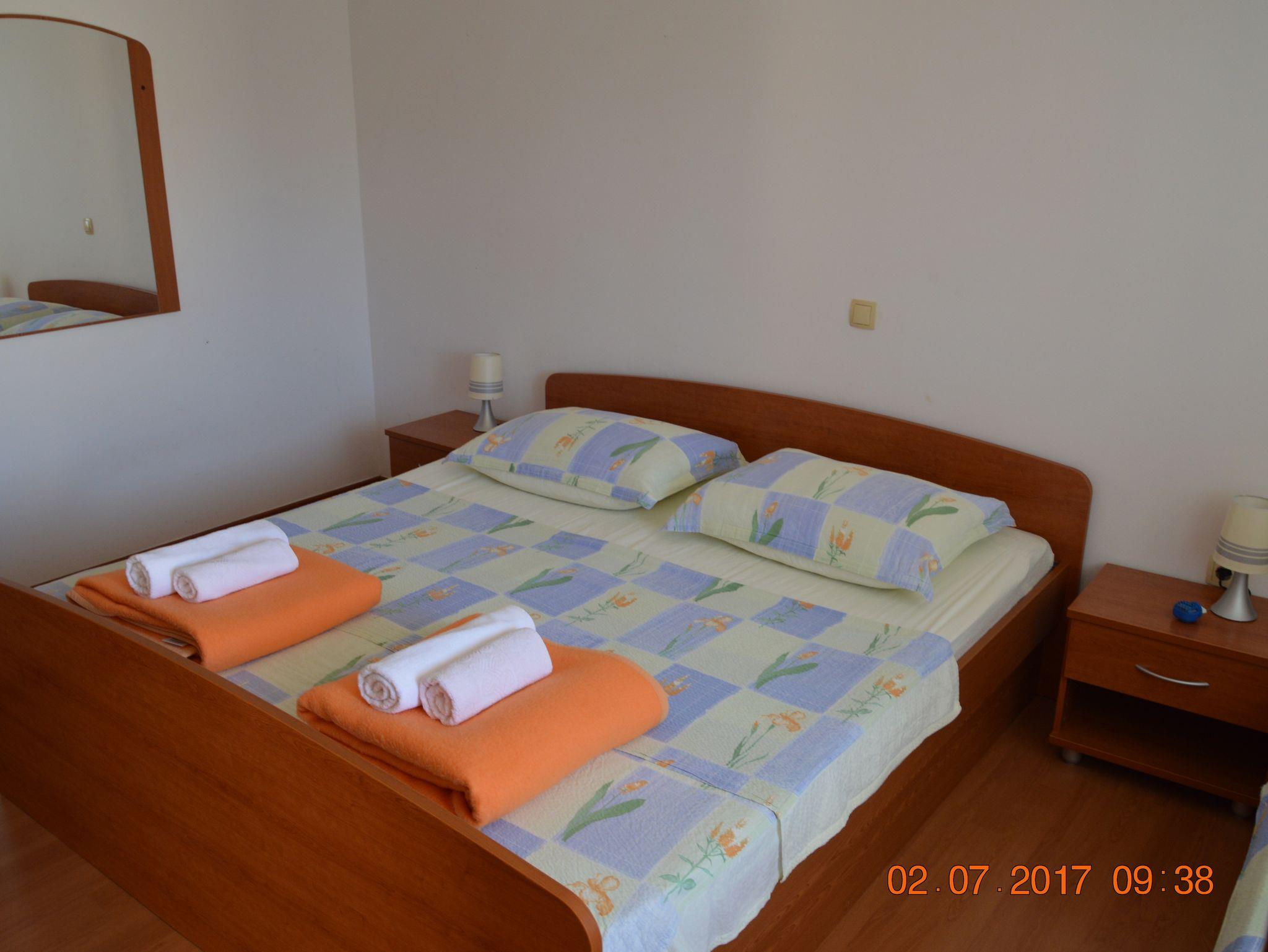 Ferienwohnung bietet Platz für 4 Gäste. Die Betten sind in Schlafzimmern, die es 1 gibt, und in Esszimmer, innerhalb einer Gesamtfläche von 29m2, angeordnet. Die Gäste haben eine eigene Terrasse zur Verfügung, auf der sie in warmen Sommernächten genießen können. Das Apartment bietet Meerblick. Es ist erlaubt, Speisen auf dem Gemeinschafts-Grill vorzubereiten. In der Unterkunftseinheit besteht die Möglichkeit des Mitbringens von Haustieren gegen Aufpreis. IM PREIS INBEGRIFFEN: Kurtaxe, Endreinigung, Parkplatz, Garage, Internet, Wäschewaschen, Bügeleisen, Bügelbrett, Föhn, Sonnenschirm. VERBINDLICHE ZUSÄTZLICHE KOSTEN: Aufzahlung für Kurzaufenthalte (prozentualer Zuschlag pro Nächtigungsanzahl: 30% - 1, 20% - 2, 10% - 3). UNVERBINDLICHE ZUSÄTZLICHE KOSTEN: Klimatisierung (5,00 € pro Nacht), Bootsanlegeplatz (20,00 € pro Nacht), Haustiere (10,00 € pro Nacht). Die Verfügbarkeit zusätzlicher Dienstleistungen in Ihrem reservierten Termin und die Preise derselben (falls nicht aufgeführt) müssen im Voraus überprüft werden. Zusätzliche Dienstleistungen die in der Zahlungsaufforderung nicht aufgeführt sind werden direkt beim Vermieter bezahlt, angenommen der Gast nutzt auch diese. Ermäßigung auf den Grundpreis: Gratistag 14=13 (bei einem Aufenthalt von 14 Tagen oder mehr erhalten Sie einen Gratistag für den Aufenthalt bis 31.12.26).