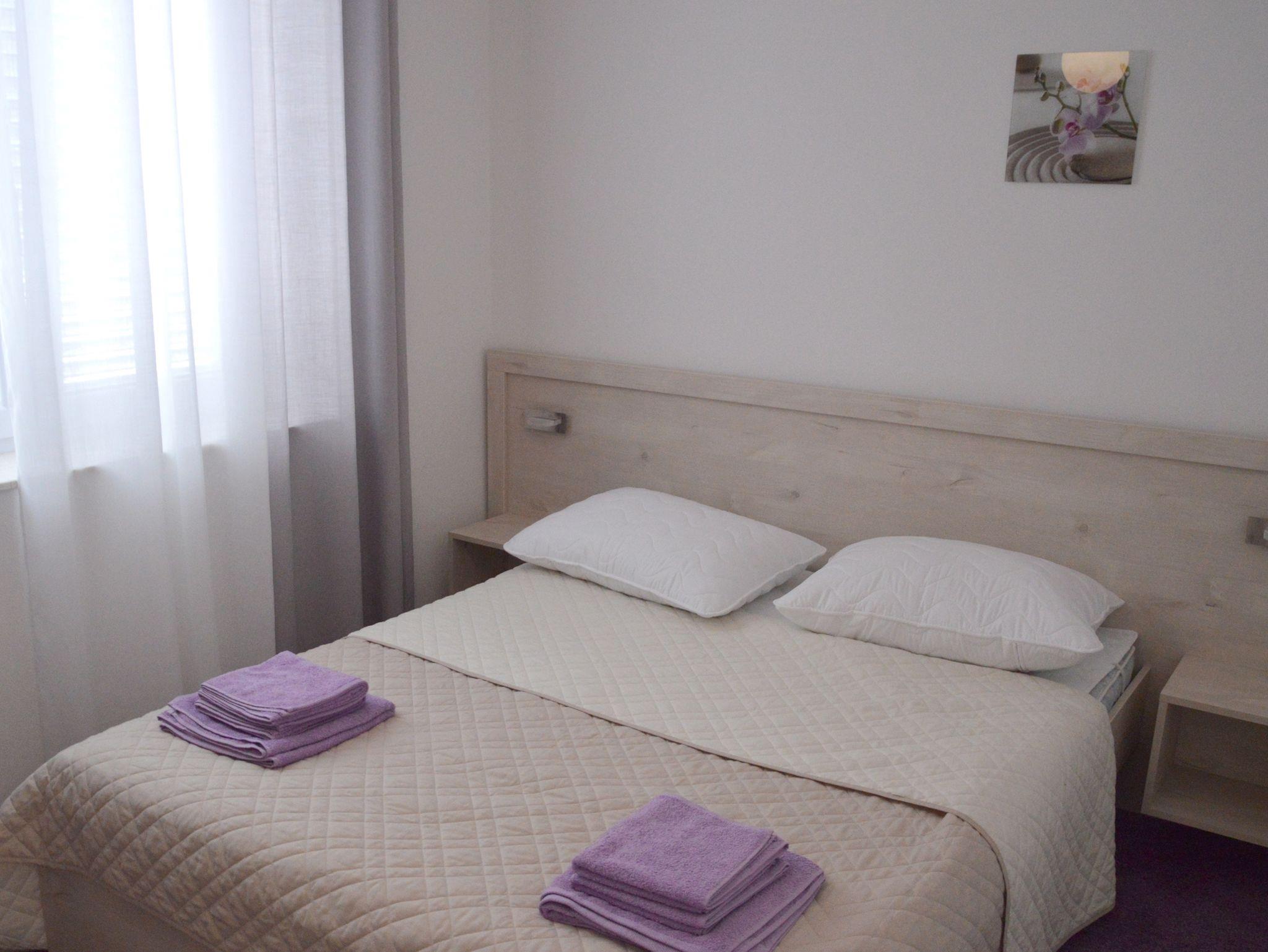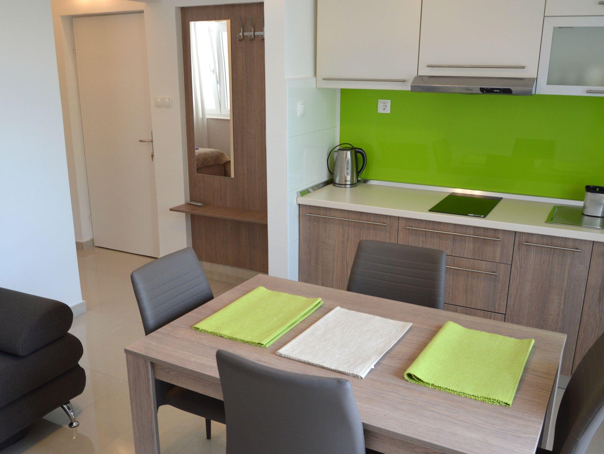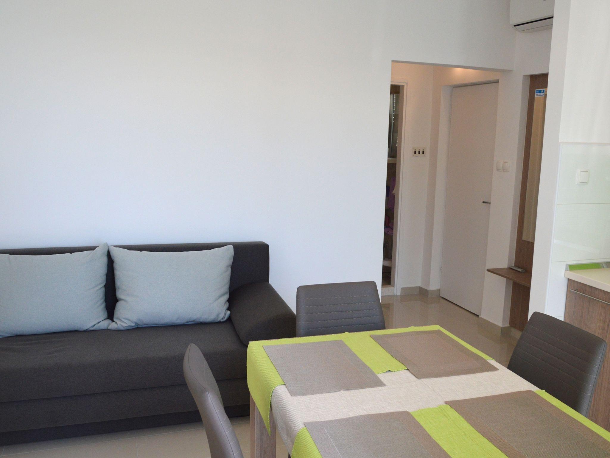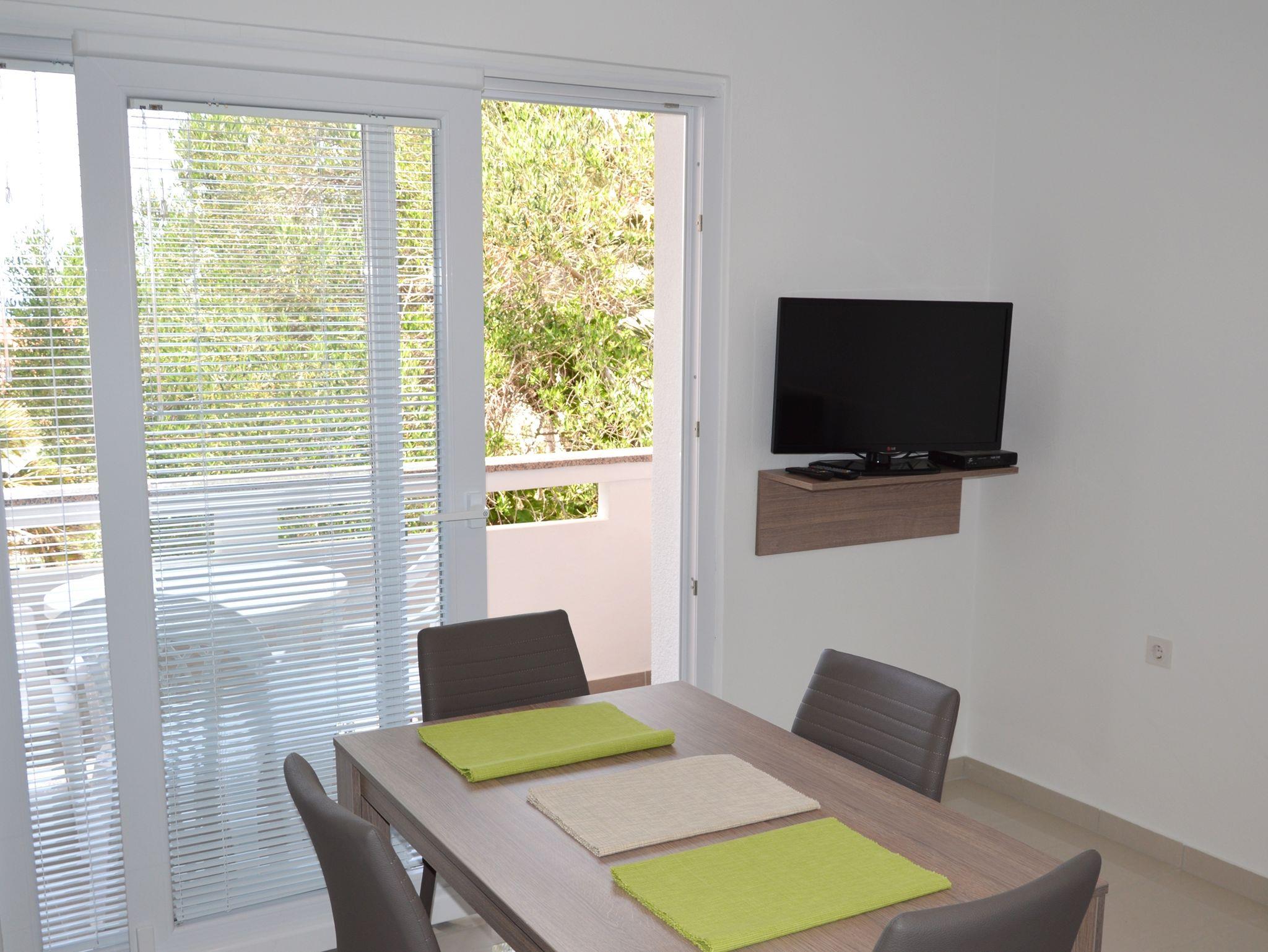 Ferienwohnung bietet Platz für 4 Gäste. Die Betten sind in Schlafzimmern, die es 1 gibt, und in Esszimmer, innerhalb einer Gesamtfläche von 33m2, angeordnet. Die Gäste haben einen eigenen Balkon zur Verfügung, auf der sie in warmen Sommernächten genießen können. Das Apartment bietet Meerblick. Es ist erlaubt, Speisen auf dem Gemeinschafts-Grill vorzubereiten. In der Unterkunftseinheit besteht die Möglichkeit des Mitbringens von Haustieren gegen Aufpreis. IM PREIS INBEGRIFFEN: Kurtaxe, Endreinigung, Parkplatz, Garage, Internet, Wäschewaschen, Zusatzbett, Bügeleisen, Bügelbrett, Föhn, Sonnenschirm. VERBINDLICHE ZUSÄTZLICHE KOSTEN: Aufzahlung für Kurzaufenthalte (prozentualer Zuschlag pro Nächtigungsanzahl: 30% - 1, 20% - 2, 10% - 3). UNVERBINDLICHE ZUSÄTZLICHE KOSTEN: Klimatisierung (5,00 € pro Nacht), Bootsanlegeplatz (20,00 € pro Nacht), Haustiere (10,00 € pro Nacht). Die Verfügbarkeit zusätzlicher Dienstleistungen in Ihrem reservierten Termin und die Preise derselben (falls nicht aufgeführt) müssen im Voraus überprüft werden. Zusätzliche Dienstleistungen die in der Zahlungsaufforderung nicht aufgeführt sind werden direkt beim Vermieter bezahlt, angenommen der Gast nutzt auch diese. Ermäßigung auf den Grundpreis: Gratistag 14=13 (bei einem Aufenthalt von 14 Tagen oder mehr erhalten Sie einen Gratistag für den Aufenthalt bis 31.12.26).