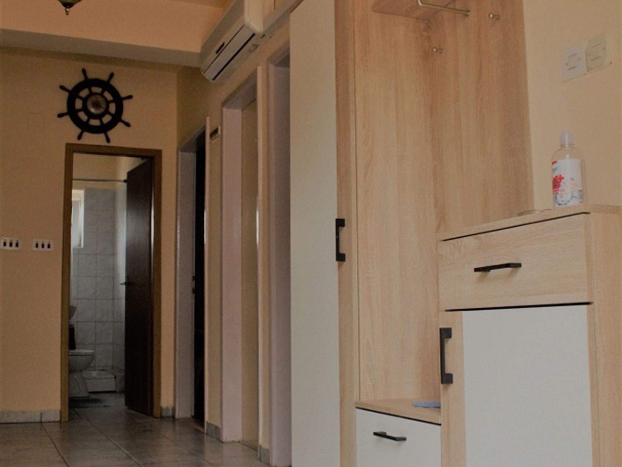 Ferienwohnung bietet Platz für 8 Gäste. Die Betten sind in Schlafzimmern, die es 3 gibt, innerhalb einer Gesamtfläche von 67m2, angeordnet. Die Gäste haben eine eigene Terrasse zur Verfügung, auf der sie in warmen Sommernächten genießen können. Das Apartment bietet Meerblick. Es ist erlaubt, Speisen auf dem Gemeinschafts-Grill vorzubereiten. In der Unterkunftseinheit besteht die Möglichkeit des Mitbringens von Haustieren gegen Aufpreis. IM PREIS INBEGRIFFEN: Kurtaxe, Endreinigung, Klimatisierung, Parkplatz, Internet, Bügeleisen, Bügelbrett, Föhn. VERBINDLICHE ZUSÄTZLICHE KOSTEN: Aufzahlung für Kurzaufenthalte (prozentualer Zuschlag pro Nächtigungsanzahl: 30% - 1, 20% - 2, 10% - 3). UNVERBINDLICHE ZUSÄTZLICHE KOSTEN: Haustiere (5,00 € pro Nacht). Die Verfügbarkeit zusätzlicher Dienstleistungen in Ihrem reservierten Termin und die Preise derselben (falls nicht aufgeführt) müssen im Voraus überprüft werden. Zusätzliche Dienstleistungen die in der Zahlungsaufforderung nicht aufgeführt sind werden direkt beim Vermieter bezahlt, angenommen der Gast nutzt auch diese.